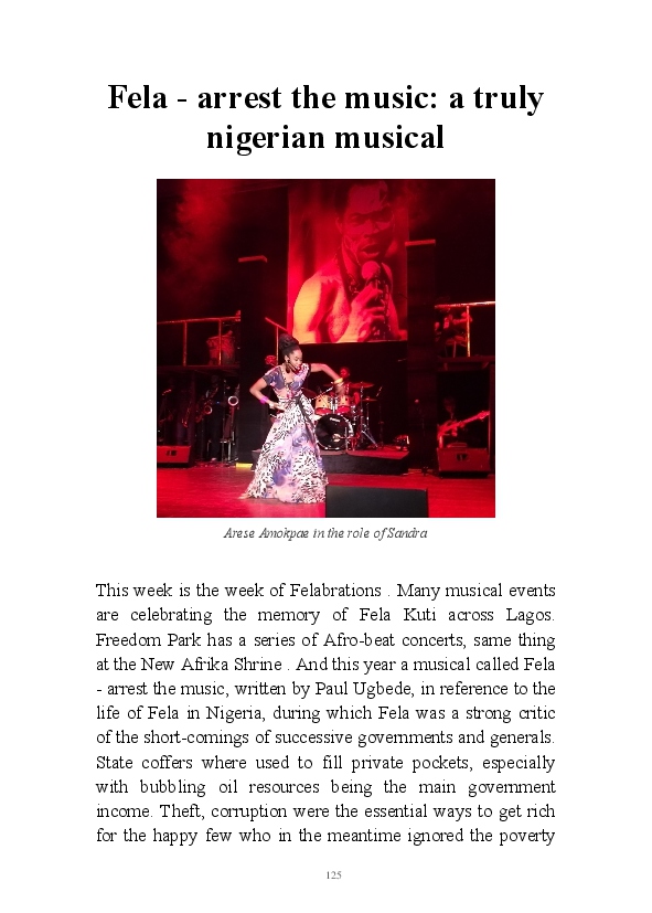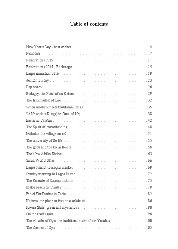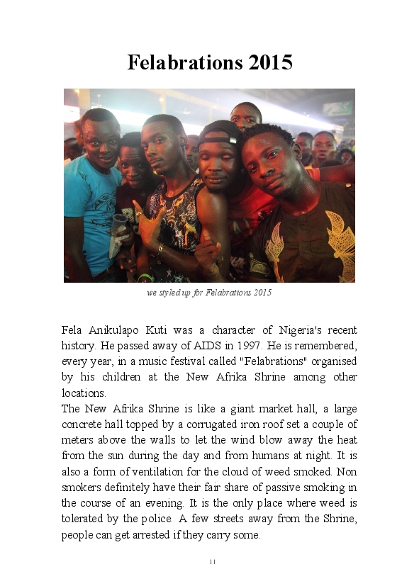 It captures the year 2016 in Lagos and several places in Nigeria ranging from Calabar, Yorubaland (Ile Ife, Oyo) to northern Nigeria (Kaduna, Lere, Zaria).