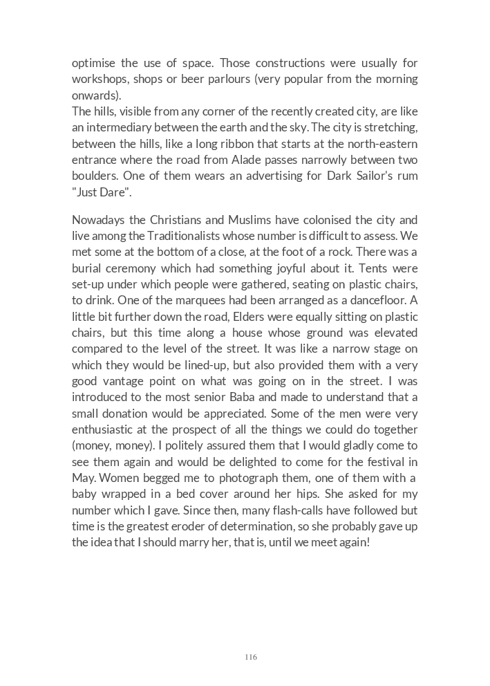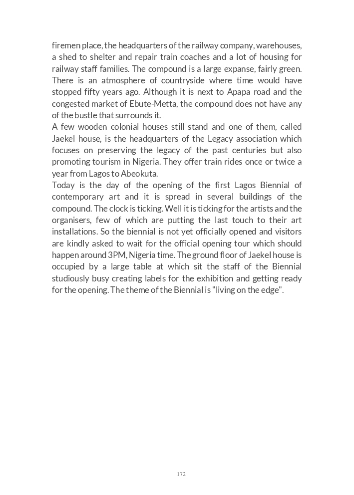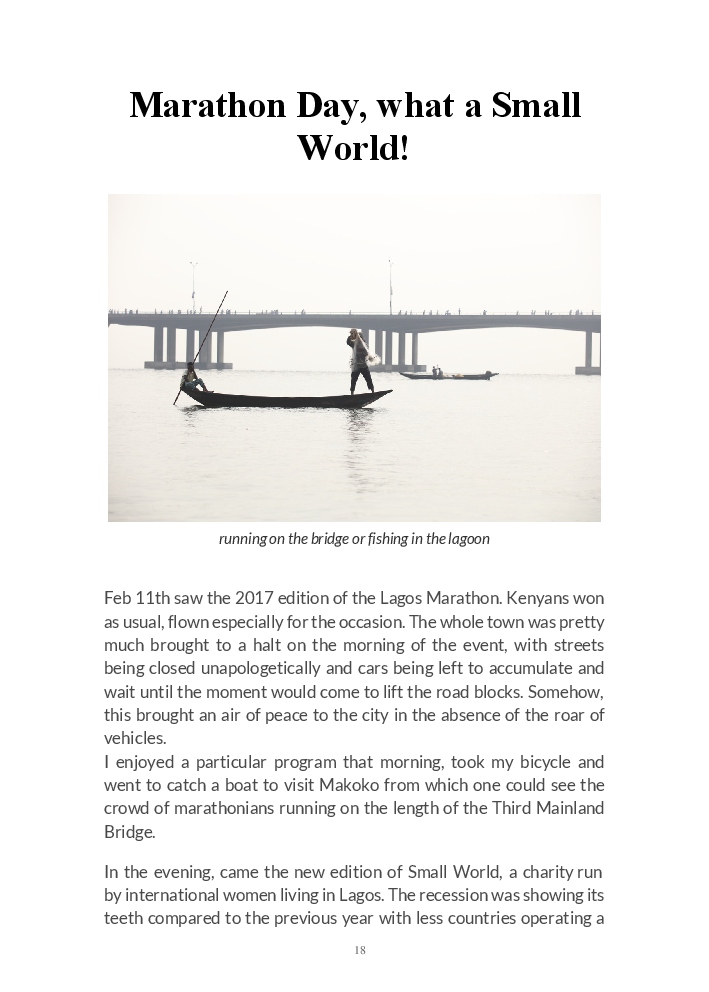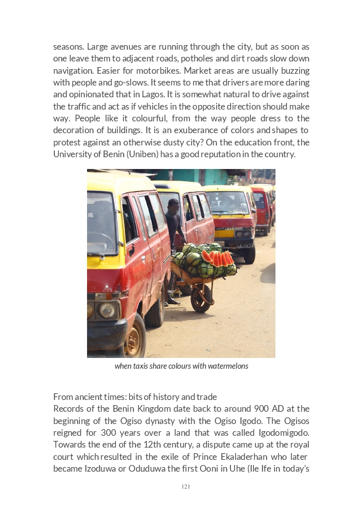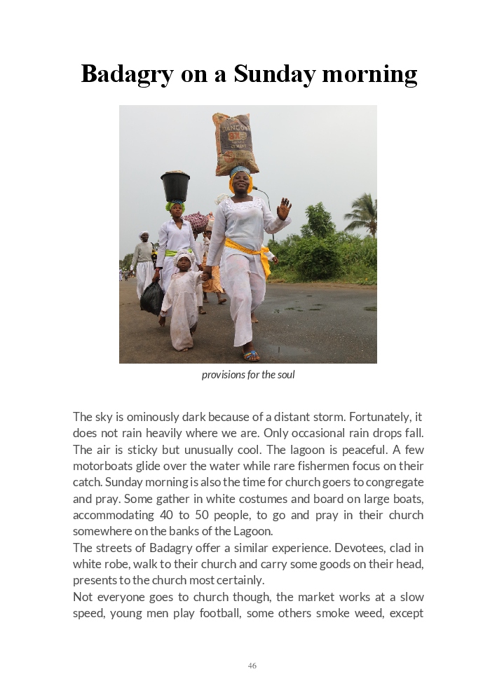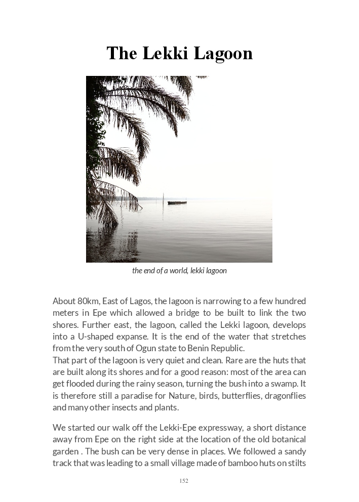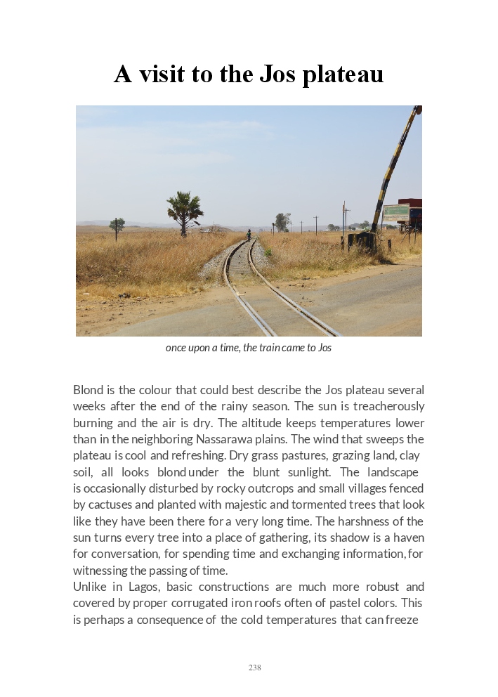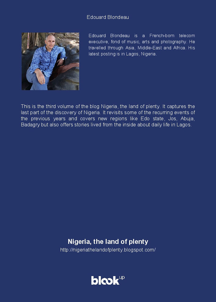 This is the third volume of the blog Nigeria, the land of plenty. It captures the last part of the discovery of Nigeria. It revisits some of the recurring events of the previous years and covers new regions like Edo state, Jos, Abuja, Badagry but also offers stories lived from the inside about daily life in Lagos.