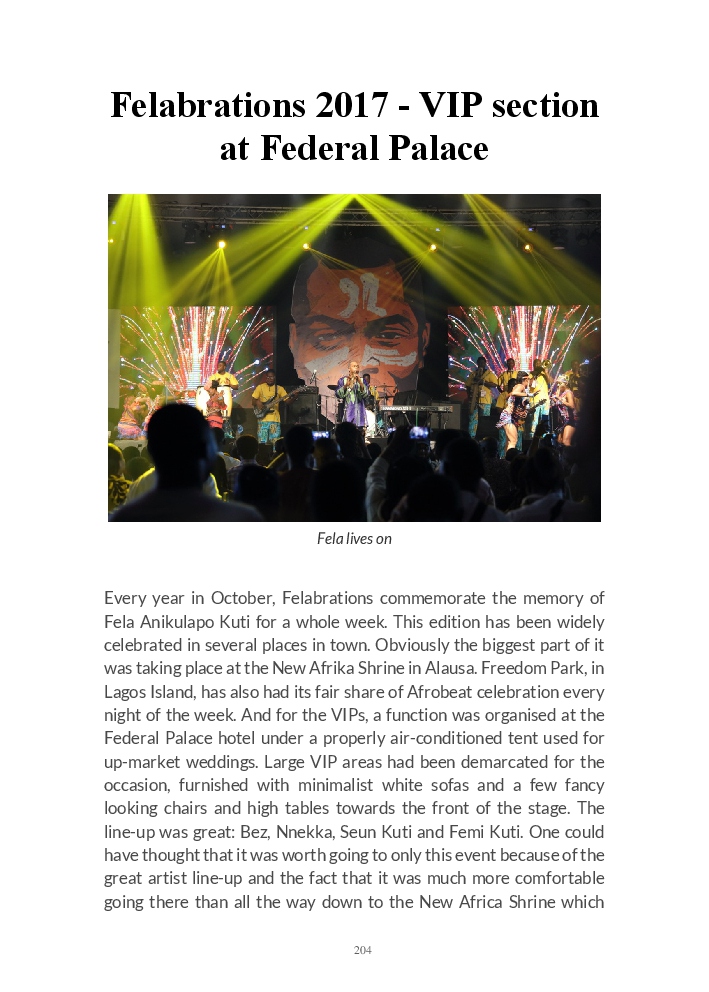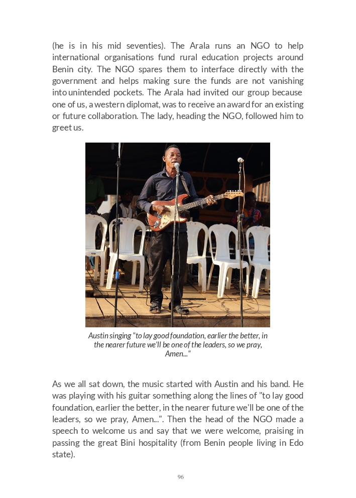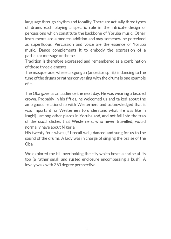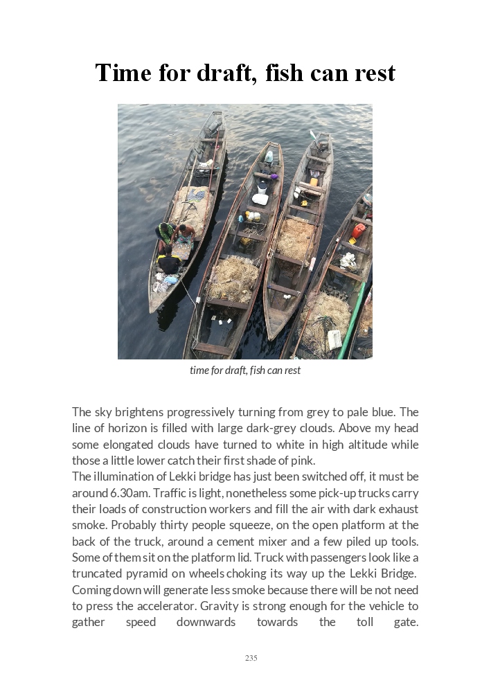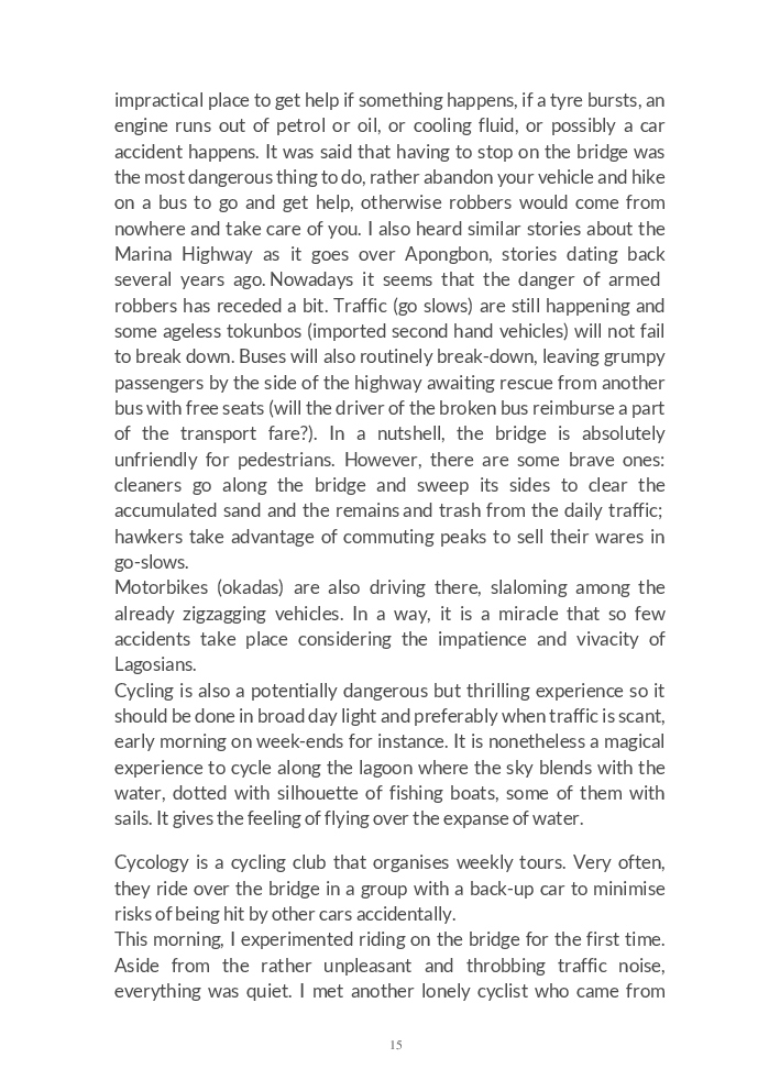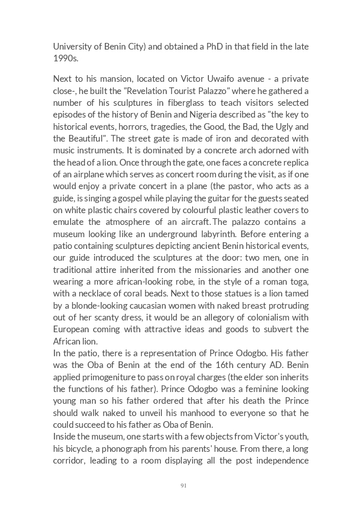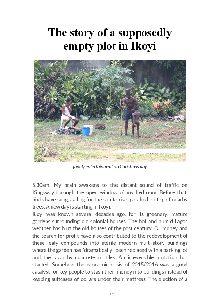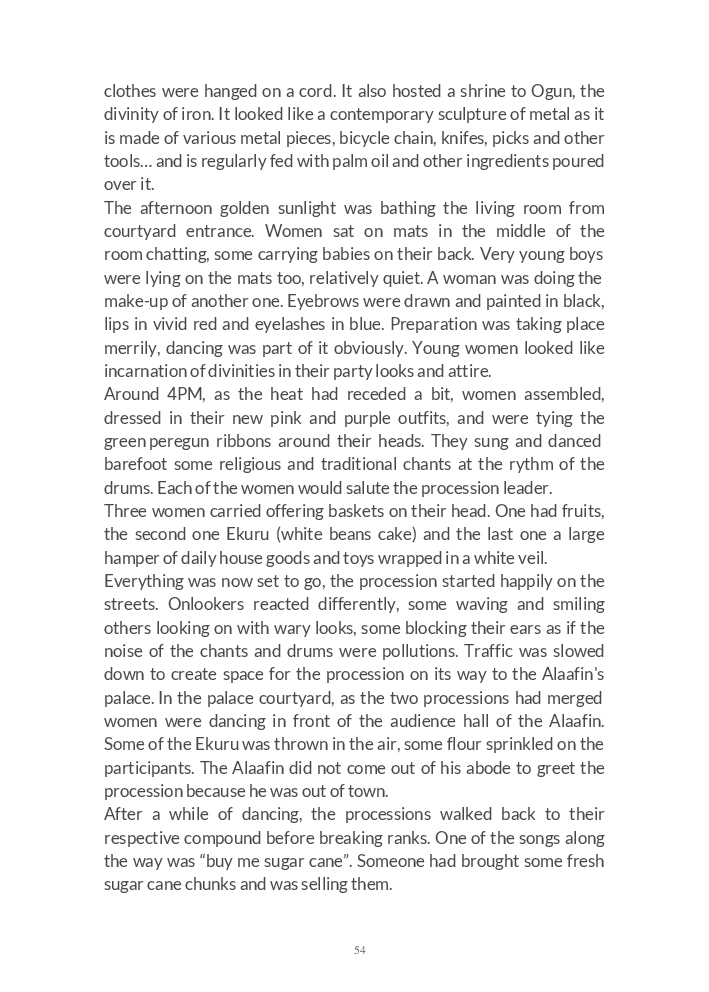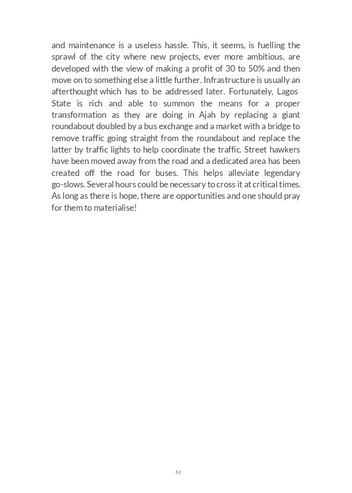This is the third volume of the blog Nigeria, the land of plenty. It captures the last part of the discovery of Nigeria. It revisits some of the recurring events of the previous years and covers new regions like Edo state, Jos, Abuja, Badagry but also offers stories lived from the inside about daily life in Lagos.