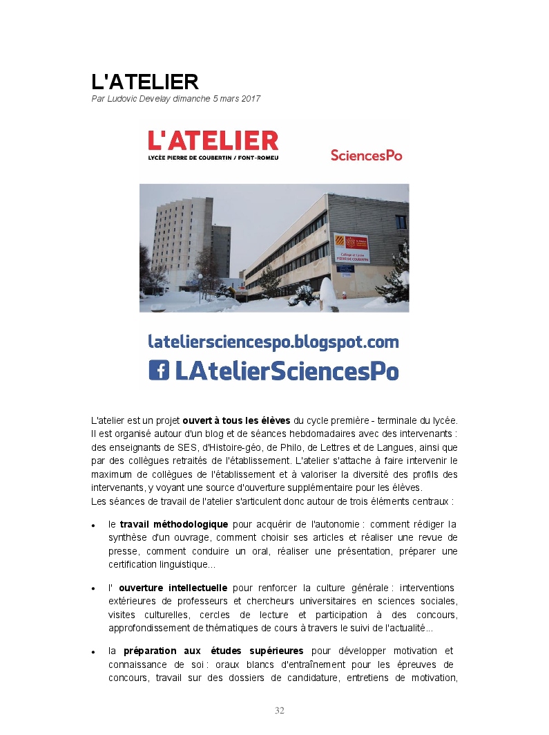 L'ATELIER SciencesPo LYCEE DE COUBERTIN FONT-ROMEU
