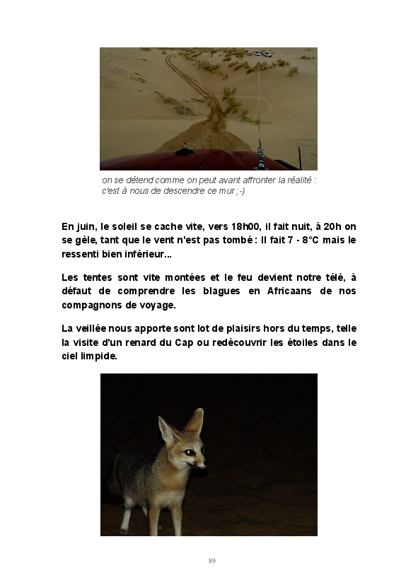 Deux mois de voyage nous ont menés de Cape Town en Afrique du Sud à Etosha en Namibie, via le désert du Namib Naukluft, le Kalahari Transfrontier Park ou encore Kimberley...