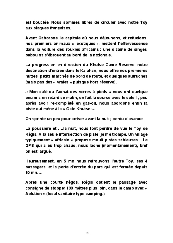 L'histoire d'un grand circuit de plus de 11 000 kms au Botswana, au Swaziland, au Lesotho et en Afrique du Sud en mai et juin 2014.