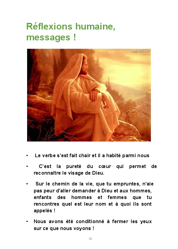 Amis lecteurs, partageons par ces écrits l'espoir d'une vie humaine saine et amour ! Mes rencontres avec Dieu...Mes messages.
