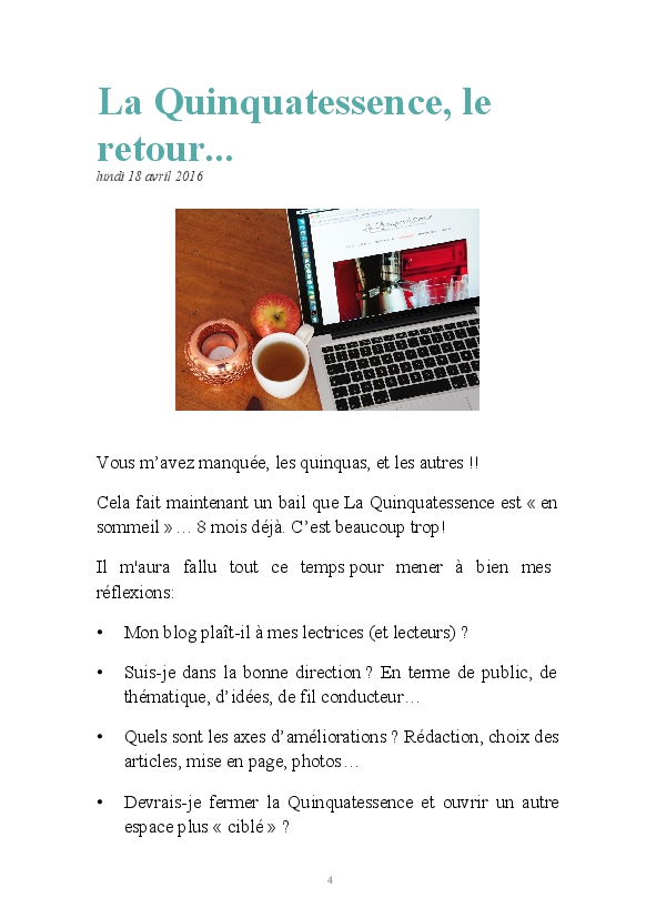 La Quinquatessence, la 2ème année du blog, version lifestyle / humeurs.