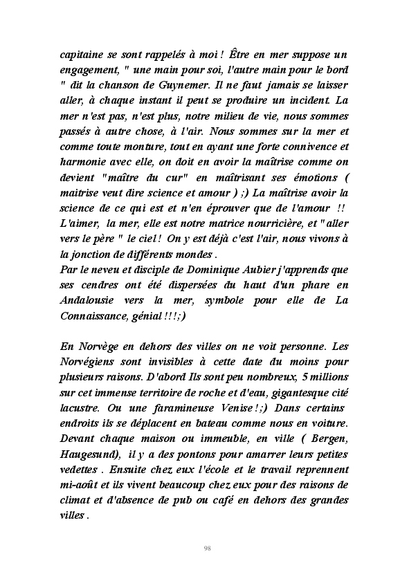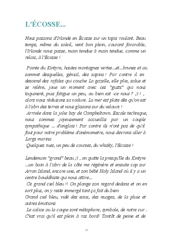 Poèmes, idées, réflexions, témoignages et récit d'un beau périple à la voile avec son mari en Europe du Nord à bord de la Gazelle d'Or