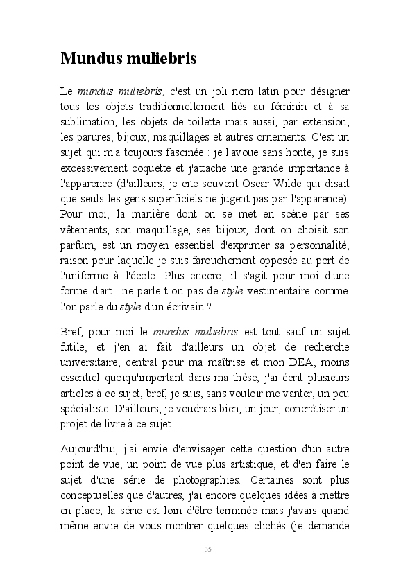Ici, un aperçu de la catégorie "elle se réfléchit dans le miroir" de mon blog "Cultur'elle" : des textes, des photos, des petits mouvements d'humeur, des instantanés de la vie quotidienne, des citations qui me touchent... Tout ce qui rend la vie inimitable !