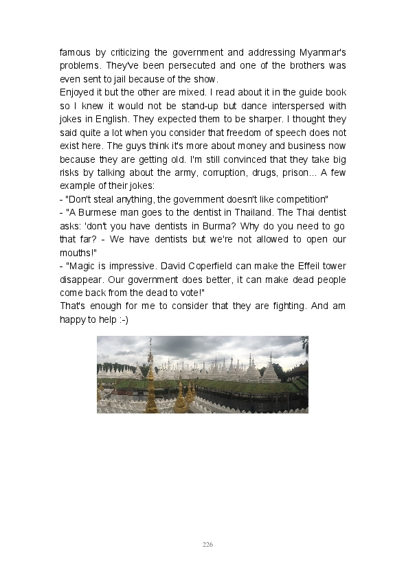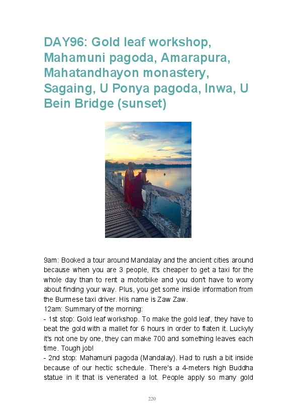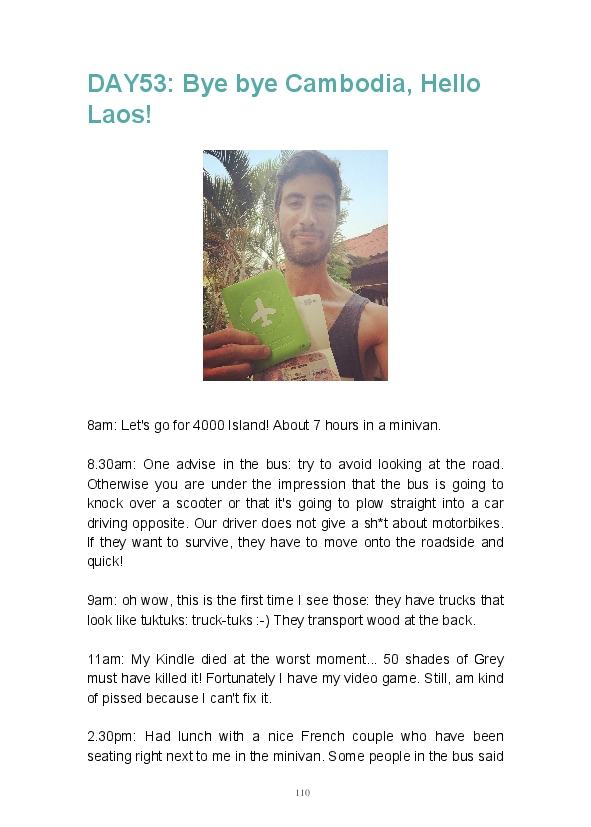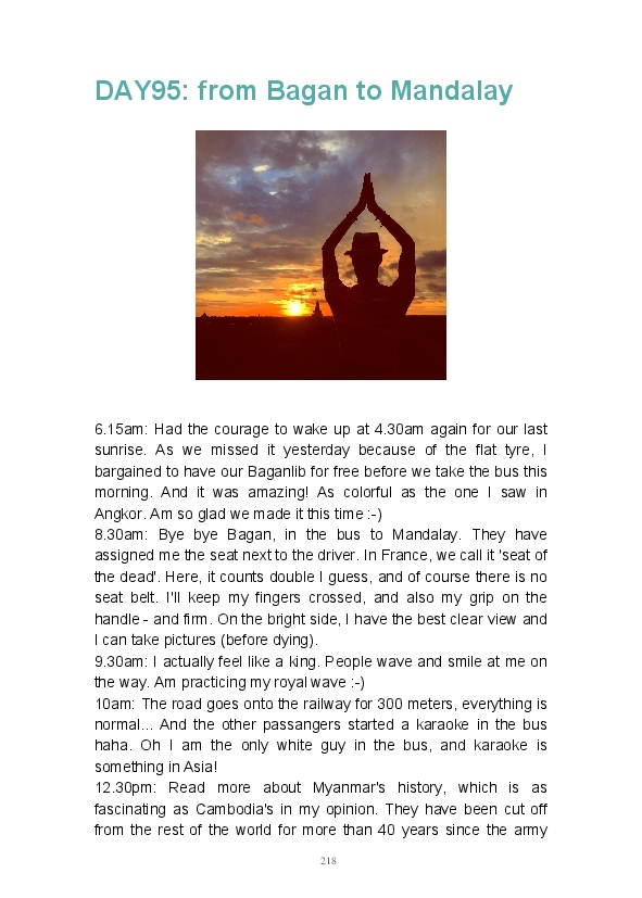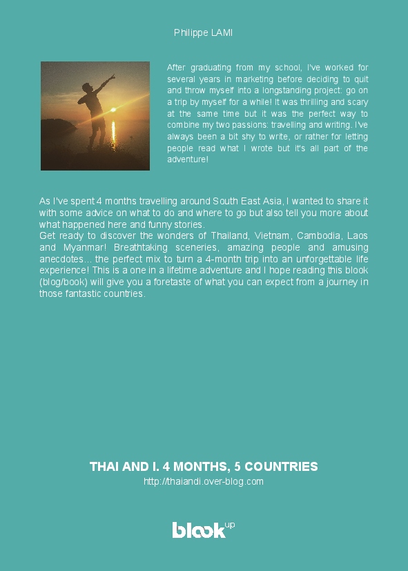 Get ready to discover the wonders of Thailand, Vietnam, Cambodia, Laos and Myanmar! Breathtaking sceneries, amazing people and amusing anecdotes... the perfect mix to turn a 4-month trip into an unforgettable life experience! This is a one in a lifetime adventure and I hope reading this blook (blog/book) will give you a foretaste of what you can expect from a journey in those fantastic countries.