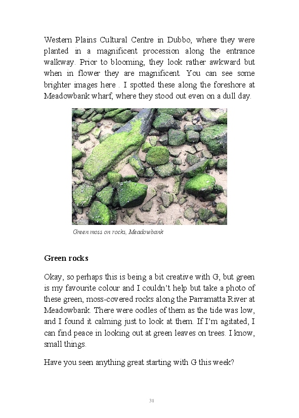 It was great fun, started on a whimsical prompt in someone else's blog post, and it saw me look at the world around me in a different way.