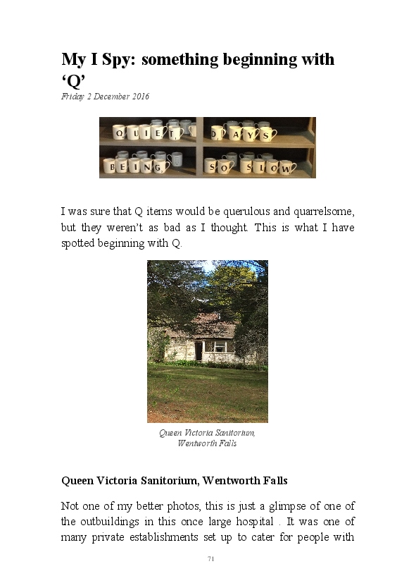 It was great fun, started on a whimsical prompt in someone else's blog post, and it saw me look at the world around me in a different way.