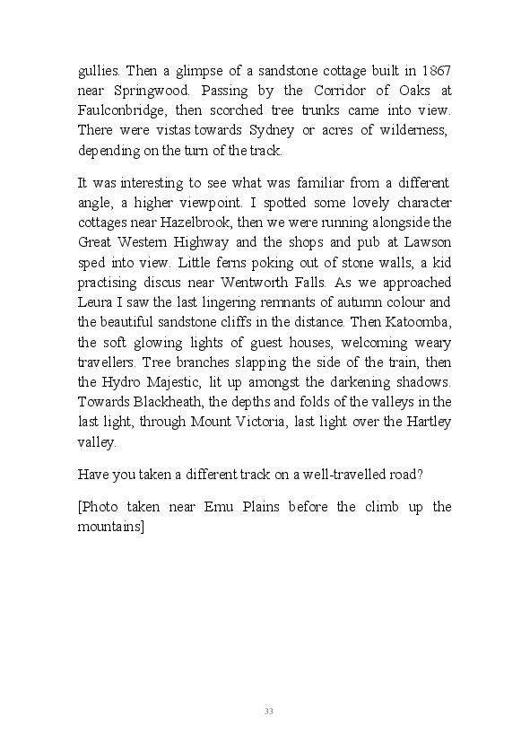 This is a collection of blog posts about life in the Australian Blue Mountains along with travels, local history, mindfulness and meandering musings.
