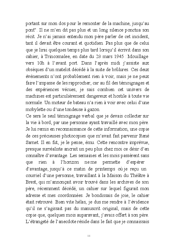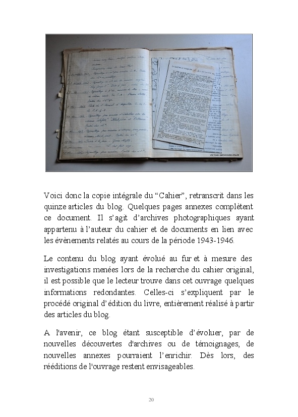 C'est l'histoire d'une quête impossible, faite de rebondissements. Cinquante années passées, avec un secret espoir de retrouver un jour, le « Cahier ».
