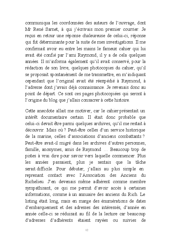 C'est l'histoire d'une quête impossible, faite de rebondissements. Cinquante années passées, avec un secret espoir de retrouver un jour, le « Cahier ».