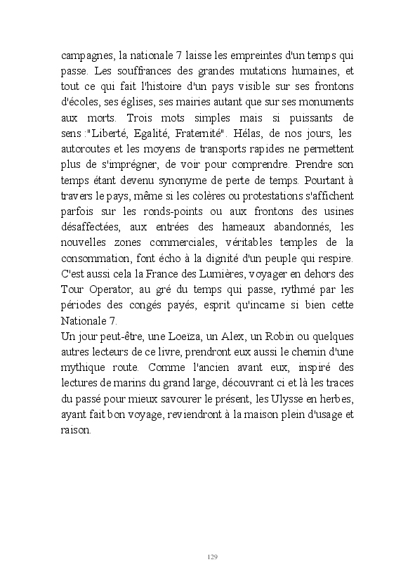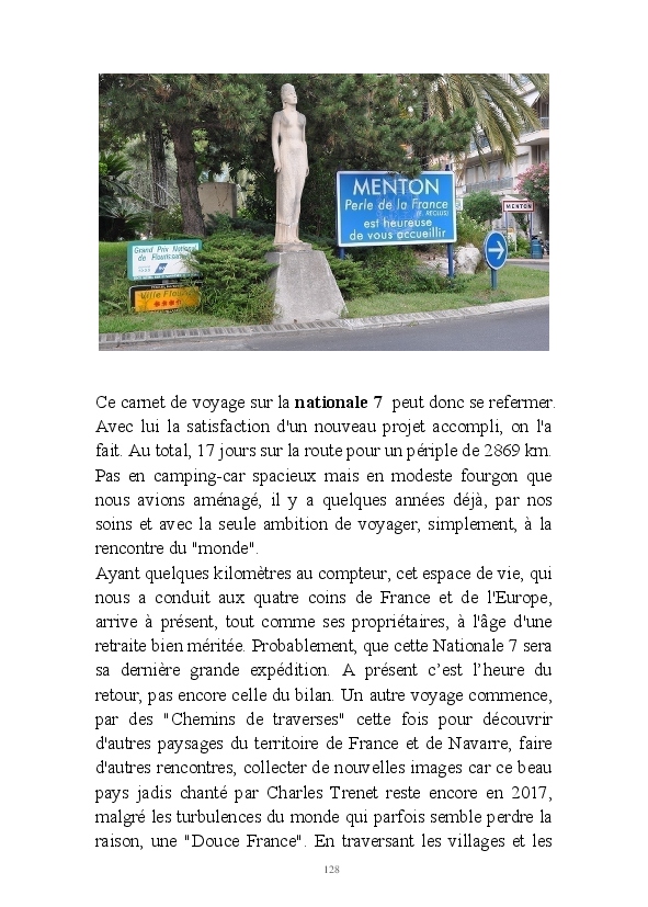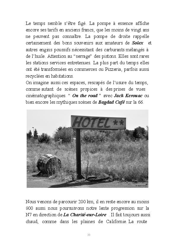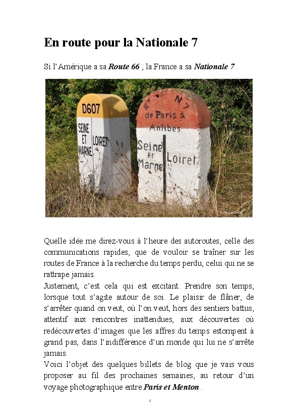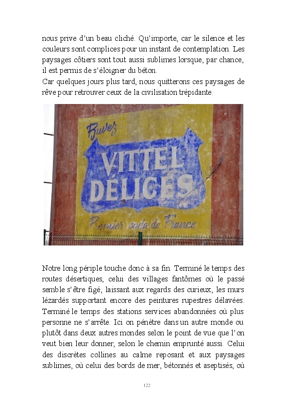 Que ce soit la Nationale 7 ou la Route 66, guidé par l'esprit d'aventure d'un Jack Kerouac ou la lumière des phares de marins, la découverte d'un pays reste pour moi une expérience enrichissante. Ne cherchant pas à collectionner les "on a fait" sur une hypothétique liste de sites touristiques à visiter, un arrêt au bord d'une route, une conversation impromptue avec un habitant, la visite d'un lieu insolite, pour chasser la belle image et avoir le plaisir d'entretenir un carnet de voyage, cela donne un autre sens au mot voyage.