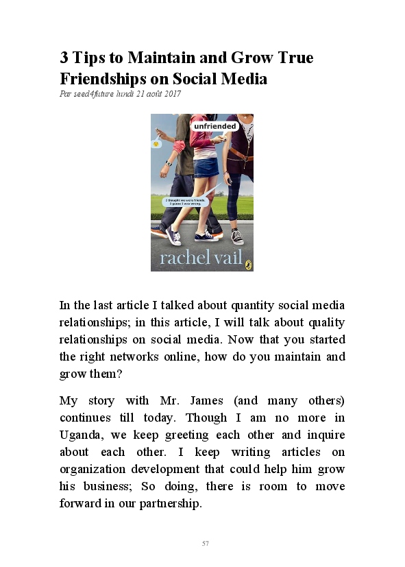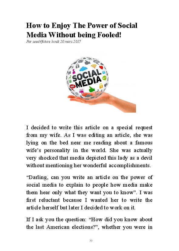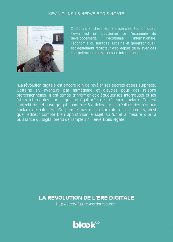 "La révolution digitale est encore loin de révéler ses secrets et ses surprises. Certains s'y aventure par mimétisme et d'autres pour des raisons professionnelles. Il est temps d'informer et d’éduquer les internautes et les futurs internautes sur la gestion équilibrée des réseaux sociaux: Tel est l'objectif de cet ouvrage qui condense 8 articles sur les réalités des réseaux sociaux de notre ère. Ce premier pas est exploratoire et les auteurs, ainsi que l’éditeur compte bien approfondir le sujet au fur et à mesure que la puissance du digital prend de l'ampleur." Hervé-Boris Ngaté