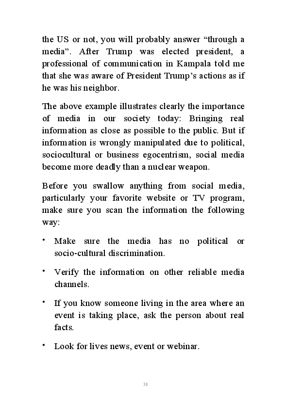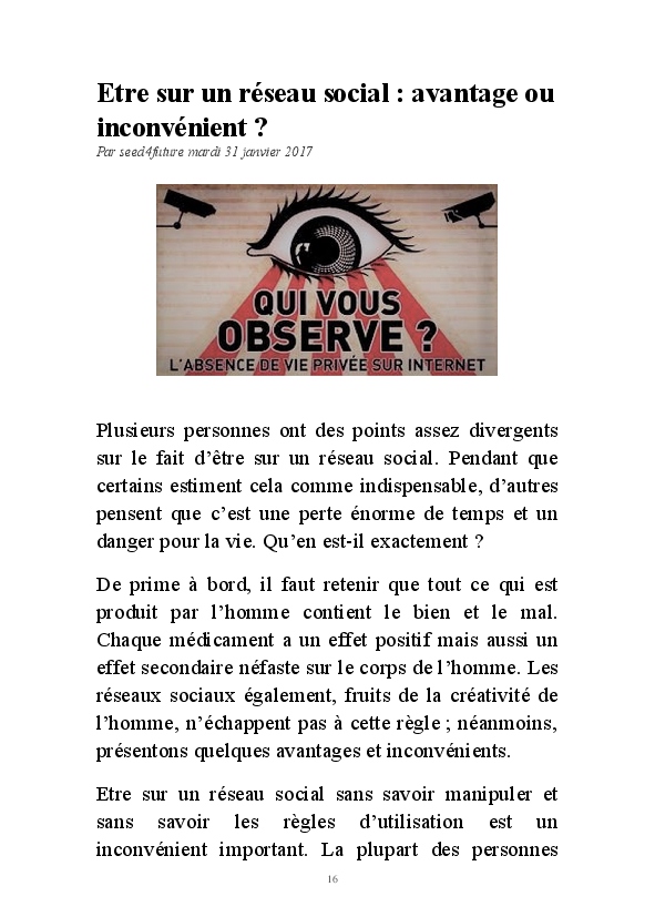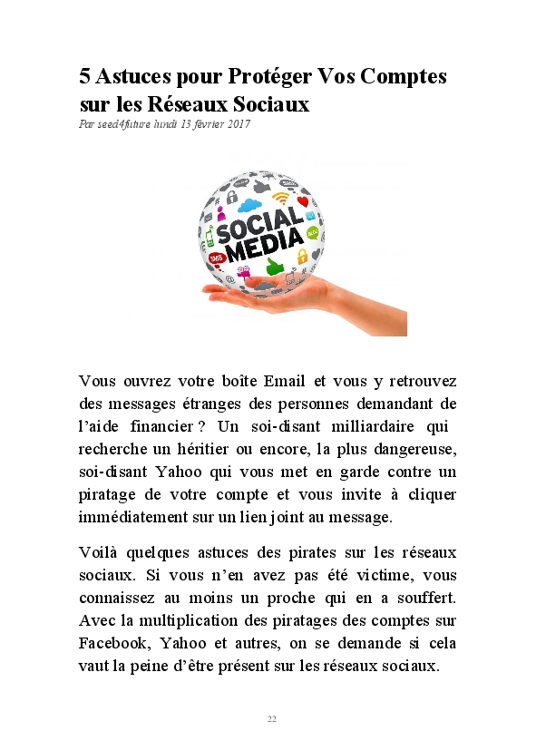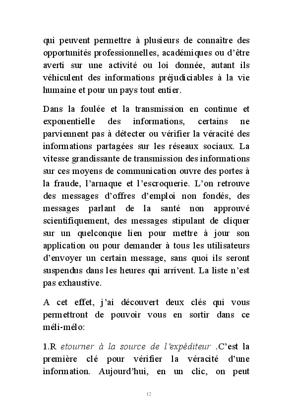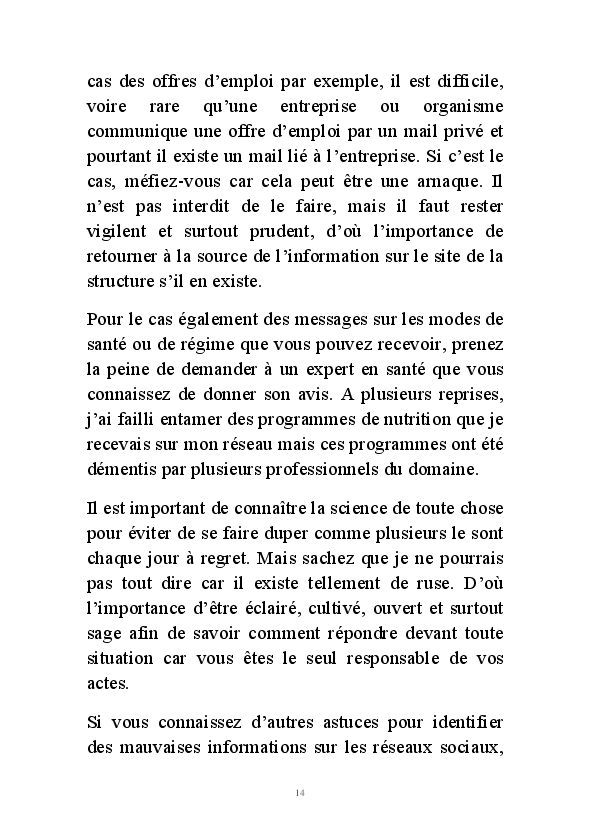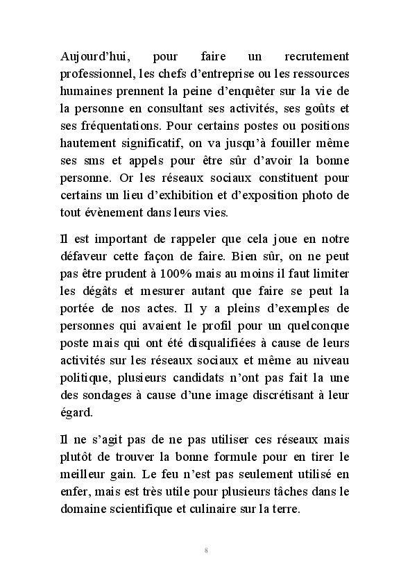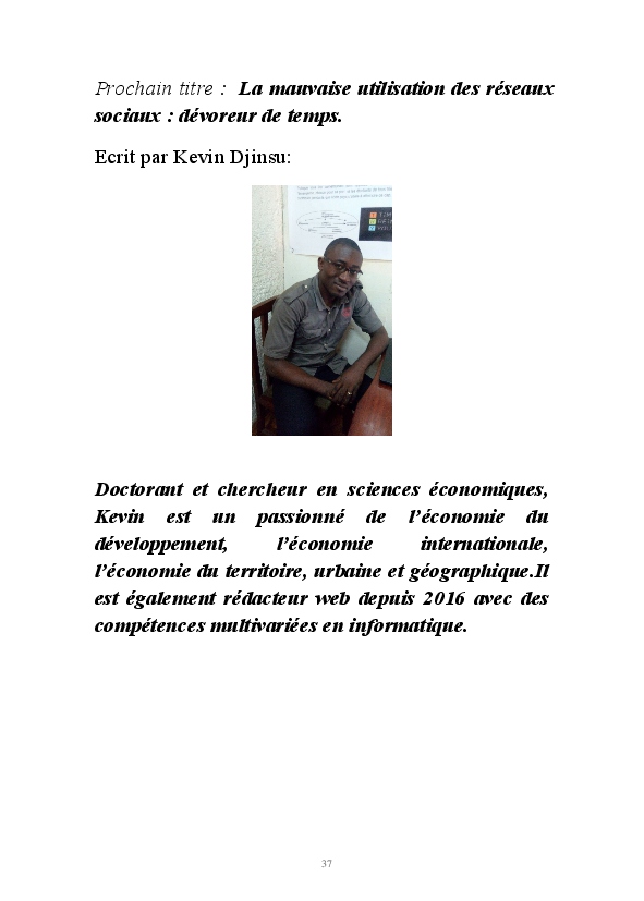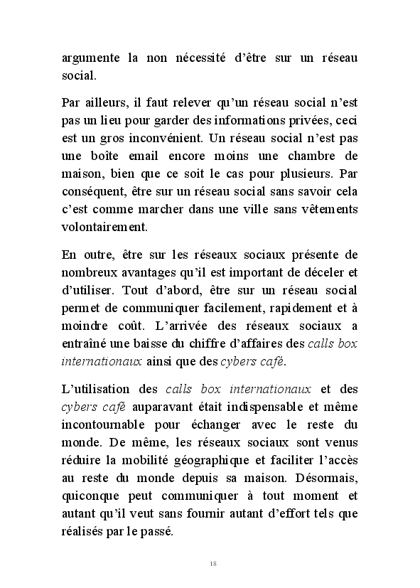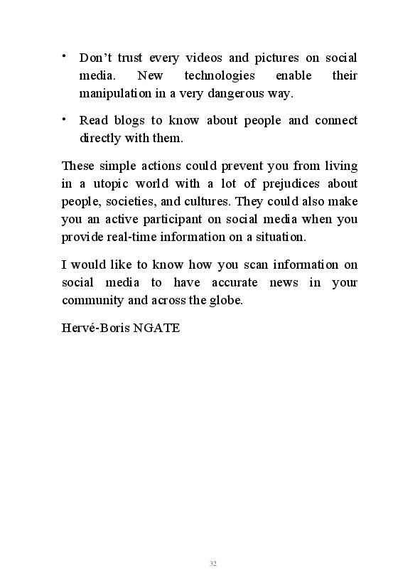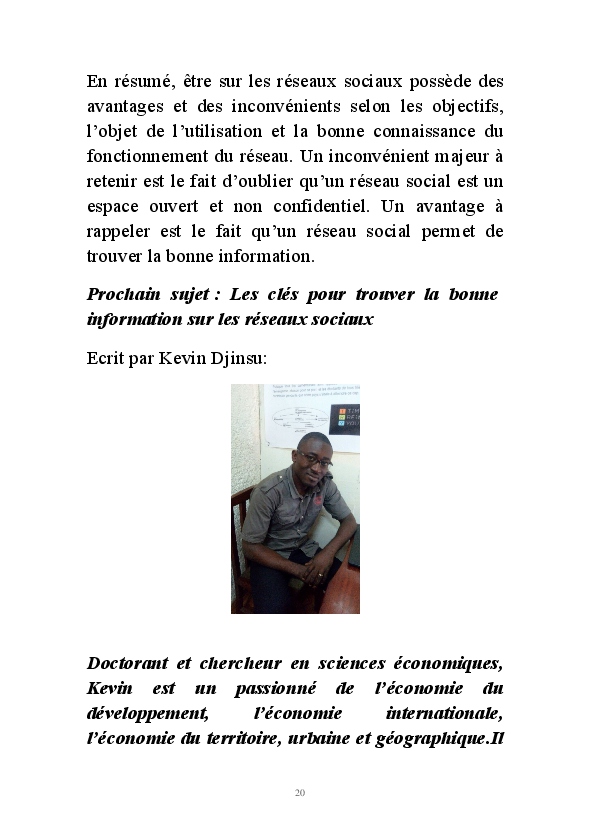 "La révolution digitale est encore loin de révéler ses secrets et ses surprises. Certains s'y aventure par mimétisme et d'autres pour des raisons professionnelles. Il est temps d'informer et d’éduquer les internautes et les futurs internautes sur la gestion équilibrée des réseaux sociaux: Tel est l'objectif de cet ouvrage qui condense 8 articles sur les réalités des réseaux sociaux de notre ère. Ce premier pas est exploratoire et les auteurs, ainsi que l’éditeur compte bien approfondir le sujet au fur et à mesure que la puissance du digital prend de l'ampleur." Hervé-Boris Ngaté