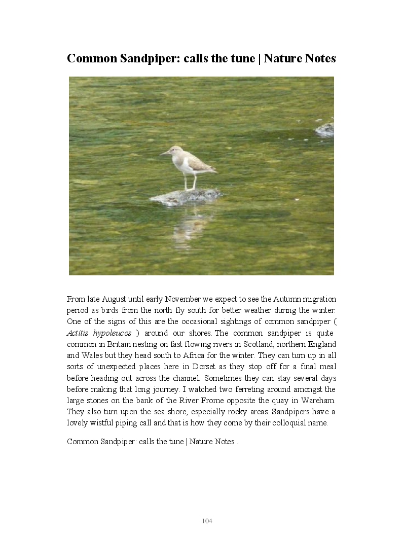 One of a series of books that contains my notes about 150 species of animals and plants that can be found by the casual nature watcher at nature reserves and wildlife hot-spots around Dorset (England!).