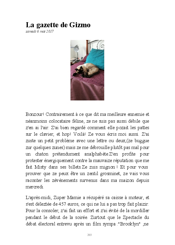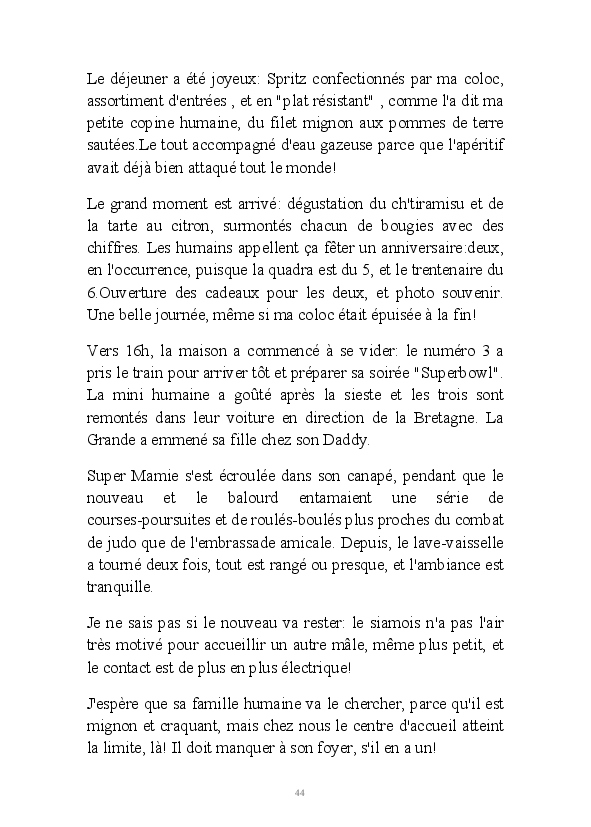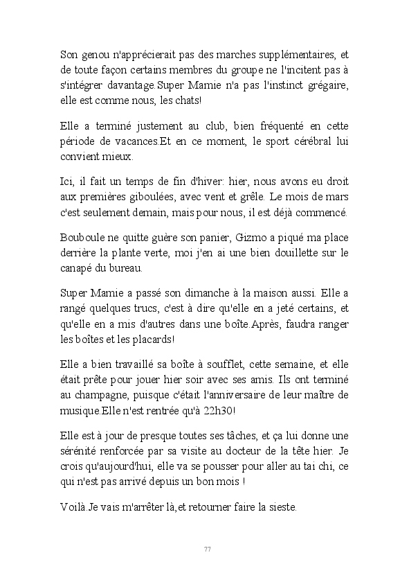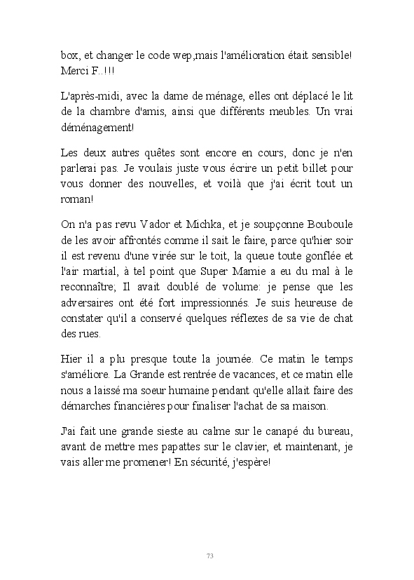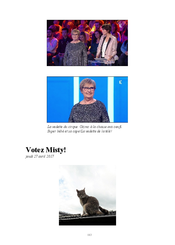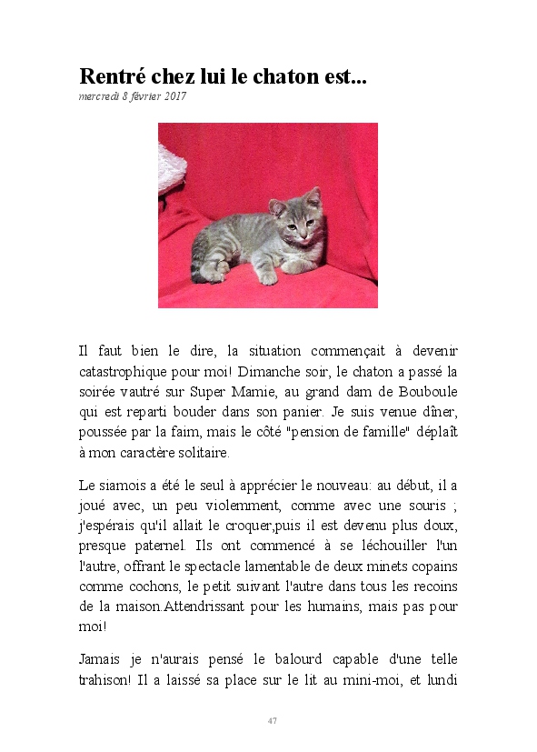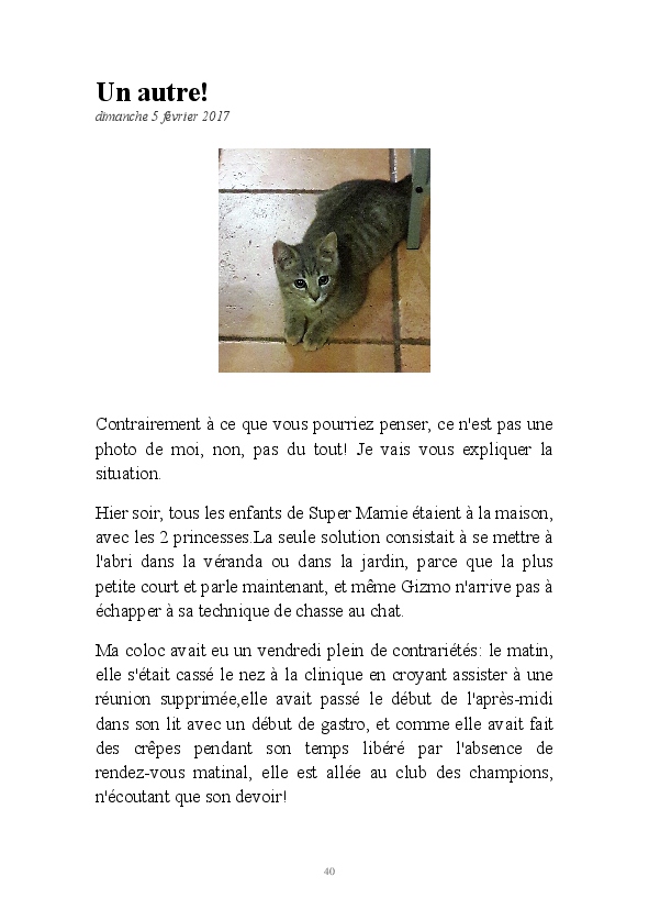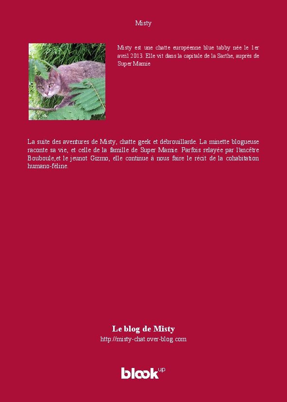 La suite des aventures de Misty, chatte geek et débrouillarde. La minette blogueuse raconte sa vie, et celle de la famille de Super Mamie. Parfois relayée par l'ancêtre Bouboule,et le jeunot Gizmo, elle continue à nous faire le récit de la cohabitation humano-féline.