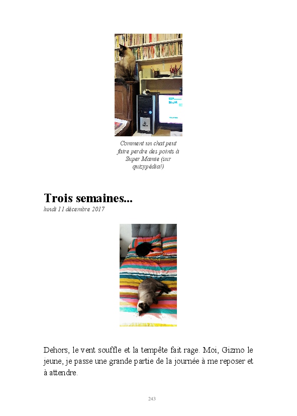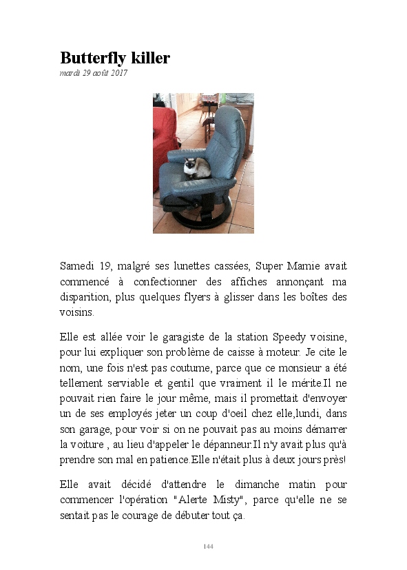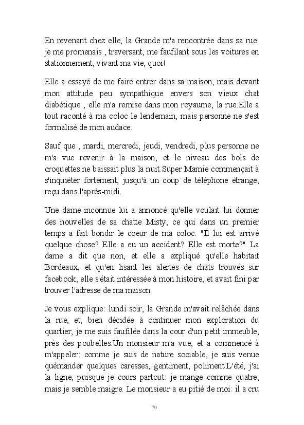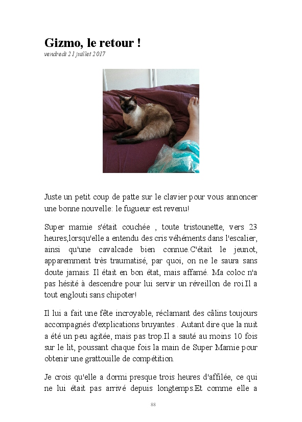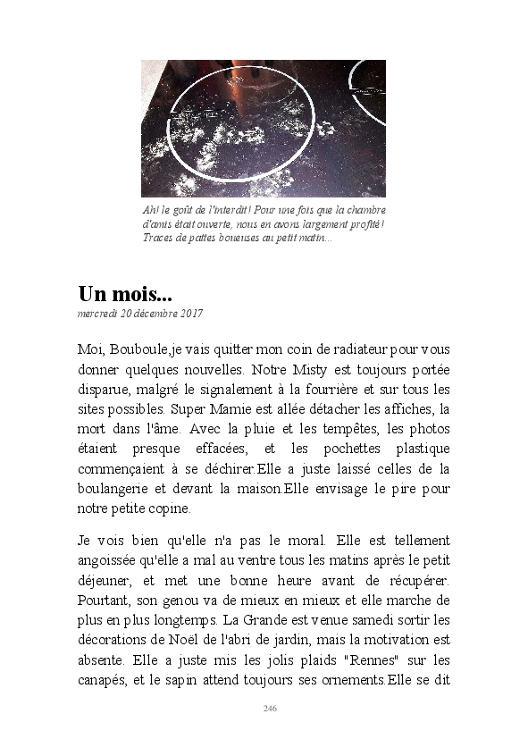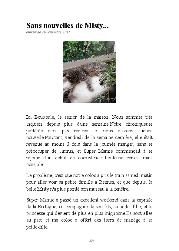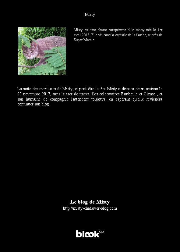 La suite des aventures de Misty, et peut-être la fin. Misty a disparu de sa maison le 20 novembre 2017, sans laisser de traces. Ses colocataires Bouboule et Gizmo , et son humaine de compagnie l'attendent toujours, en espérant qu'elle reviendra continuer son blog.