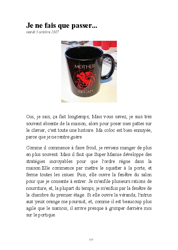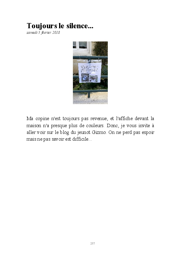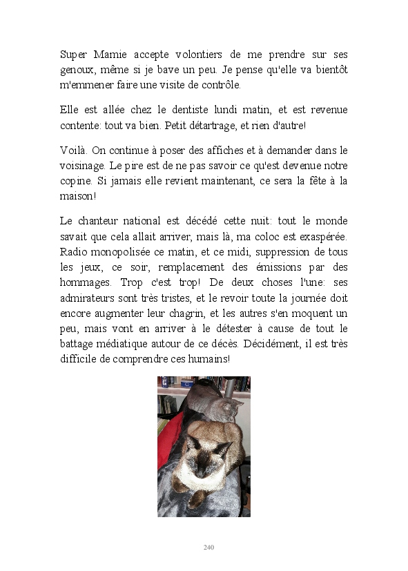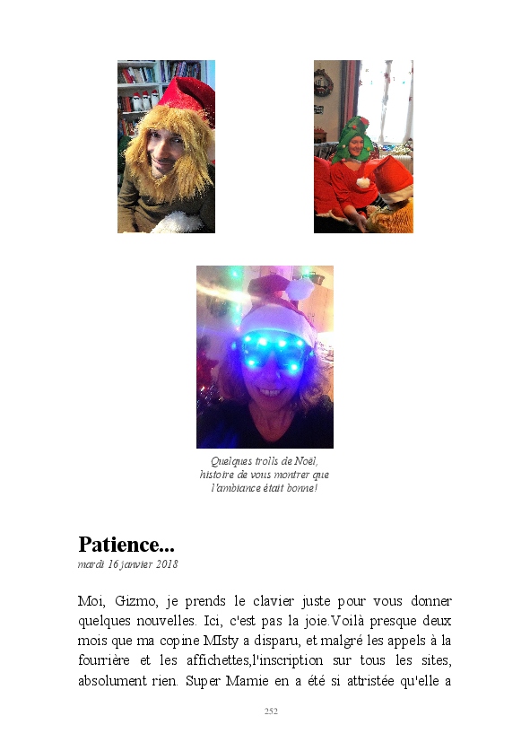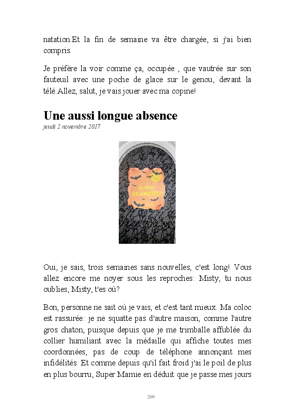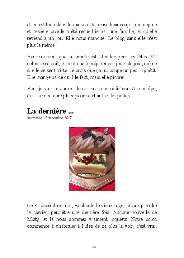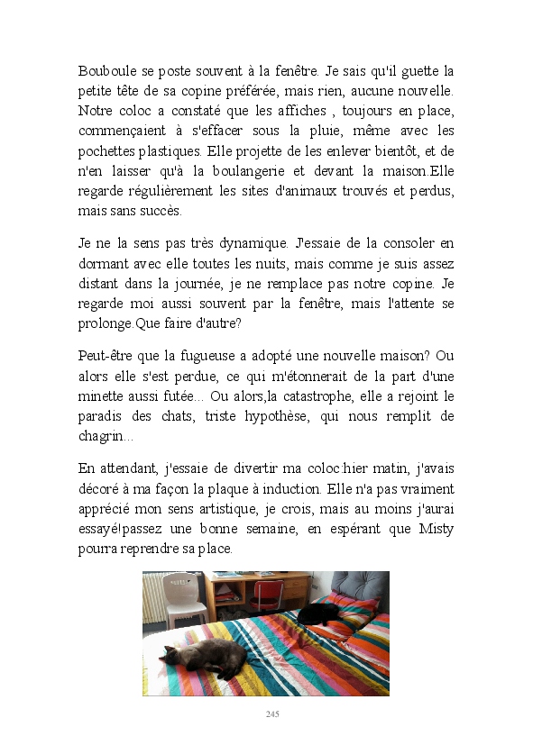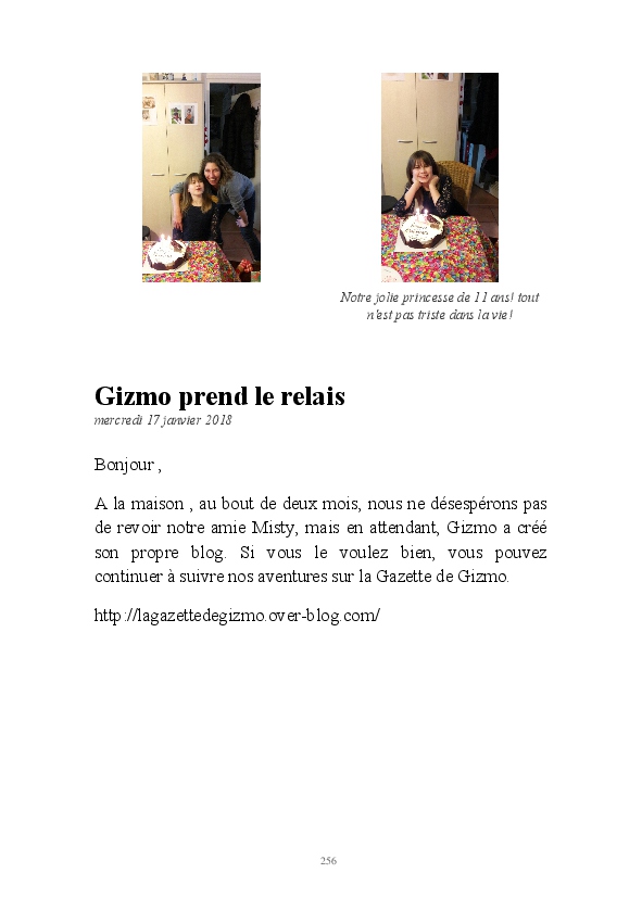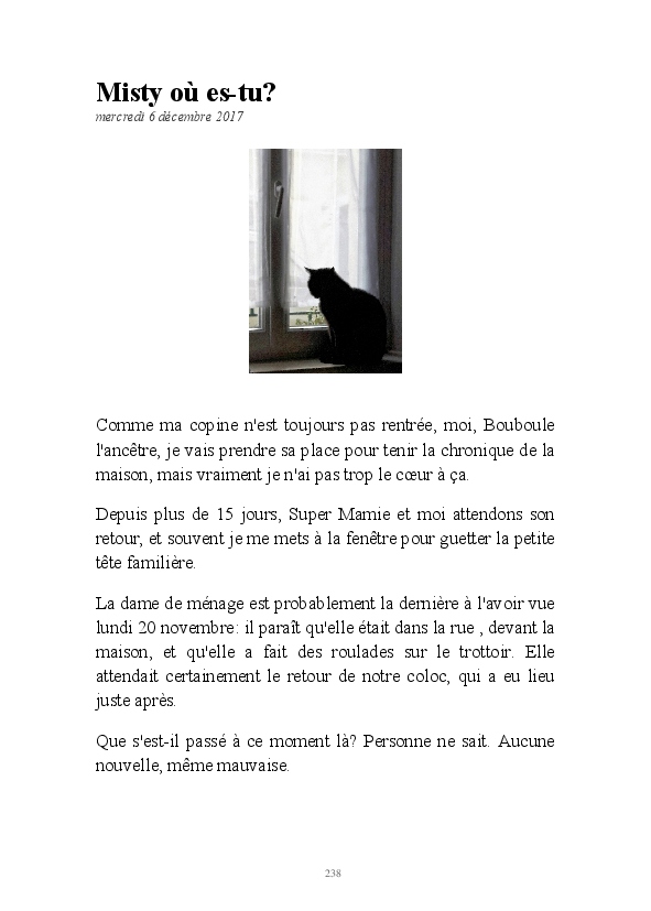 La suite des aventures de Misty, et peut-être la fin. Misty a disparu de sa maison le 20 novembre 2017, sans laisser de traces. Ses colocataires Bouboule et Gizmo , et son humaine de compagnie l'attendent toujours, en espérant qu'elle reviendra continuer son blog.