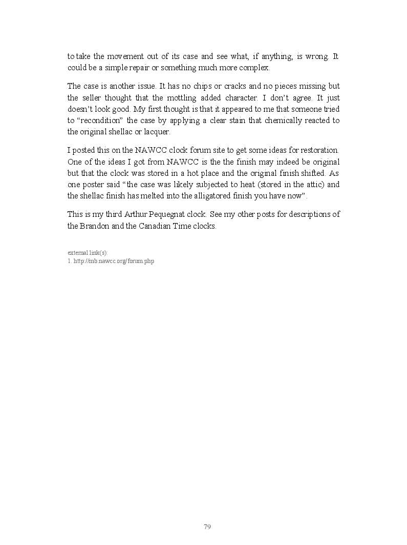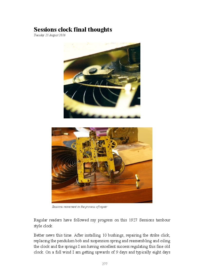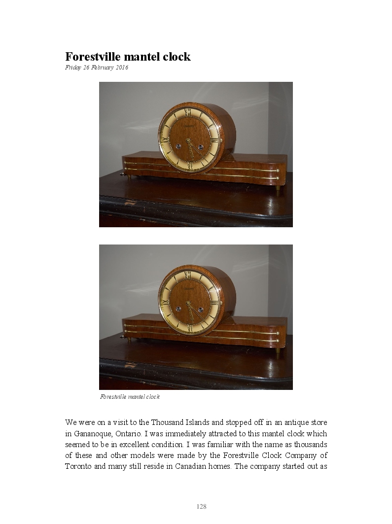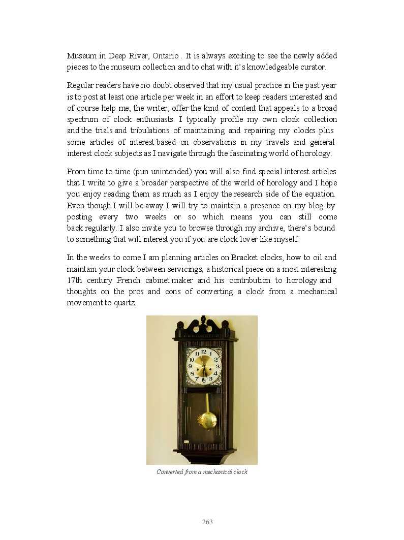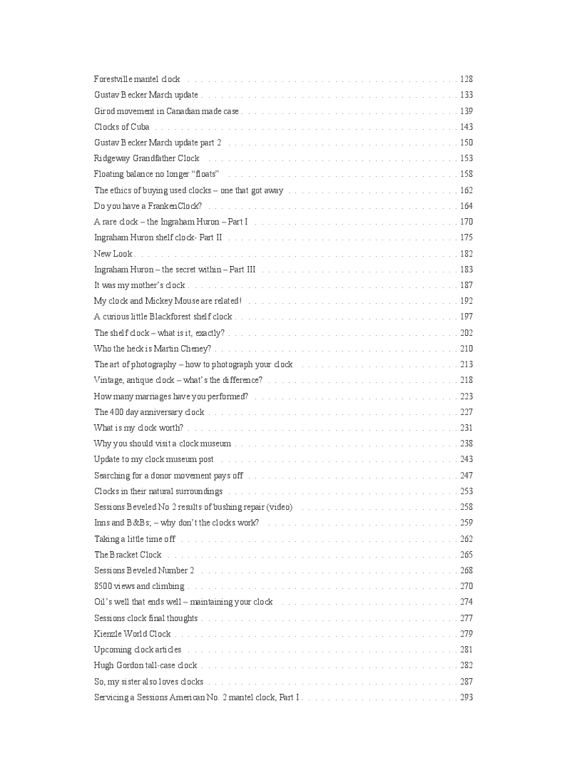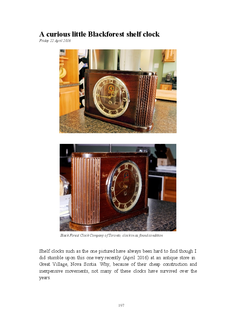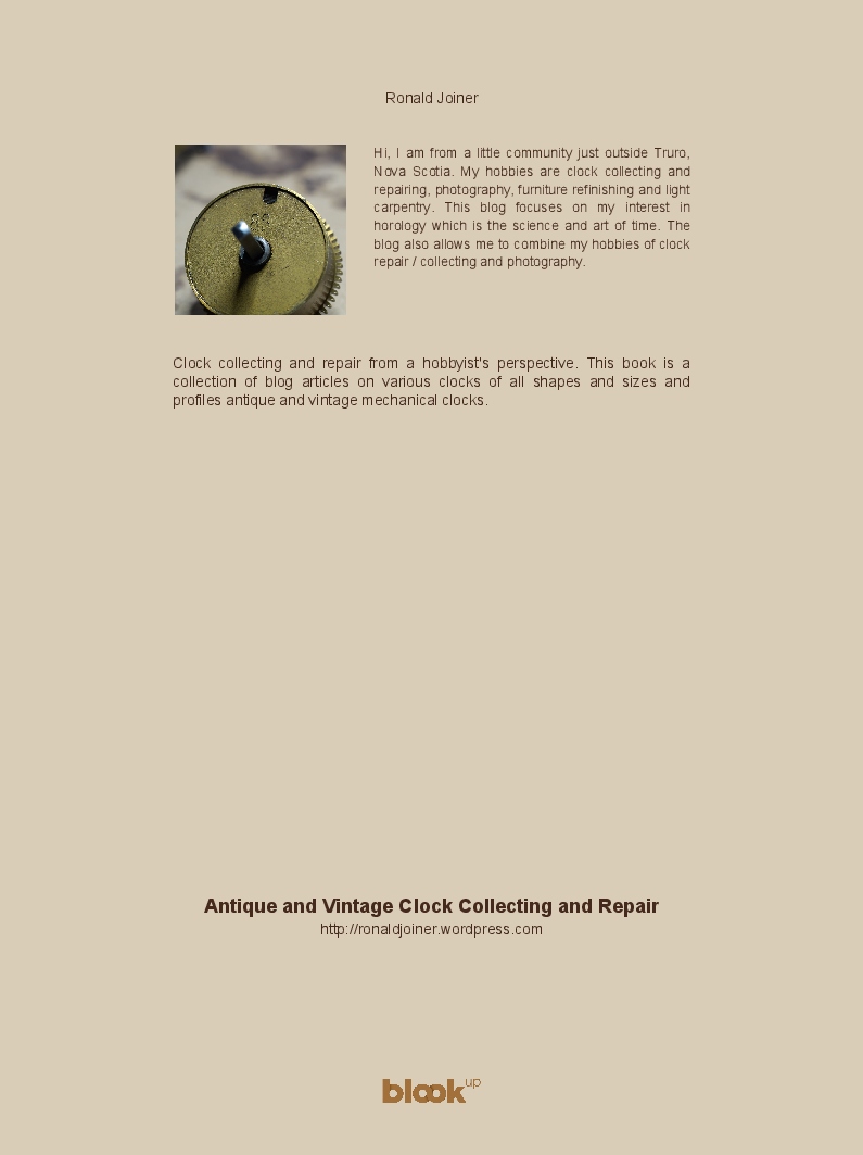 Clock collecting and repair from a hobbyist's perspective. This book is a collection of blog articles on various clocks of all shapes and sizes and profiles antique and vintage mechanical clocks.