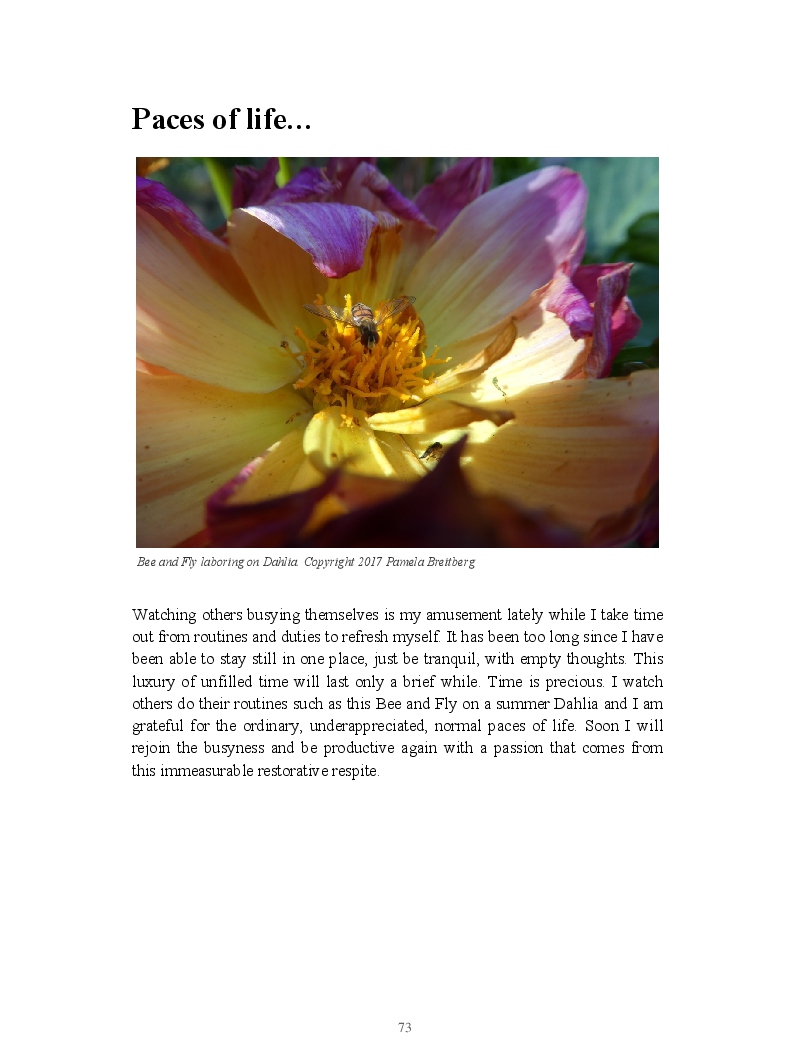 This book encompasses the 2017 blog posts of Pamela Breitberg.