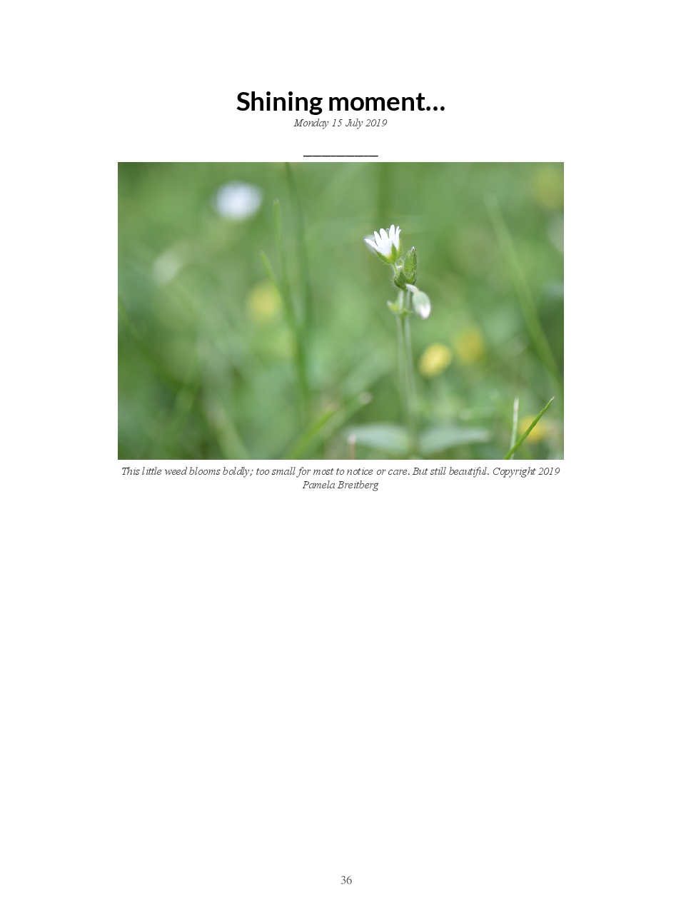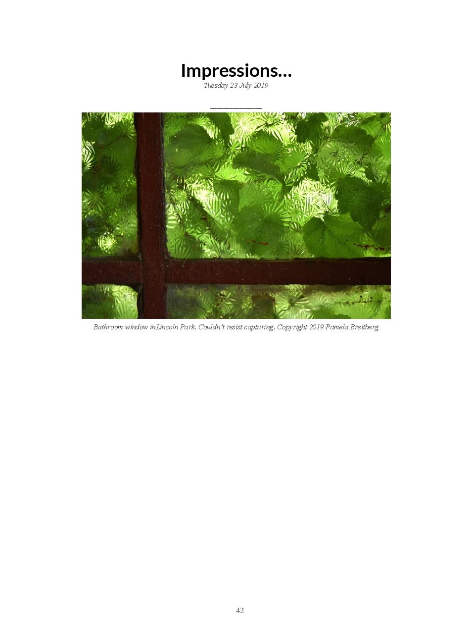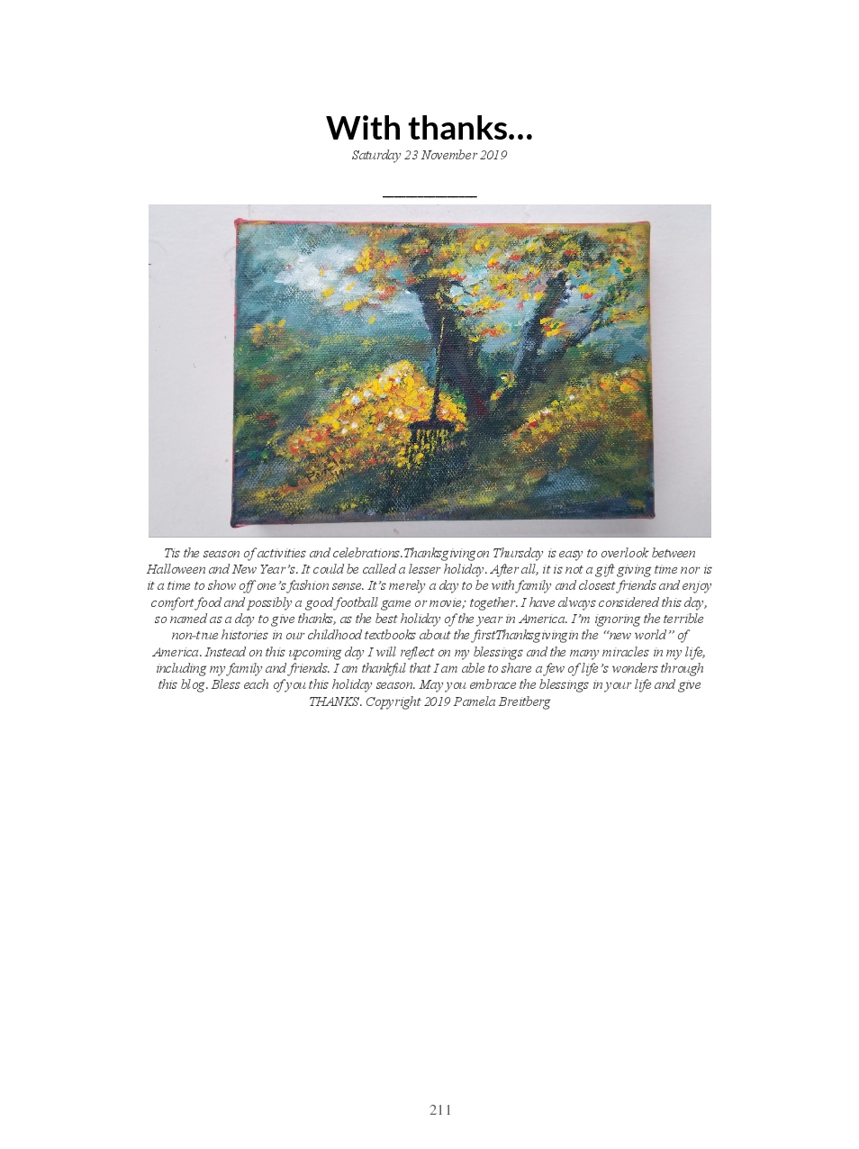 This volume Six comprises Pamela's blog posts from July 1, 2019 through December 31, 2019.