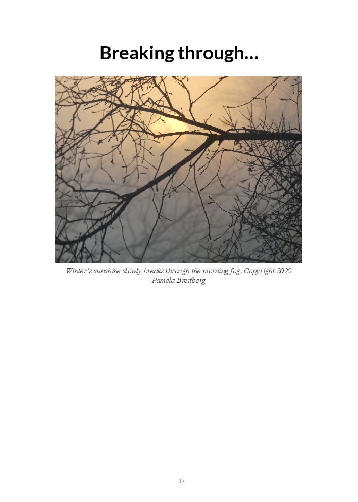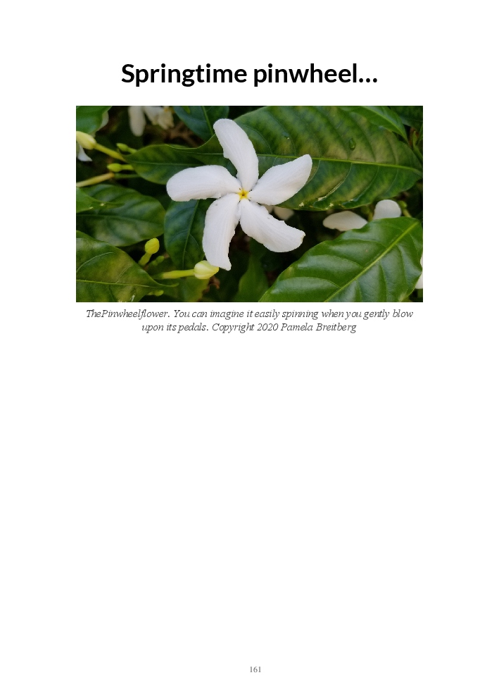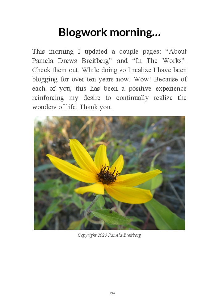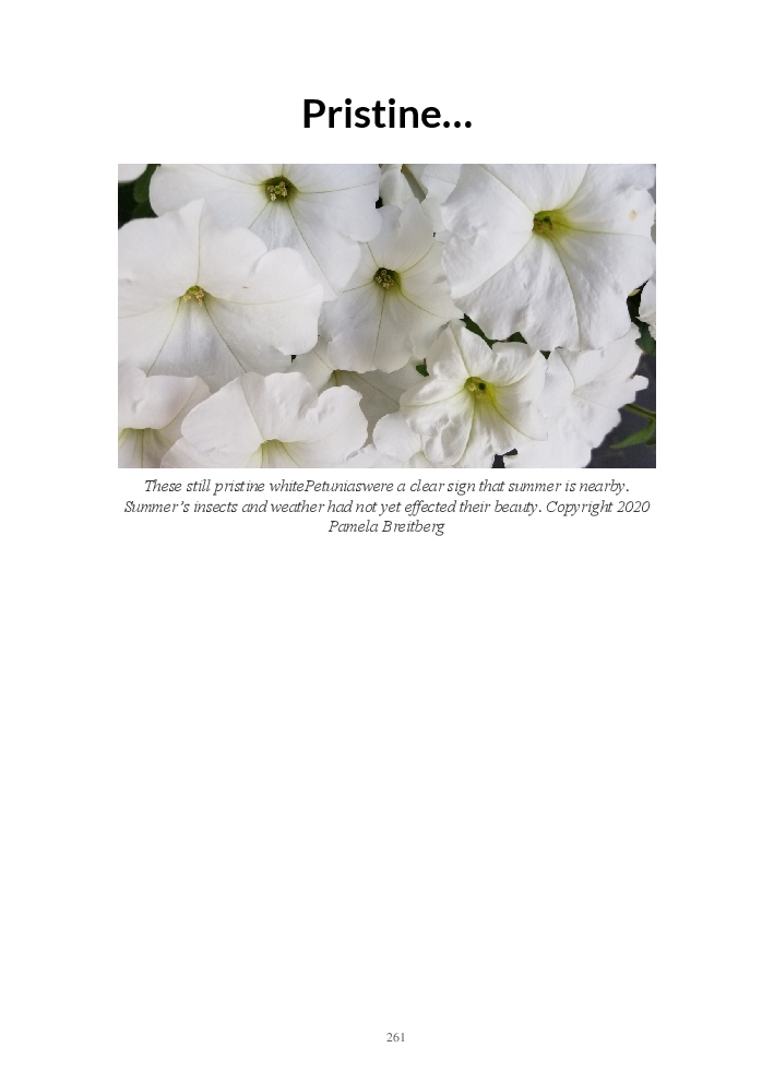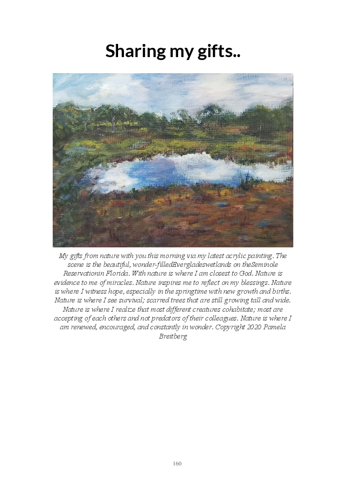 Pamela Ruth Drews Breitberg combines her love of nature, people, places in her photography and artwork. For ten years she has shared her words and works with people around the world in an effort to make them more aware of the Miracles in their everyday lives.