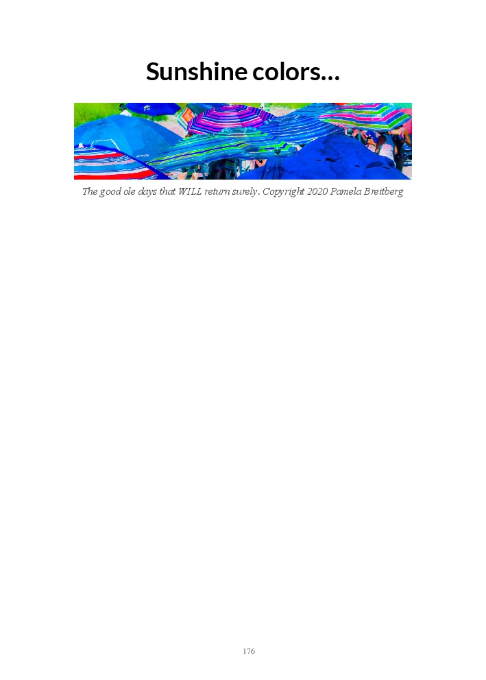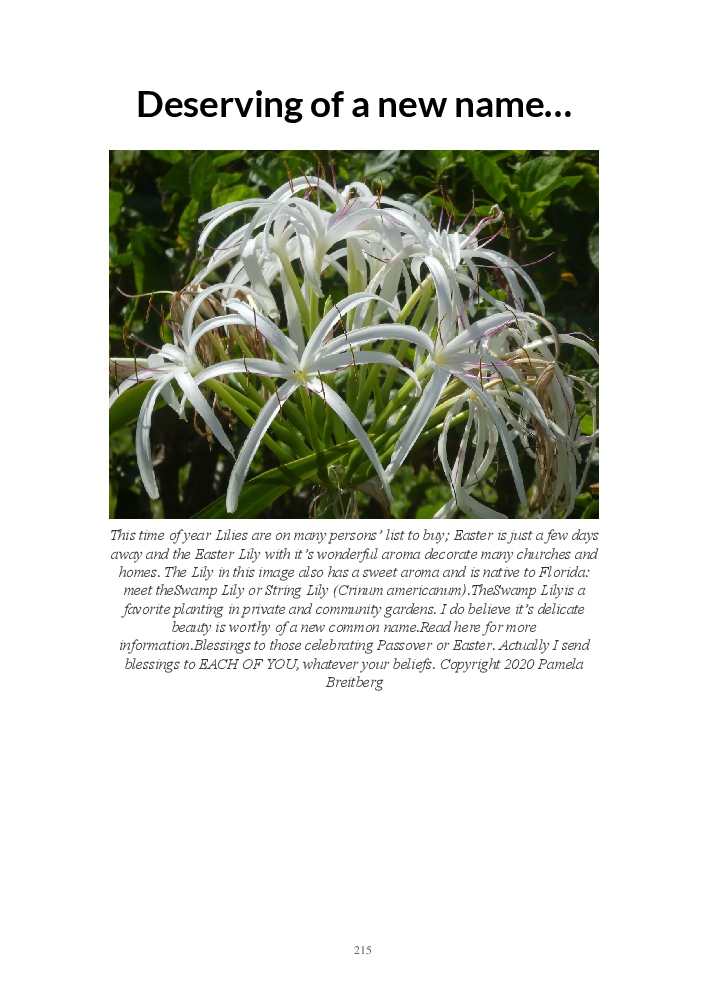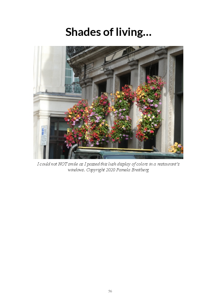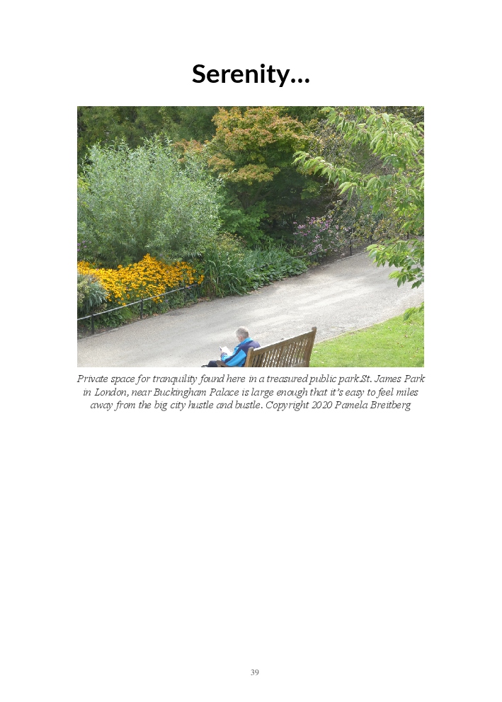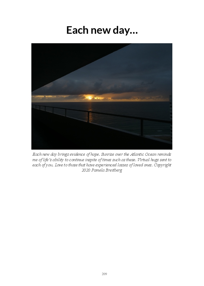 Pamela Ruth Drews Breitberg combines her love of nature, people, places in her photography and artwork. For ten years she has shared her words and works with people around the world in an effort to make them more aware of the Miracles in their everyday lives.