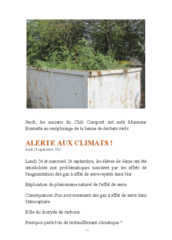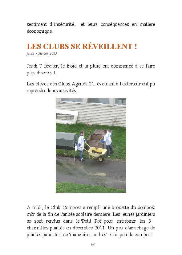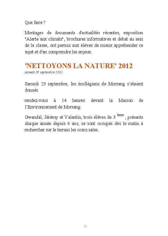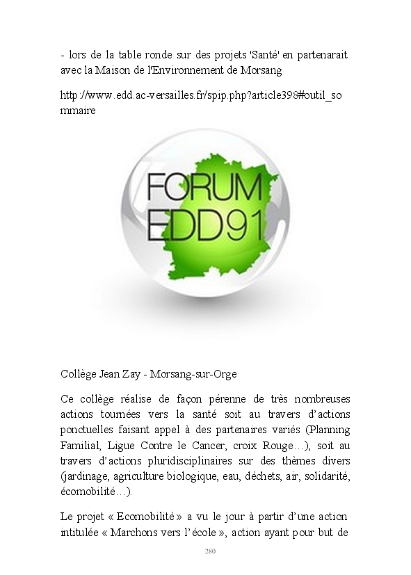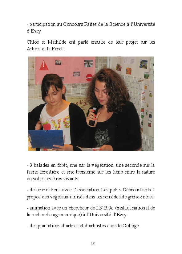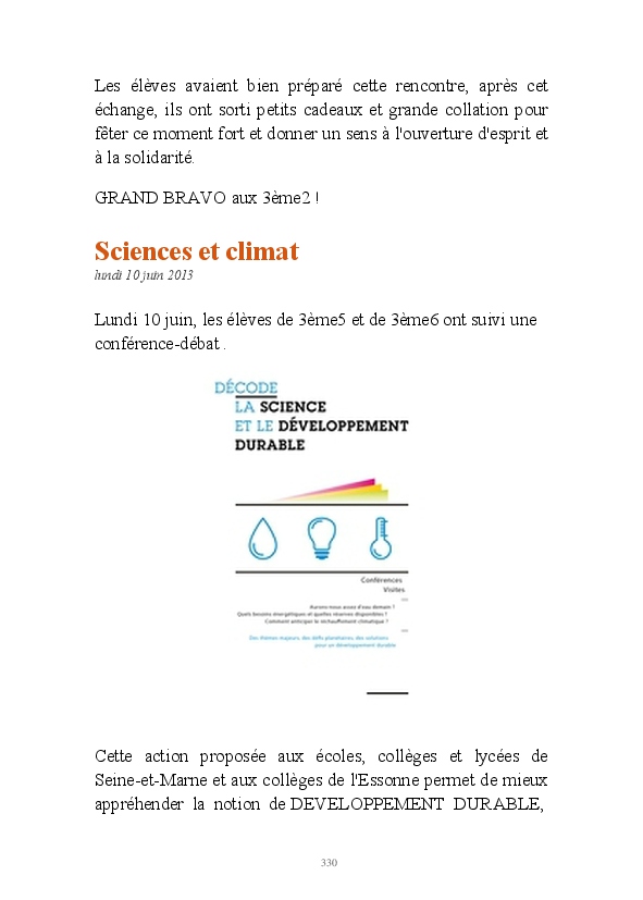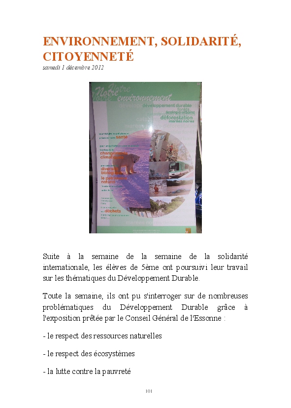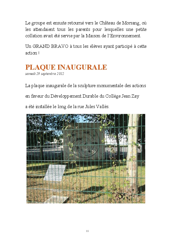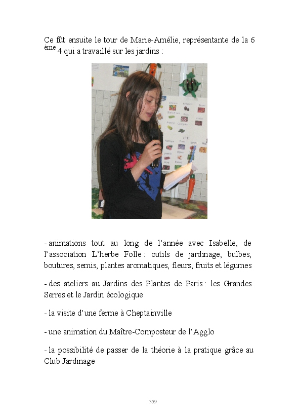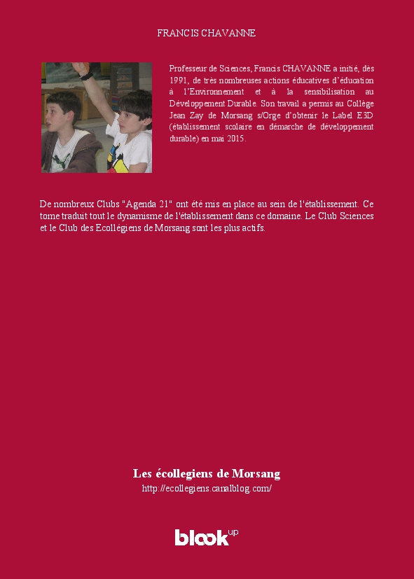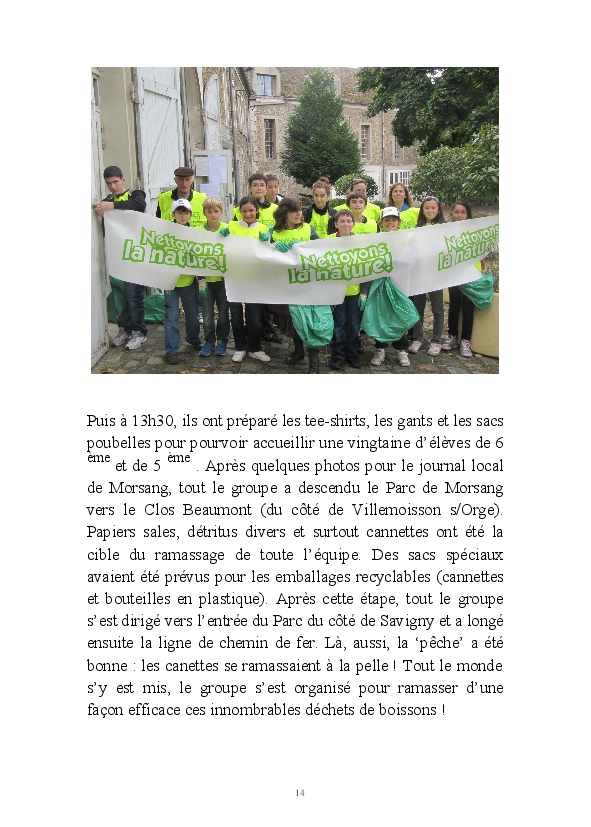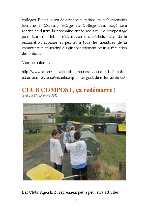 De nombreux Clubs "Agenda 21" ont été mis en place au sein de l'établissement. Ce tome traduit tout le dynamisme de l'établissement dans ce domaine. Le Club Sciences et le Club des Ecollégiens de Morsang sont les plus actifs.