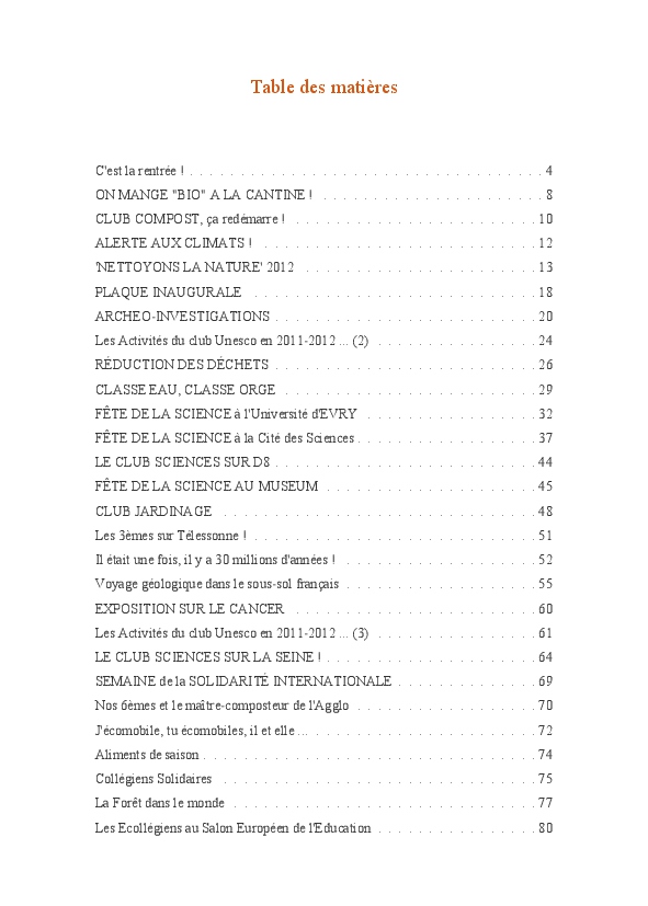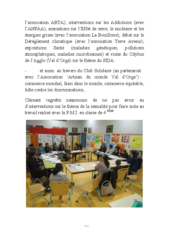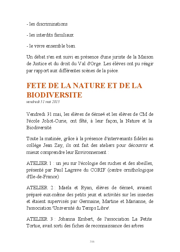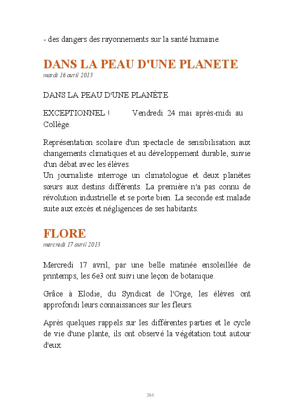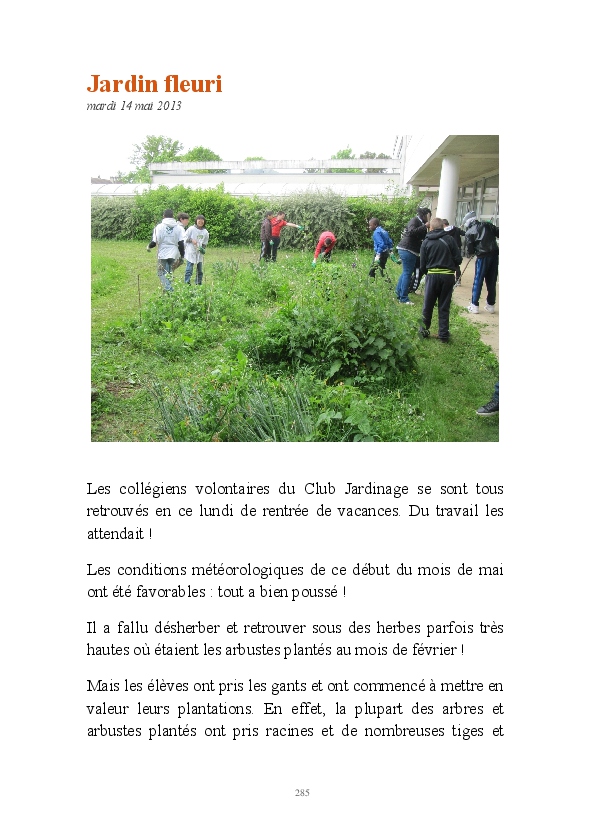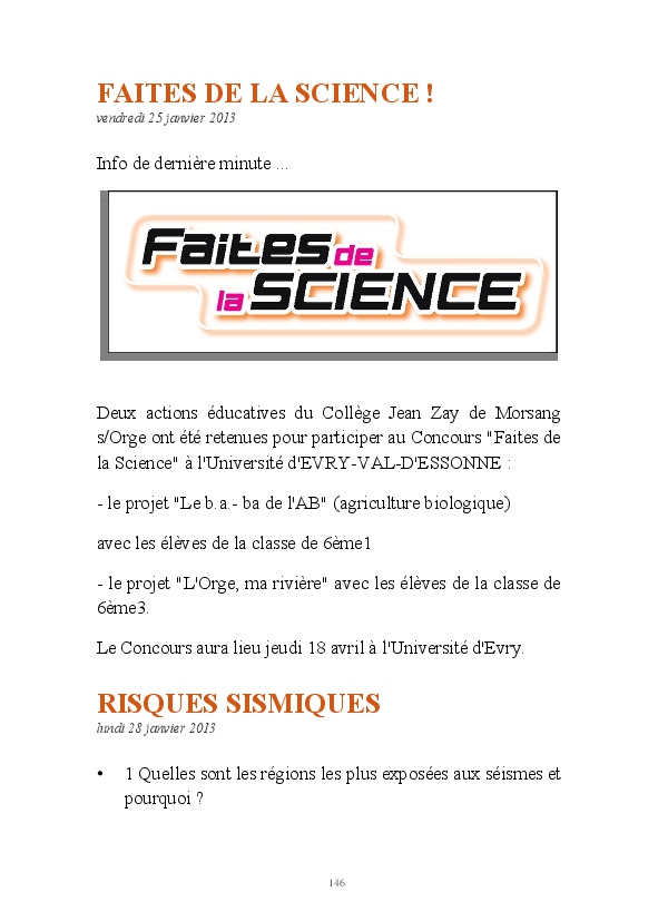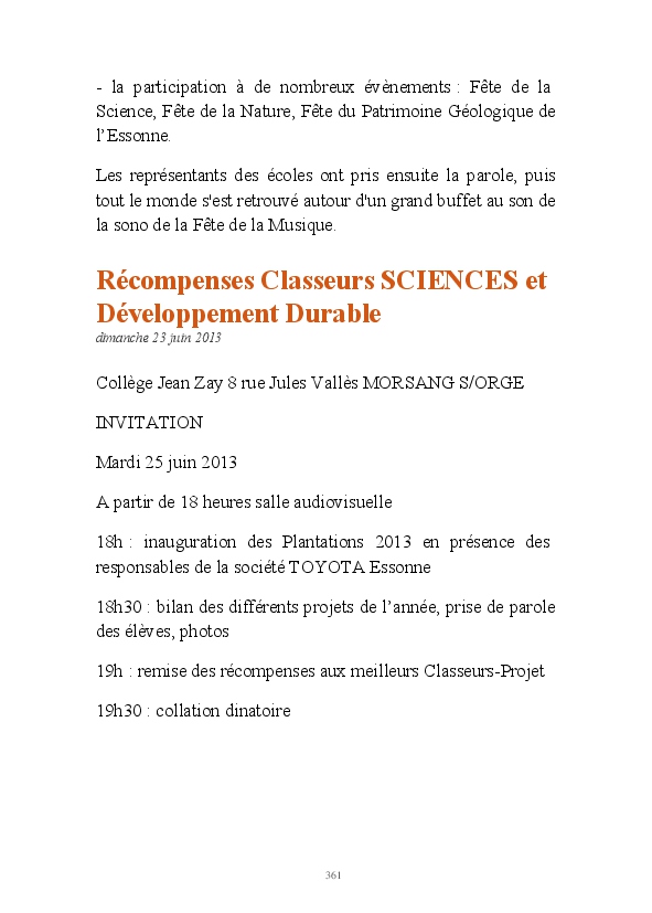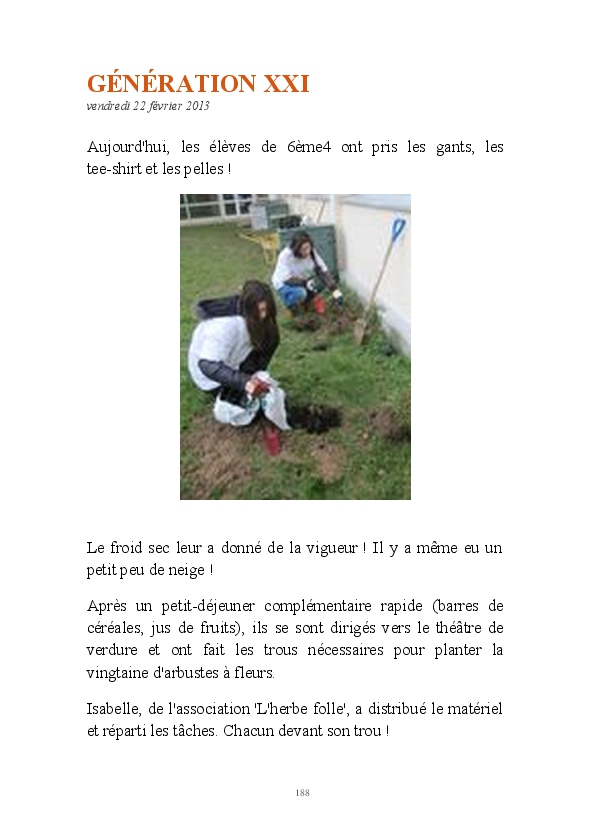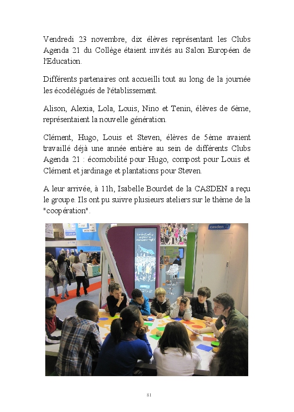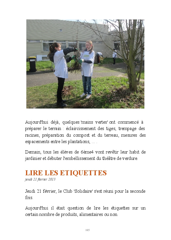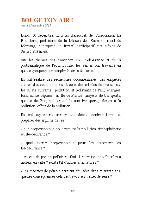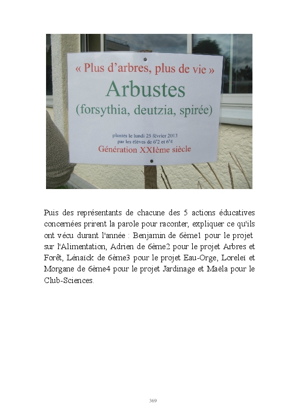 De nombreux Clubs "Agenda 21" ont été mis en place au sein de l'établissement. Ce tome traduit tout le dynamisme de l'établissement dans ce domaine. Le Club Sciences et le Club des Ecollégiens de Morsang sont les plus actifs.