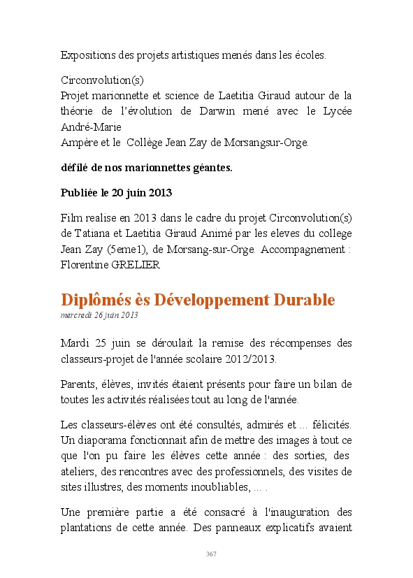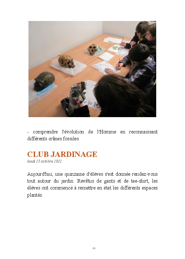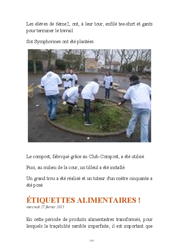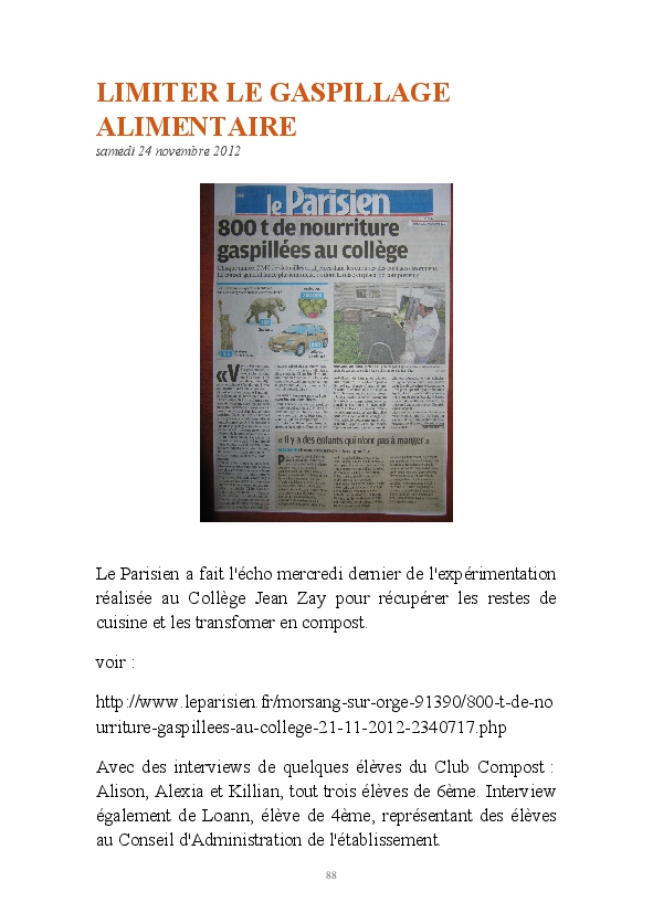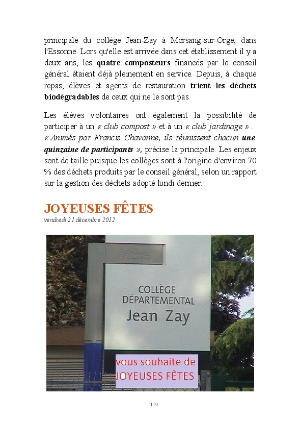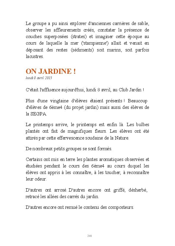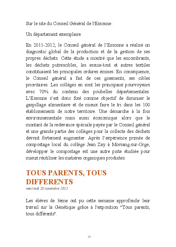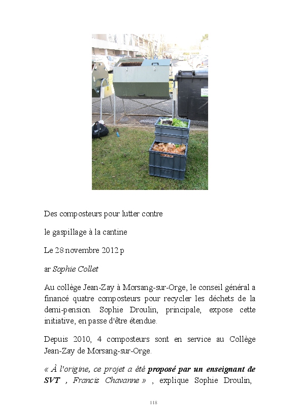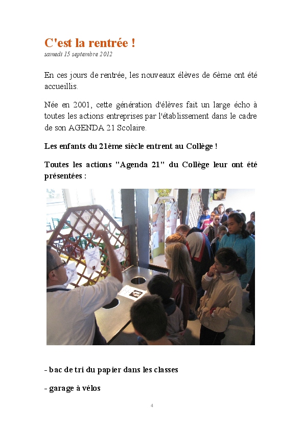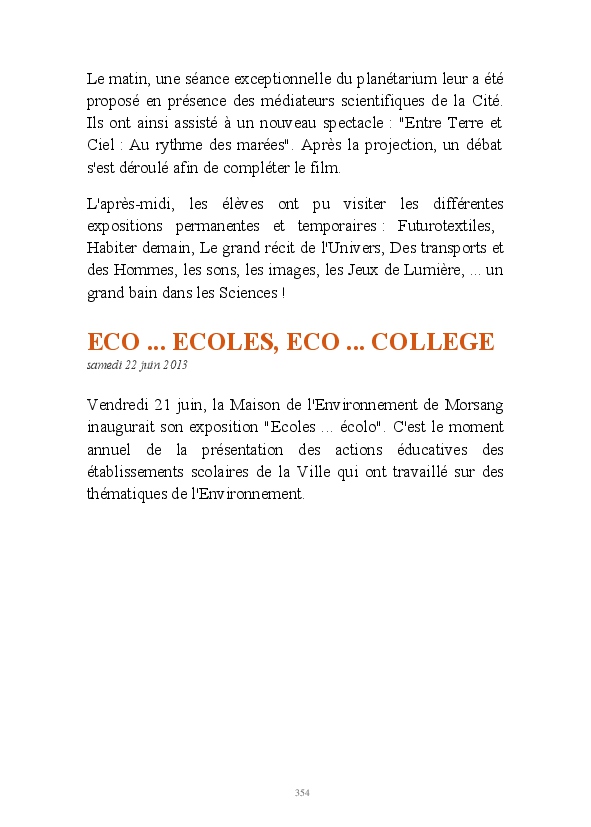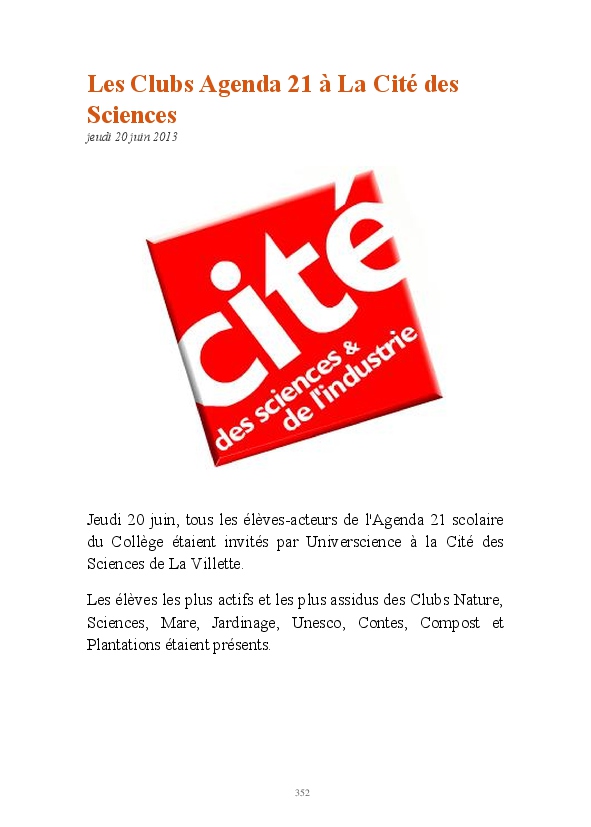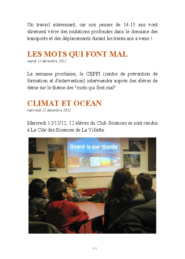 De nombreux Clubs "Agenda 21" ont été mis en place au sein de l'établissement. Ce tome traduit tout le dynamisme de l'établissement dans ce domaine. Le Club Sciences et le Club des Ecollégiens de Morsang sont les plus actifs.