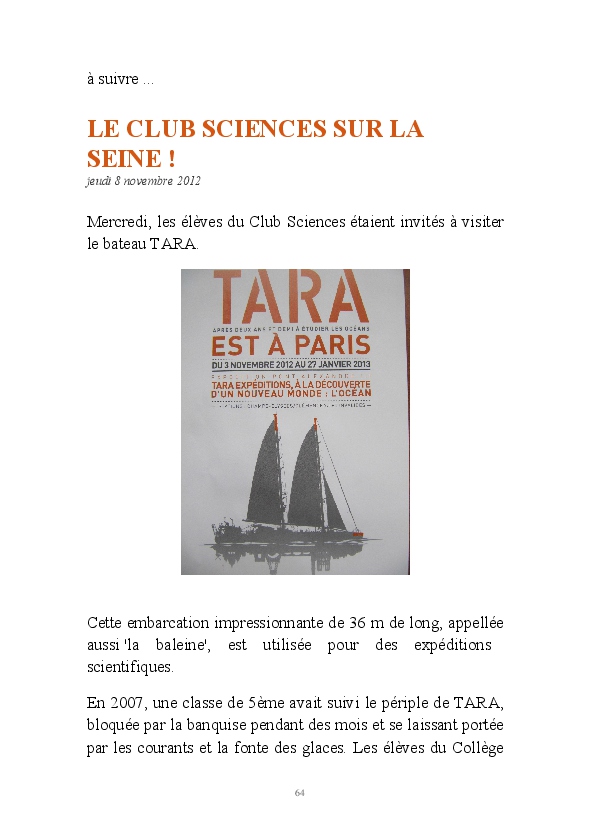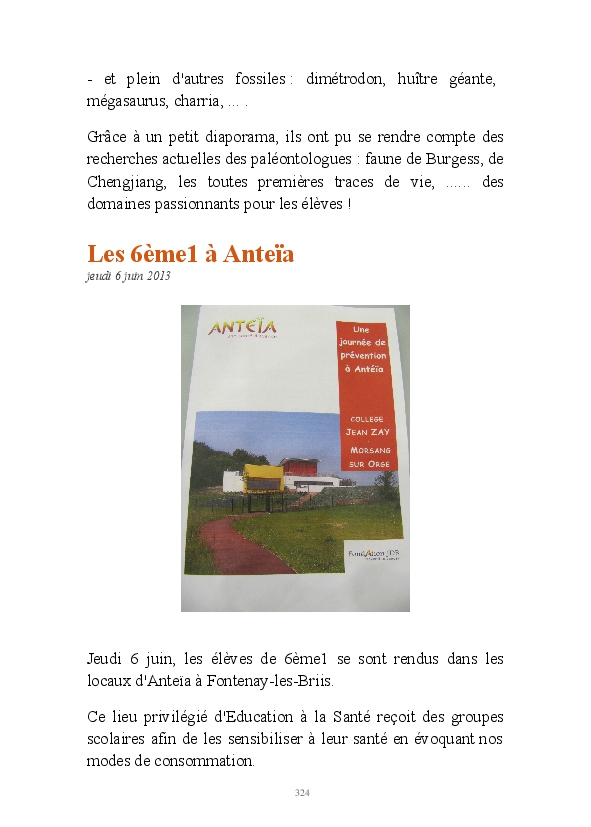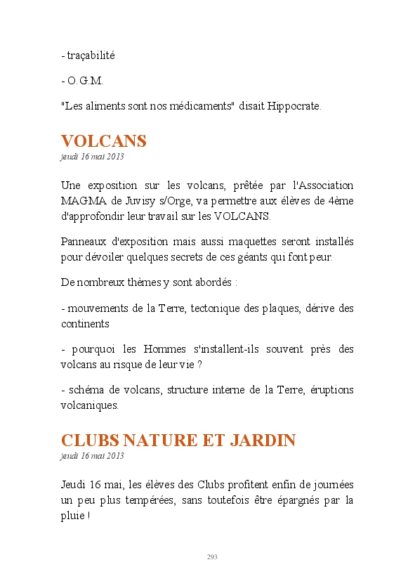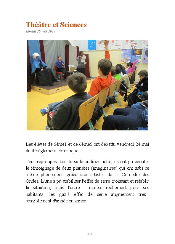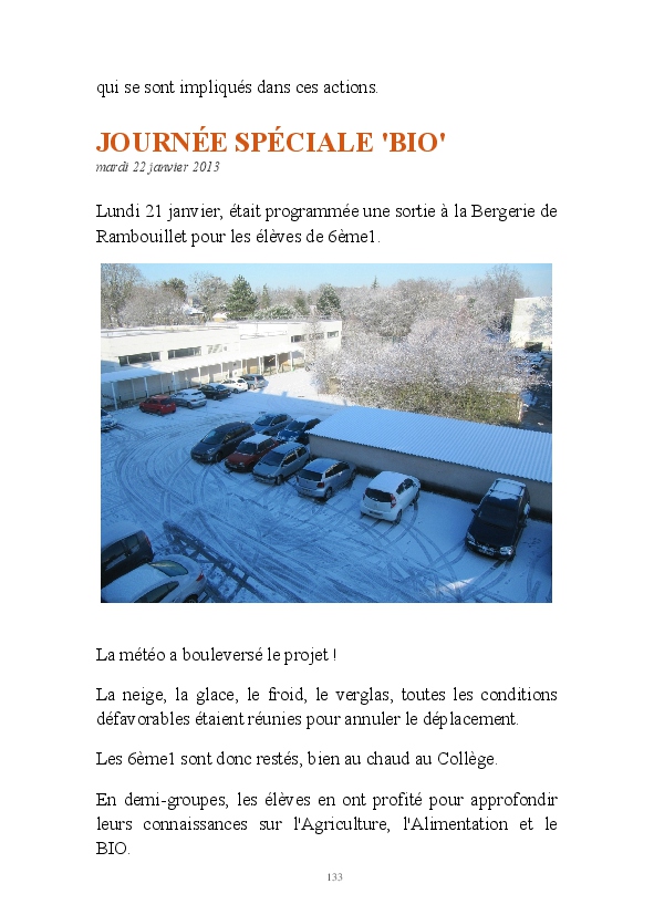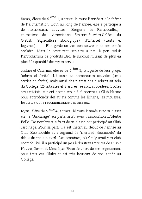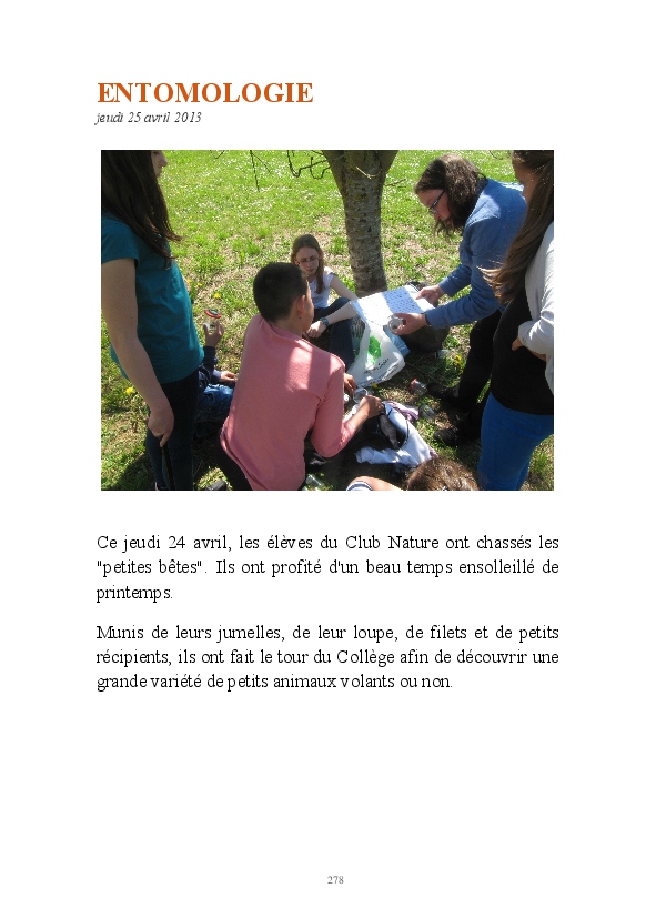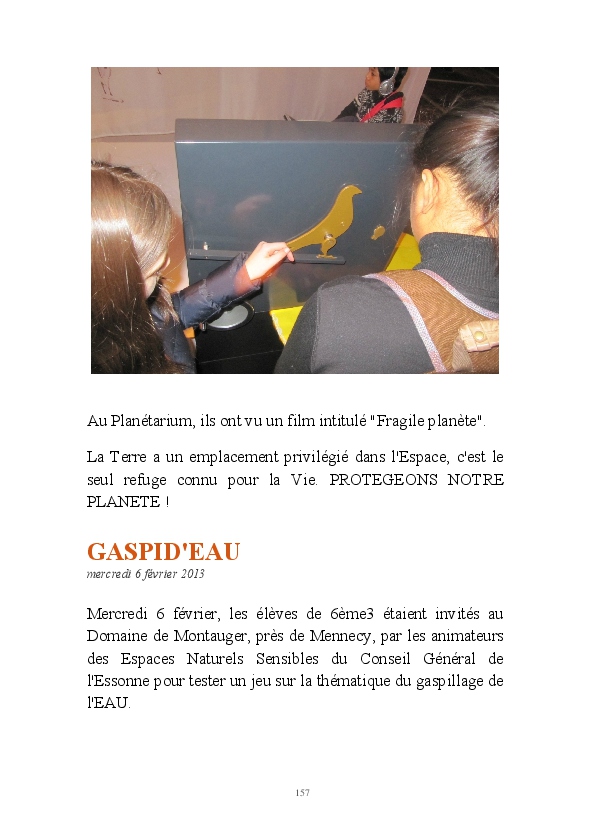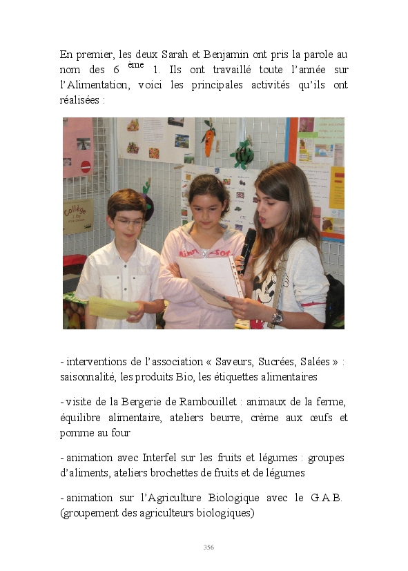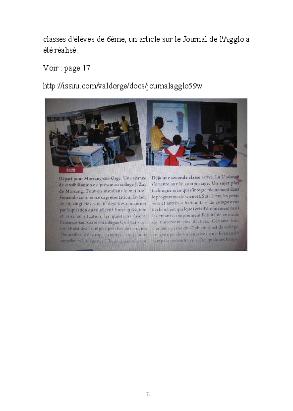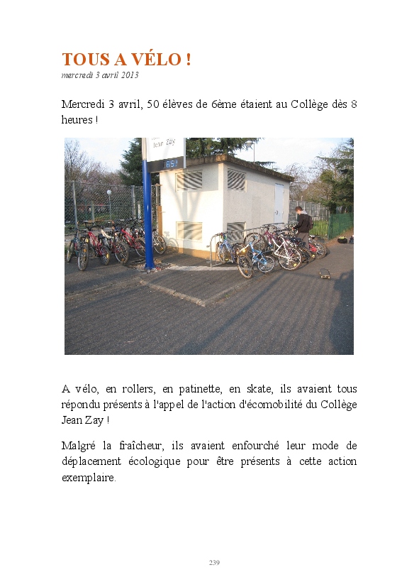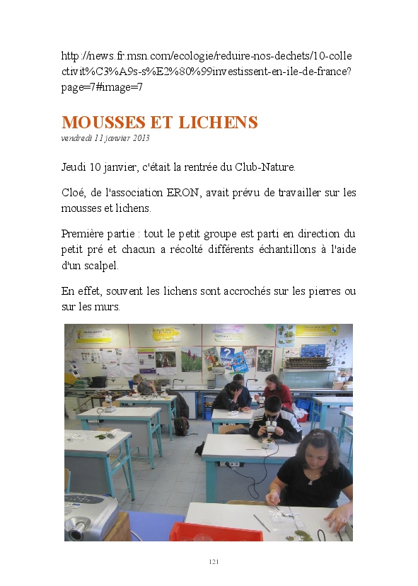 De nombreux Clubs "Agenda 21" ont été mis en place au sein de l'établissement. Ce tome traduit tout le dynamisme de l'établissement dans ce domaine. Le Club Sciences et le Club des Ecollégiens de Morsang sont les plus actifs.