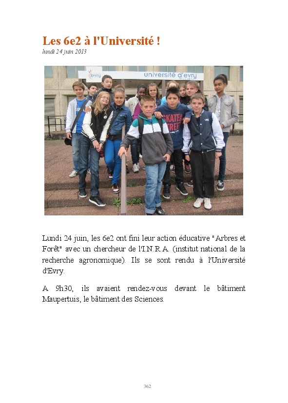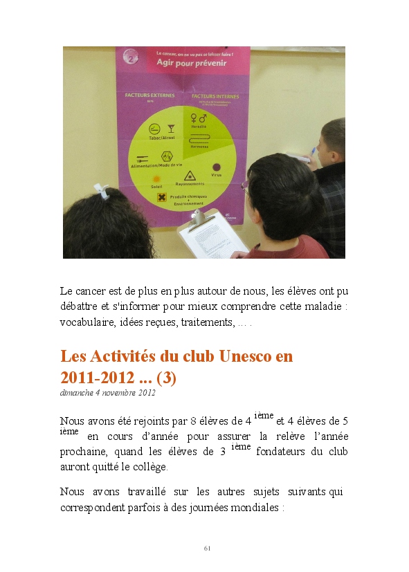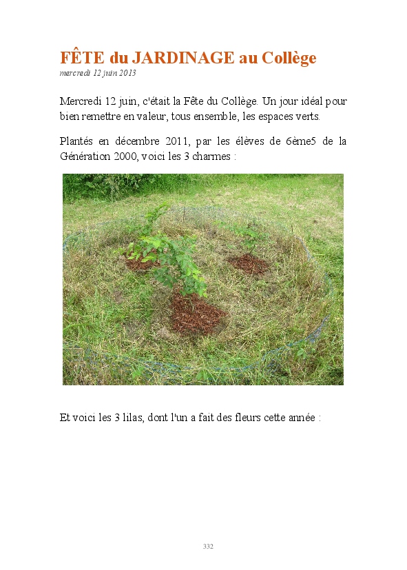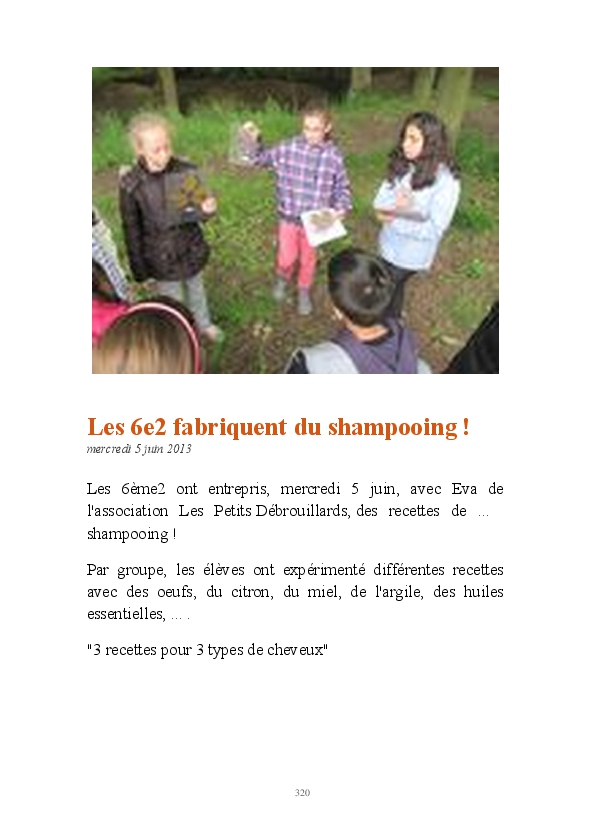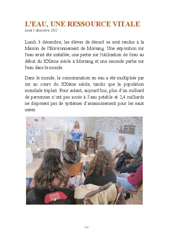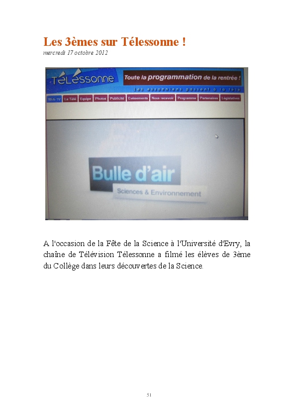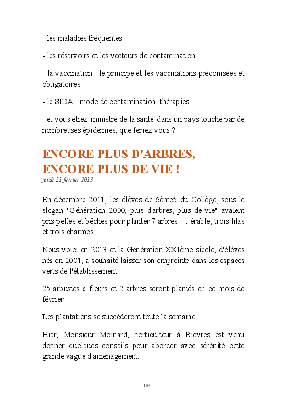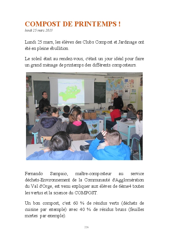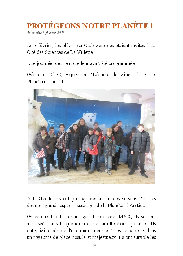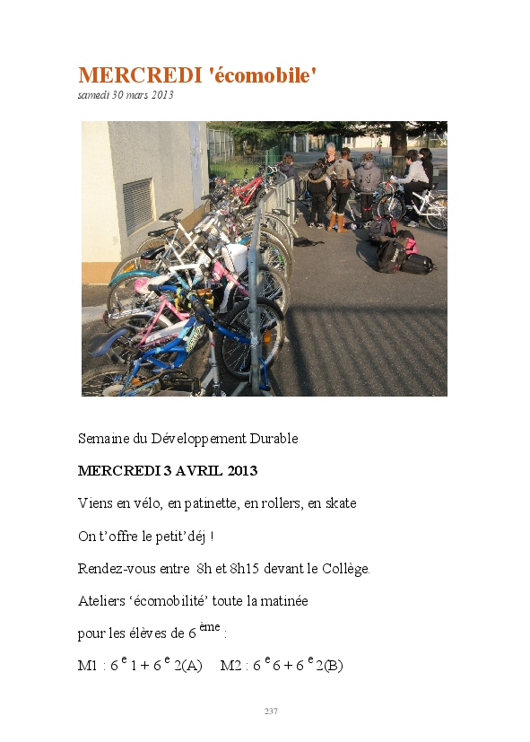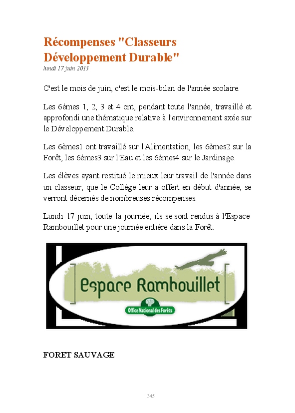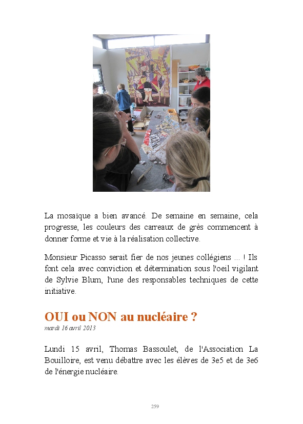 De nombreux Clubs "Agenda 21" ont été mis en place au sein de l'établissement. Ce tome traduit tout le dynamisme de l'établissement dans ce domaine. Le Club Sciences et le Club des Ecollégiens de Morsang sont les plus actifs.