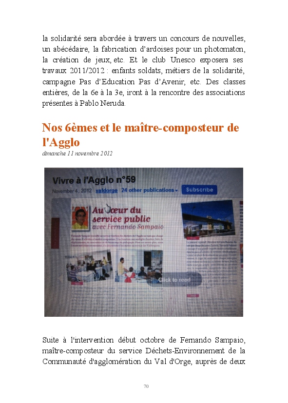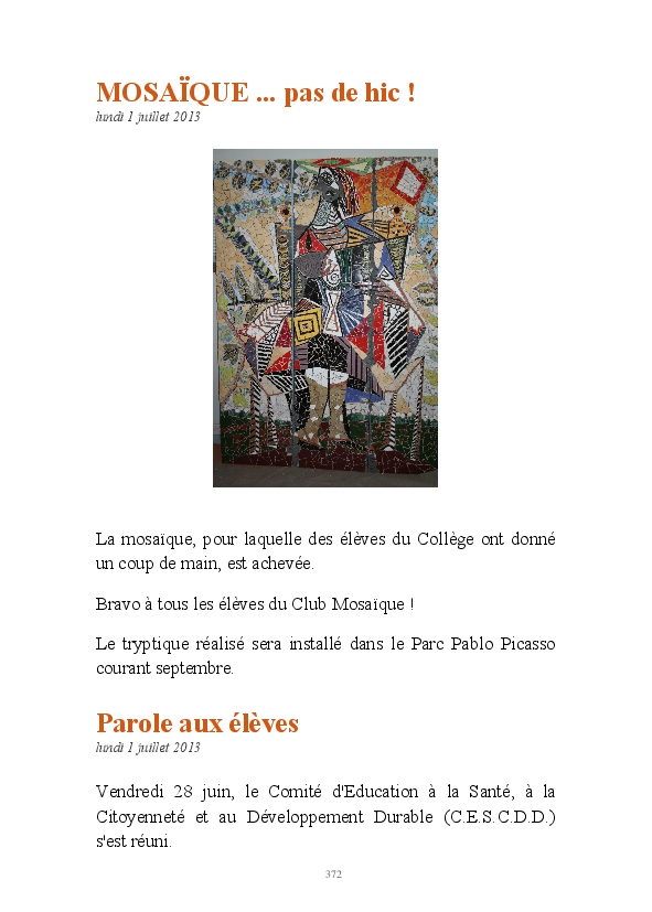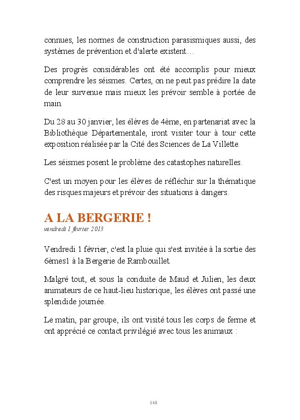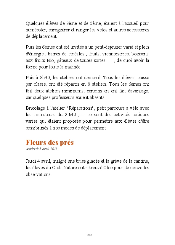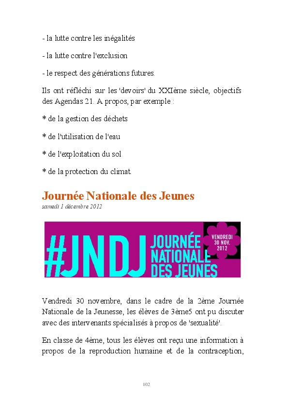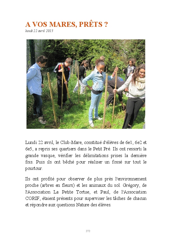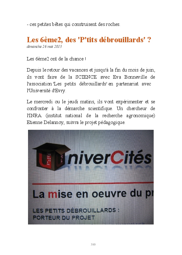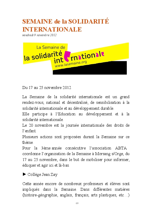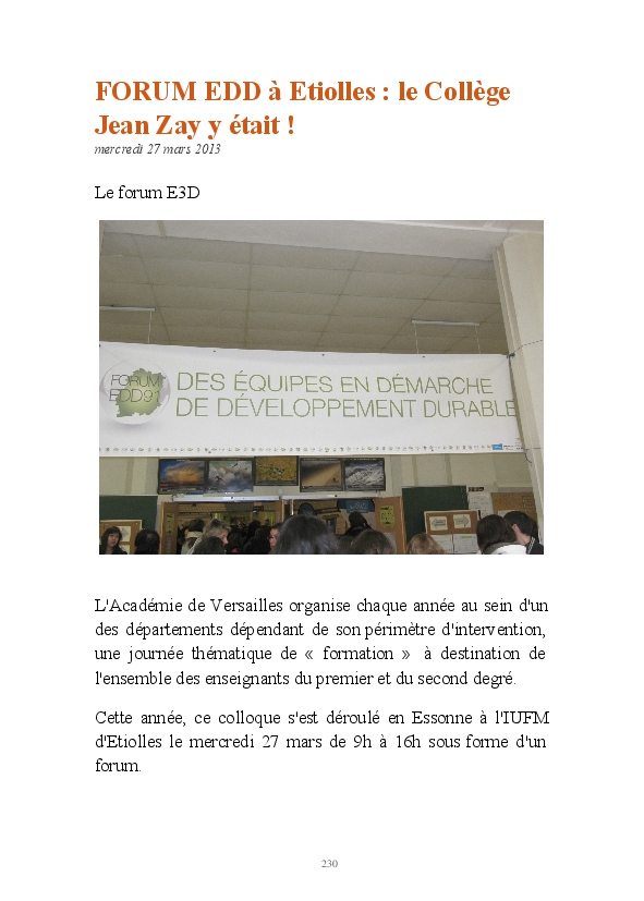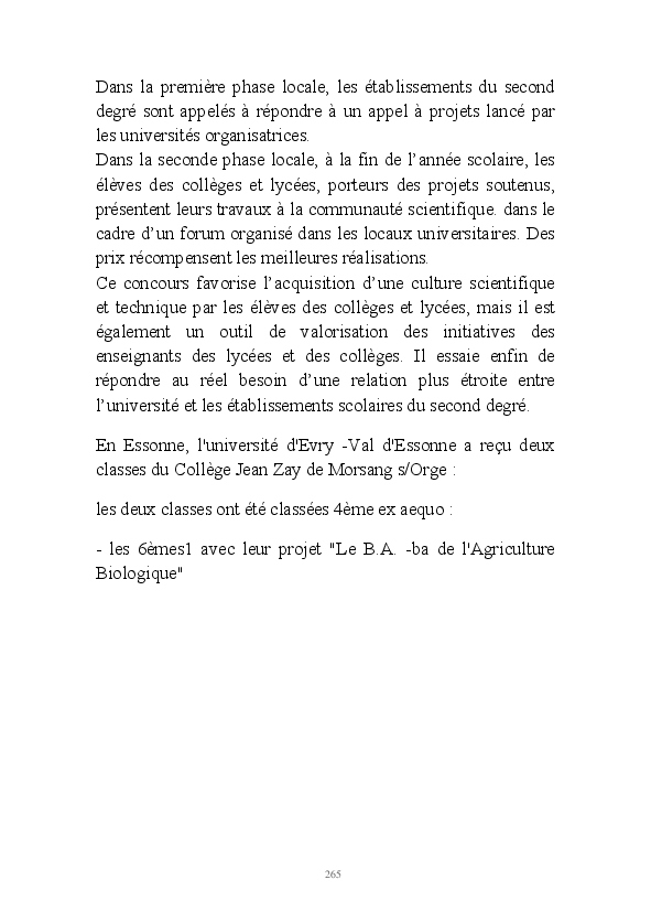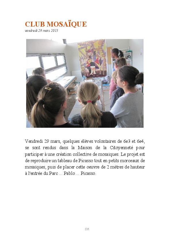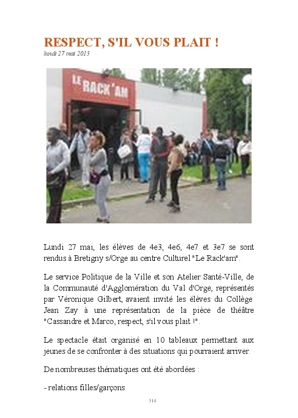 De nombreux Clubs "Agenda 21" ont été mis en place au sein de l'établissement. Ce tome traduit tout le dynamisme de l'établissement dans ce domaine. Le Club Sciences et le Club des Ecollégiens de Morsang sont les plus actifs.