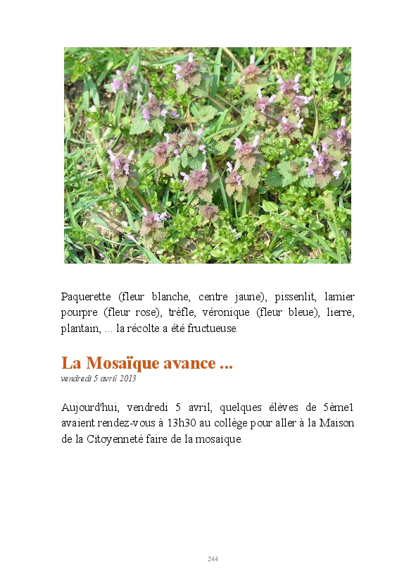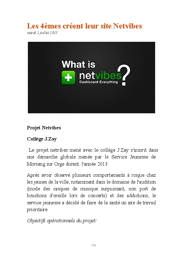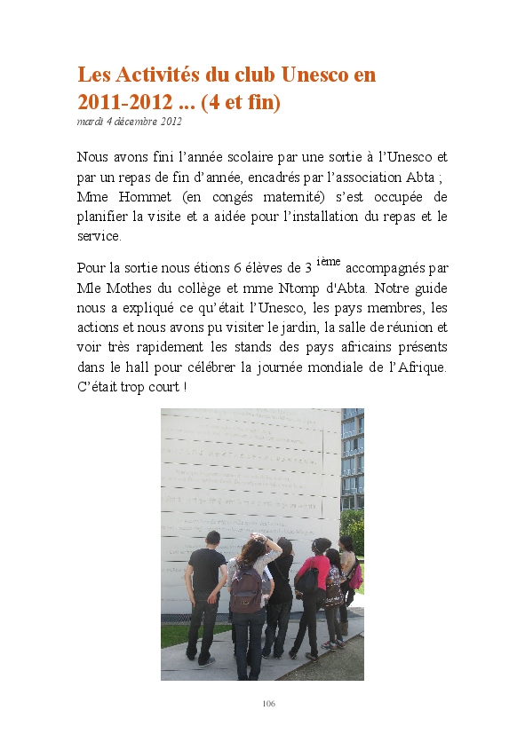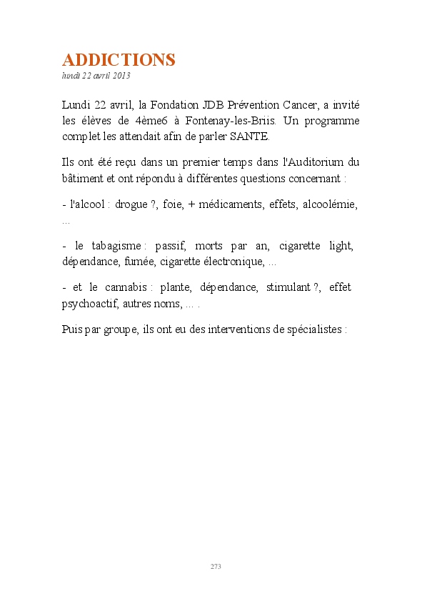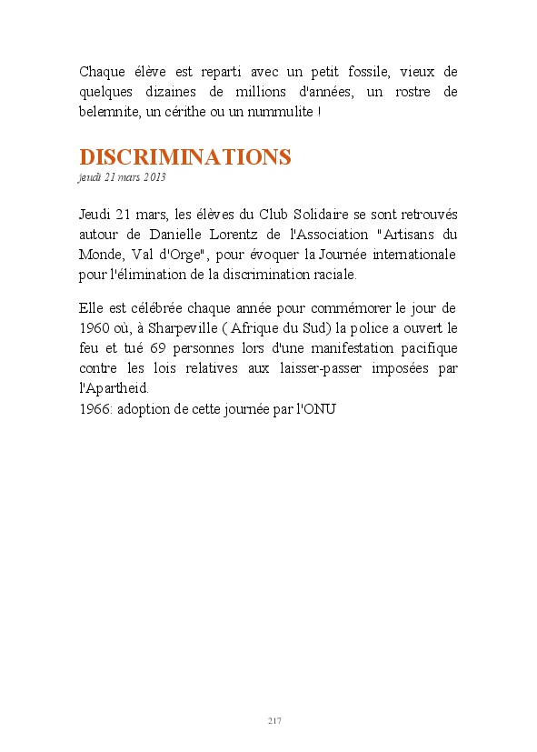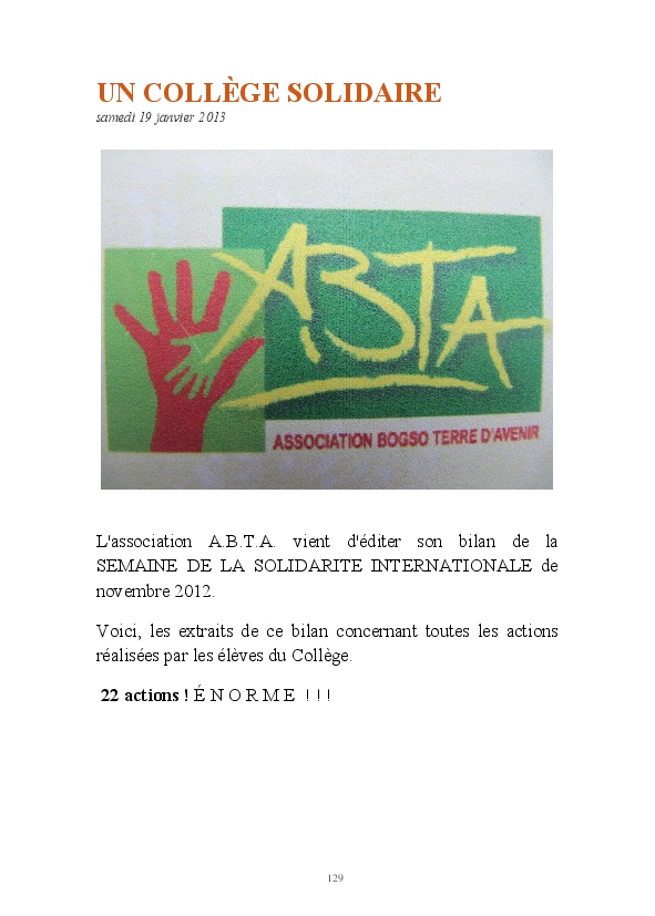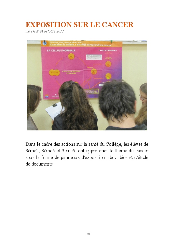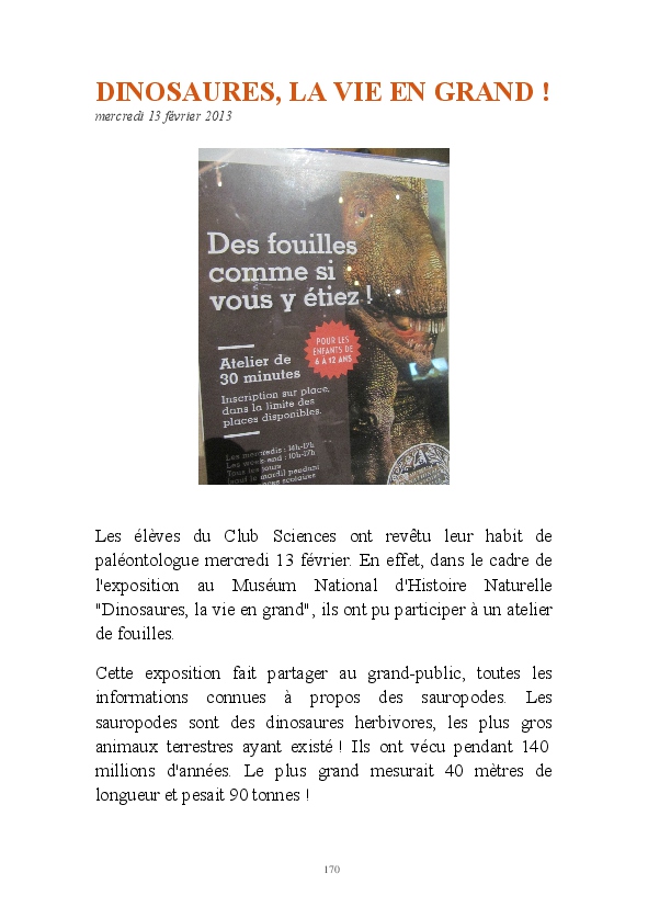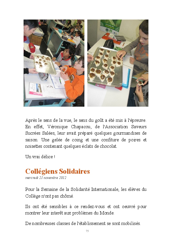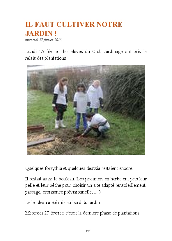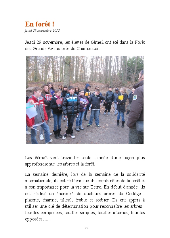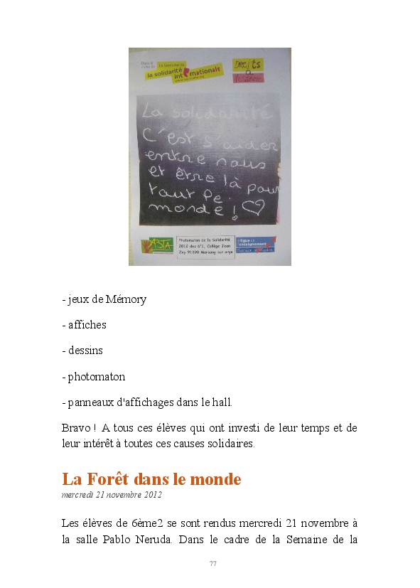 De nombreux Clubs "Agenda 21" ont été mis en place au sein de l'établissement. Ce tome traduit tout le dynamisme de l'établissement dans ce domaine. Le Club Sciences et le Club des Ecollégiens de Morsang sont les plus actifs.
