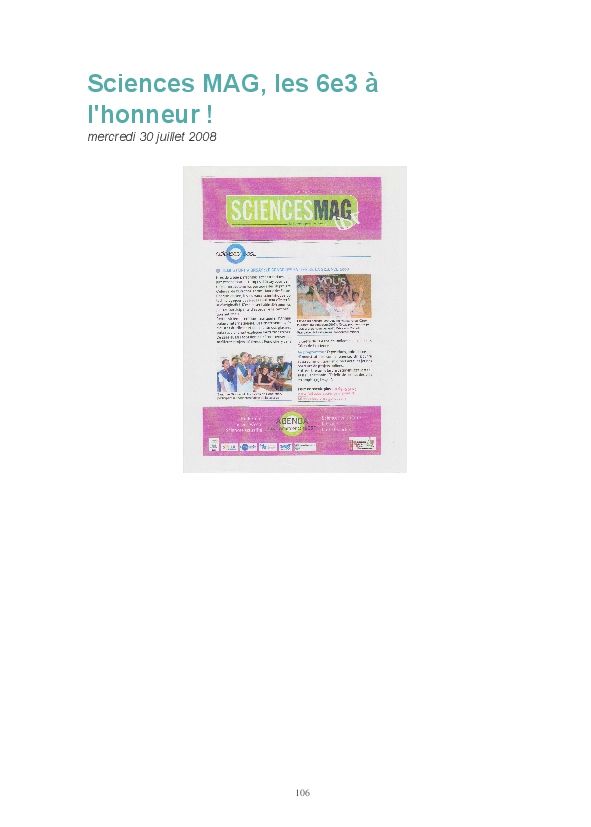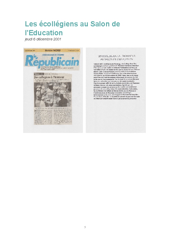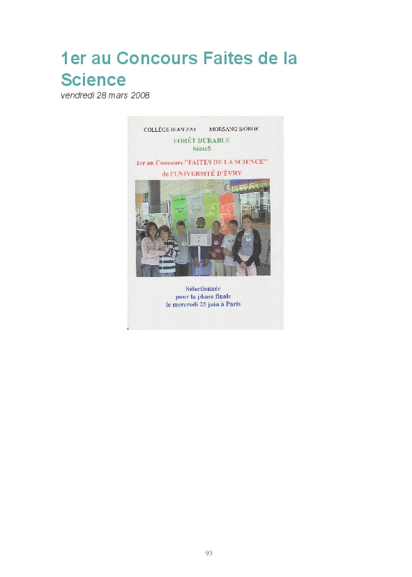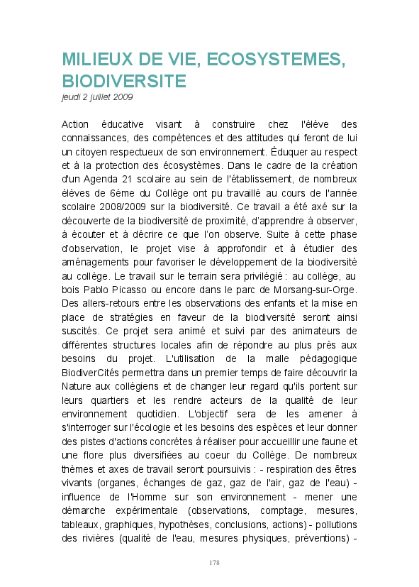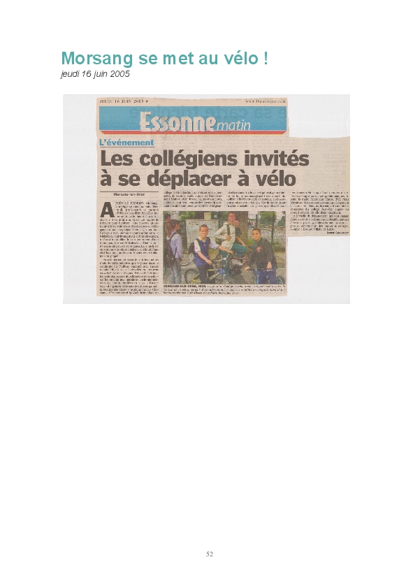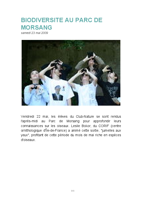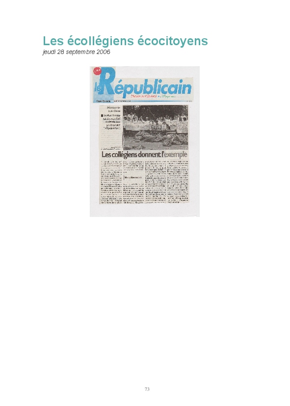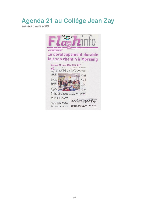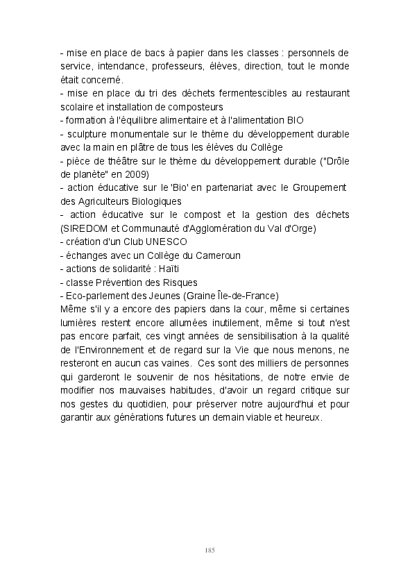 De nombreux projets pédagogiques ont été mis en place sur des thématiques variées : air, déchets, écomobilité, eau, santé, solidarité, … . La Ville de Morsang et le Conseil Général de l’Essonne ont soutenu et contribué au succès de toutes ces activités. Sous cette impulsion, la Ville de Morsang a, en 2012, ouvert une Maison de l’Environnement avec laquelle un partenariat a tout naturellement été mis en place avec les écollégiens.