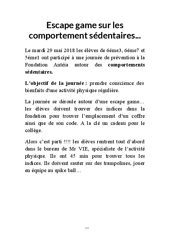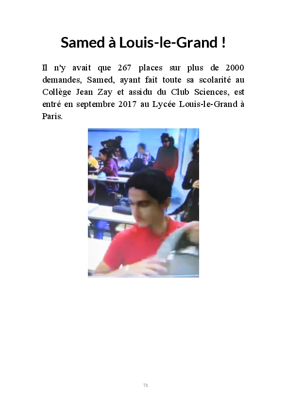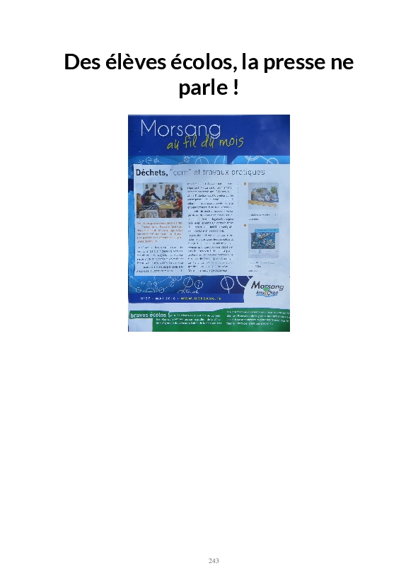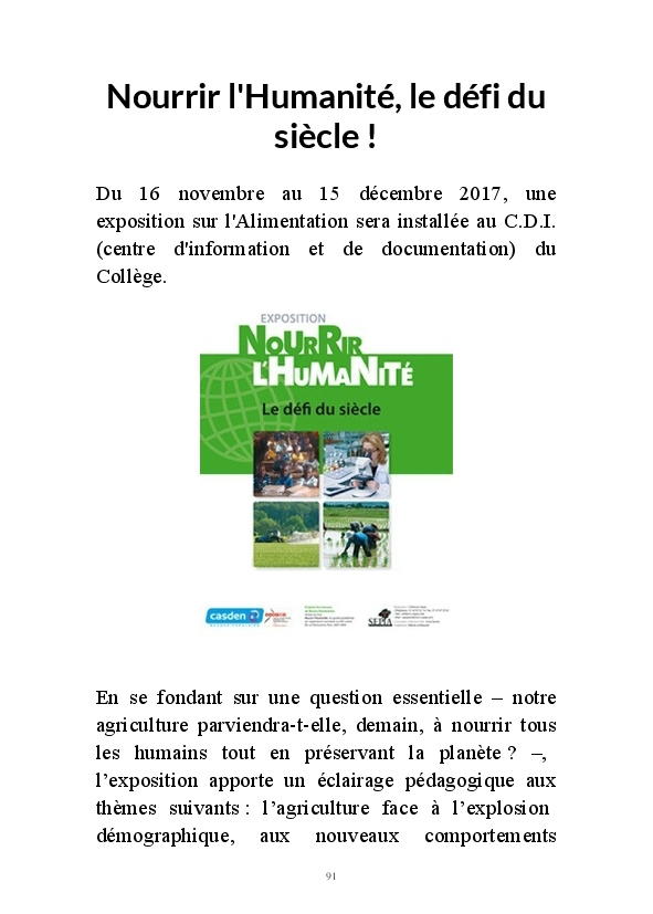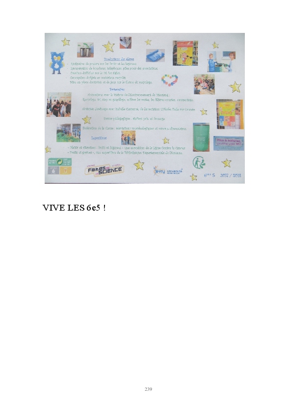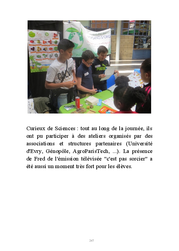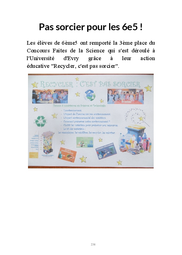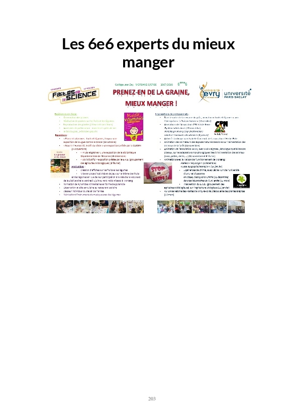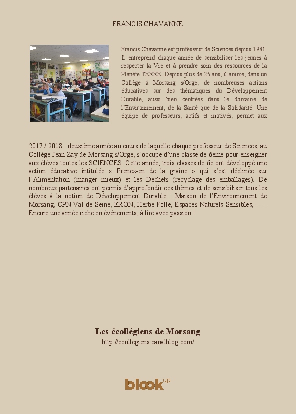 2017 / 2018 : deuxième année au cours de laquelle chaque professeur de Sciences, au Collège Jean Zay de Morsang s/Orge, s’occupe d’une classe de 6ème pour enseigner aux élèves toutes les SCIENCES. Cette année, trois classes de 6e ont développé une action éducative intitulée « Prenez-en de la graine » qui s’est déclinée sur l’Alimentation (manger mieux) et les Déchets (recyclage des emballages). De nombreux partenaires ont permis d’approfondir ces thèmes et de sensibiliser tous les élèves à la notion de Développement Durable : Maison de l’Environnement de Morsang, CPN Val de Seine, ERON, Herbe Folle, Espaces Naturels Sensibles, … . Encore une année riche en événements, à lire avec passion !