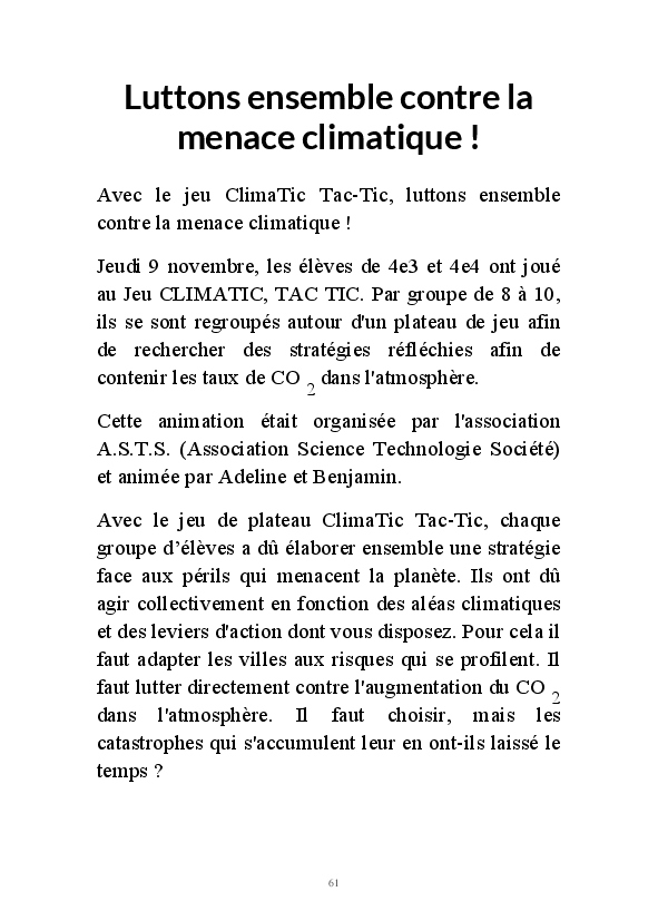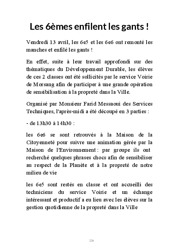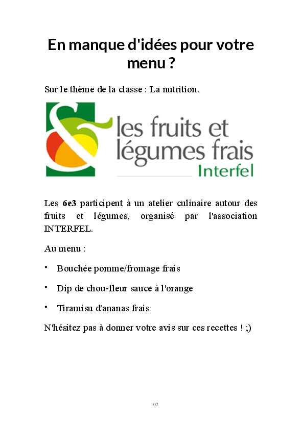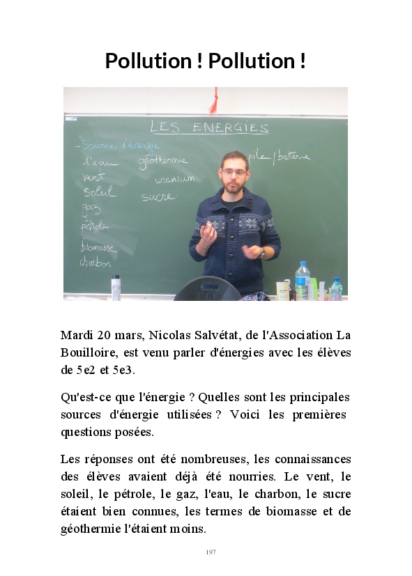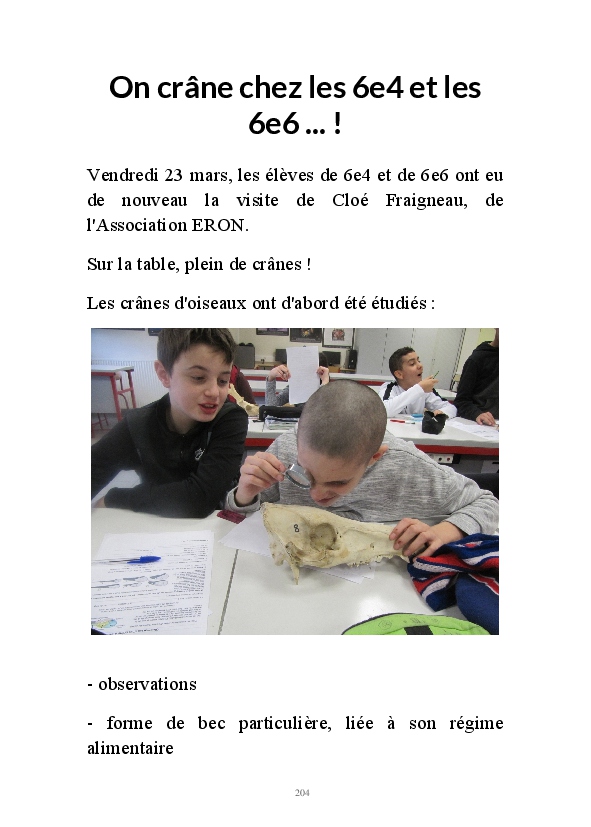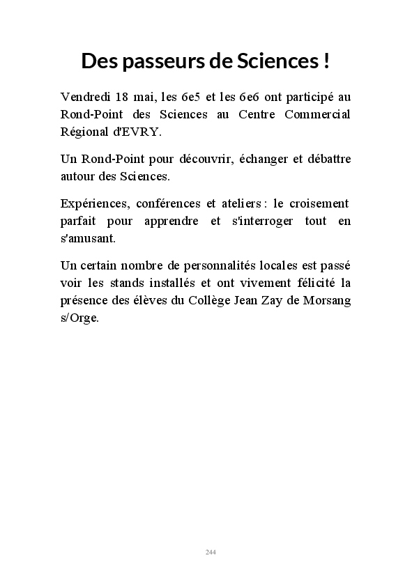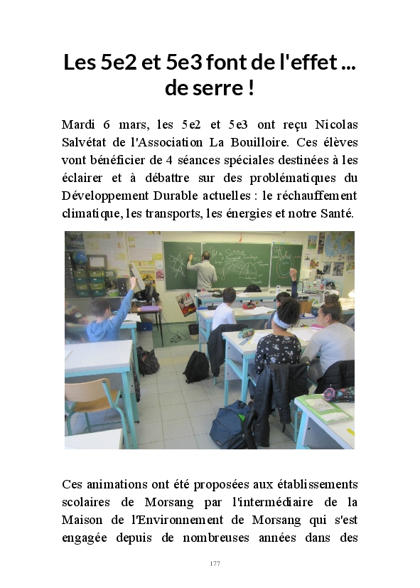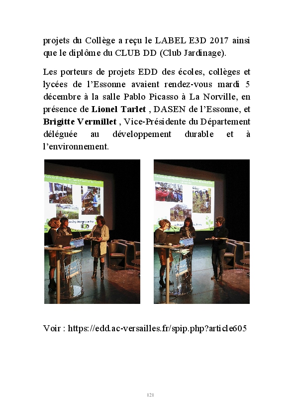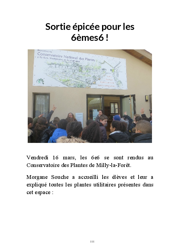 2017 / 2018 : deuxième année au cours de laquelle chaque professeur de Sciences, au Collège Jean Zay de Morsang s/Orge, s’occupe d’une classe de 6ème pour enseigner aux élèves toutes les SCIENCES. Cette année, trois classes de 6e ont développé une action éducative intitulée « Prenez-en de la graine » qui s’est déclinée sur l’Alimentation (manger mieux) et les Déchets (recyclage des emballages). De nombreux partenaires ont permis d’approfondir ces thèmes et de sensibiliser tous les élèves à la notion de Développement Durable : Maison de l’Environnement de Morsang, CPN Val de Seine, ERON, Herbe Folle, Espaces Naturels Sensibles, … . Encore une année riche en événements, à lire avec passion !