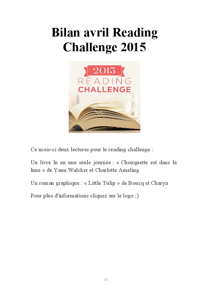 J'ai participé au Reading Challenge, j'ai lu plus ou moins un livre par mois.