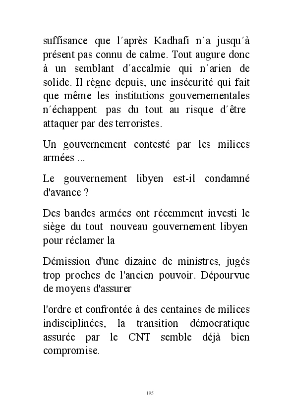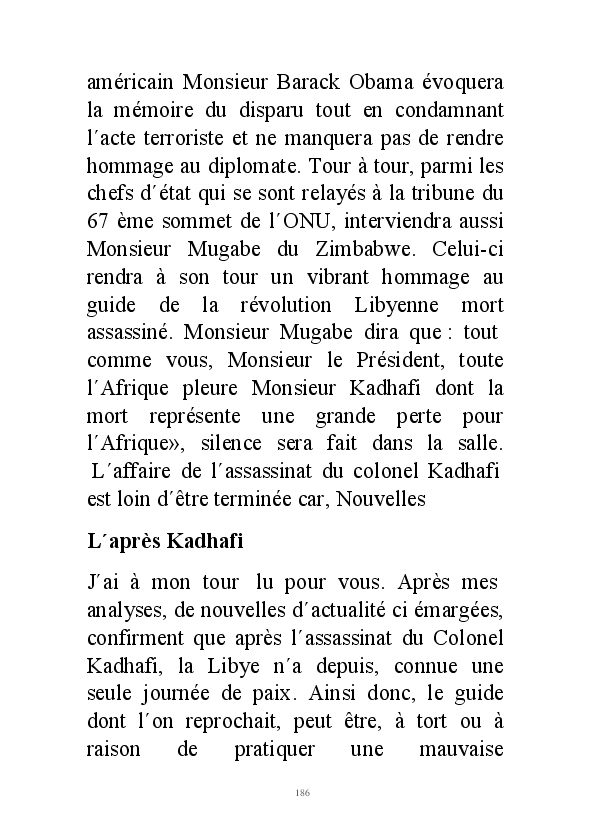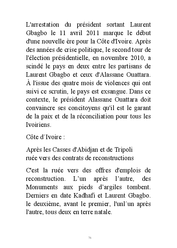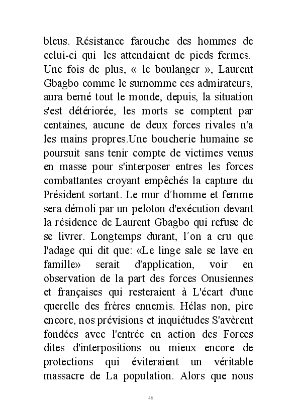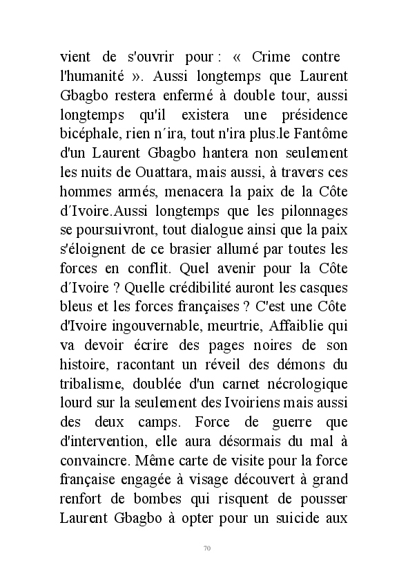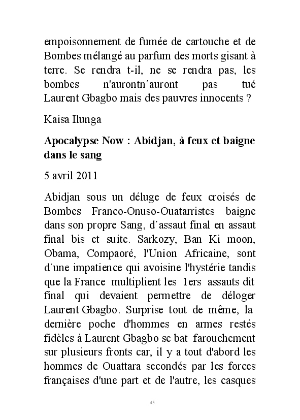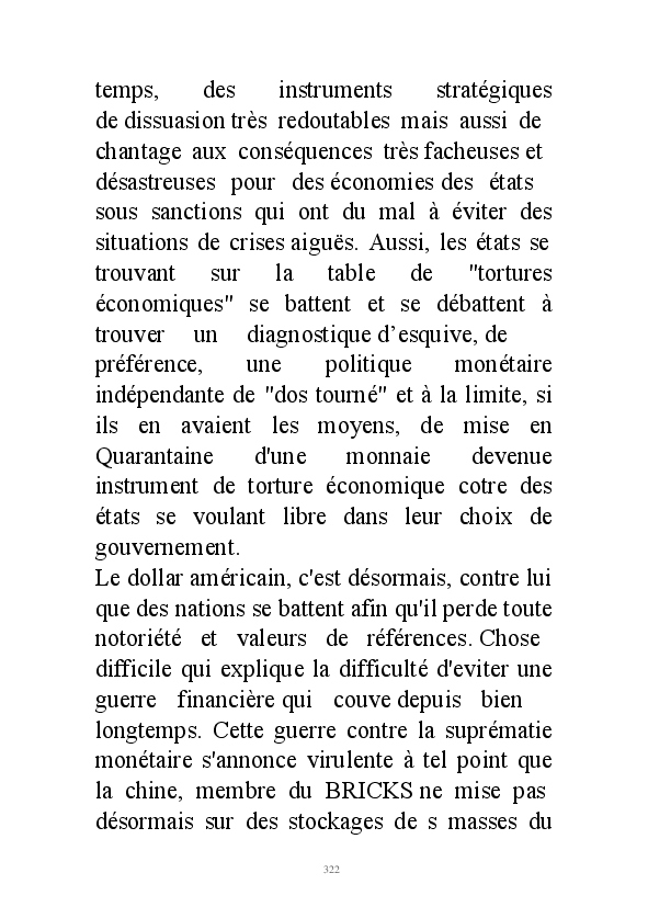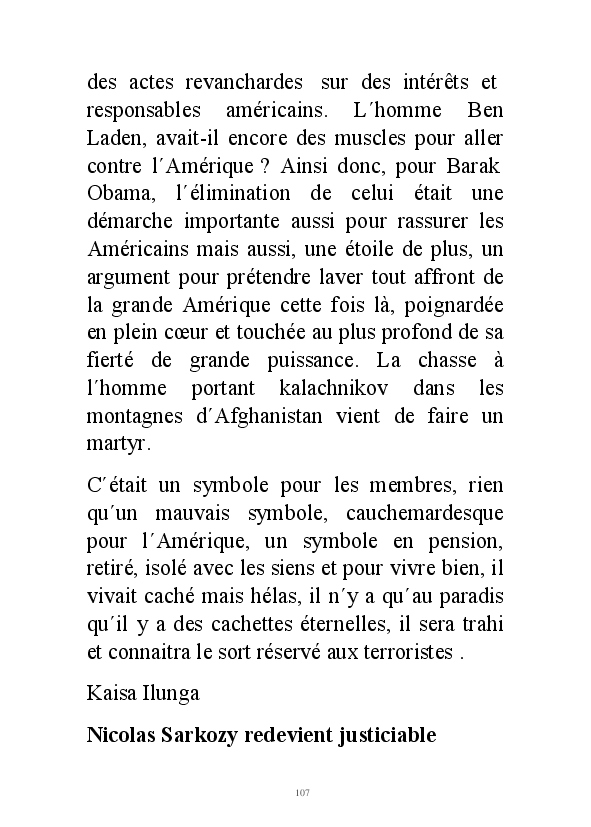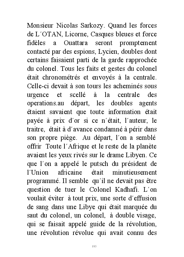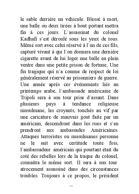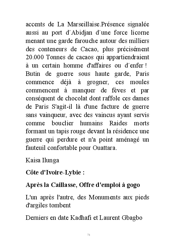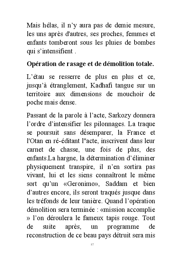 Des foyers de tensions se sont allumés ici et là depuis 2003 avec les guerres de Bush, contre Saddam, de Sarko-phage en Côte d'ivoire, Libye contre Kadhafi provoquant des flux migratoires, Organisations de paix, fabricants d'armes plongent dans l'arène des fauves, des armes pleuvent dans le ciel, résurgence du terrorisme Self-made; incendiaires d'hier, aujourd'hui anges de la paix, le tout, dans une dramaturgie démentielle, diabolique.Conséquence du carton de vote dans l'urne pour un bandit d'état, un va-t-en-guerre!