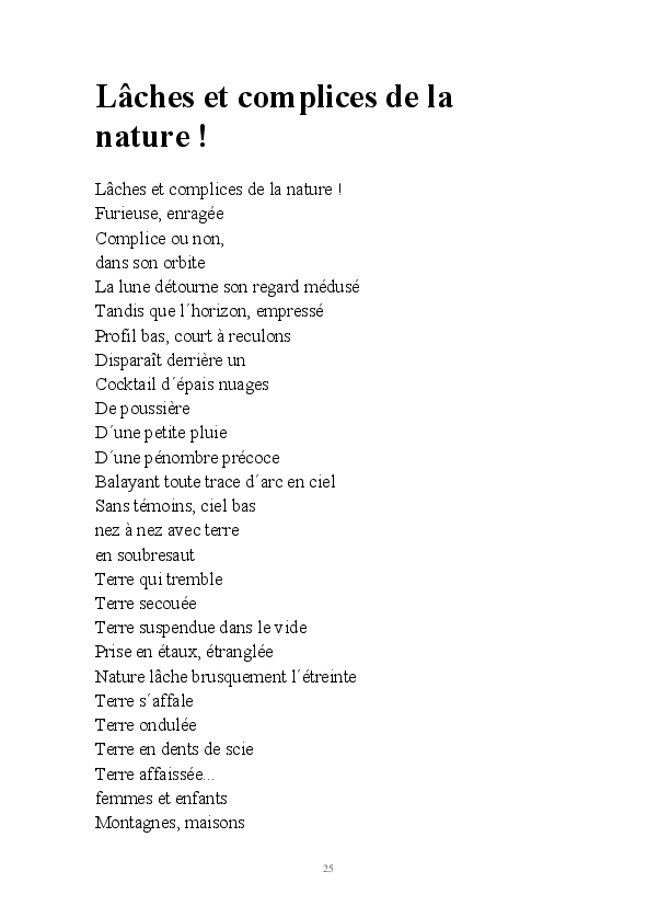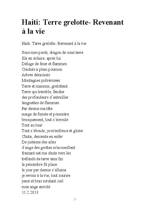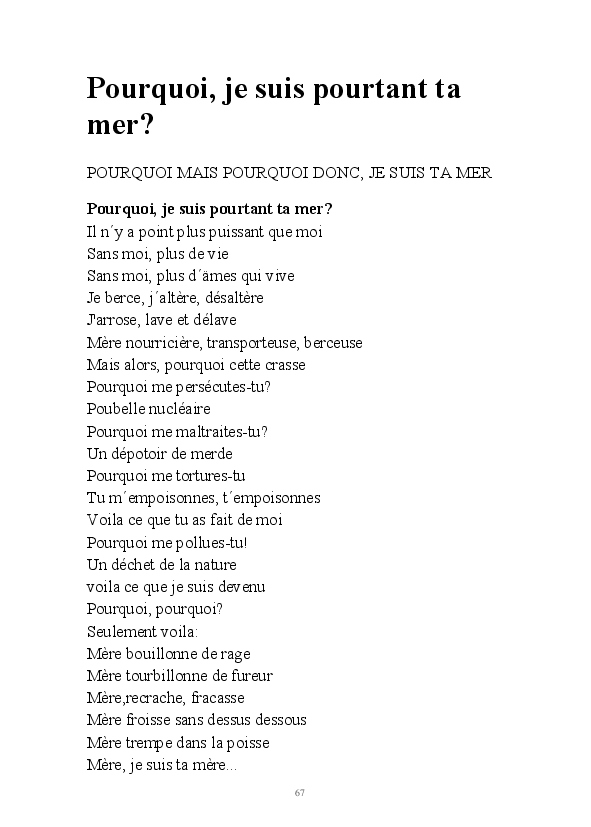 La gestion de notre environnement privé et des événements que nous subissons et faisons, la communion avec la matière, sable et eau, poussière d'étoile dont nous sommes constitués nécessite une vie en symbiose avec des faits d'actualités,ondes de choc réactifs de notre personne; dialoguer avec la nature, l'invocation puiser le force de la nature par la poésie.