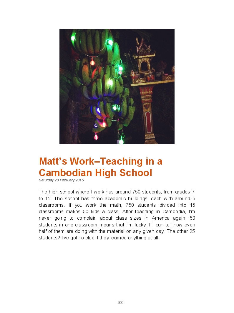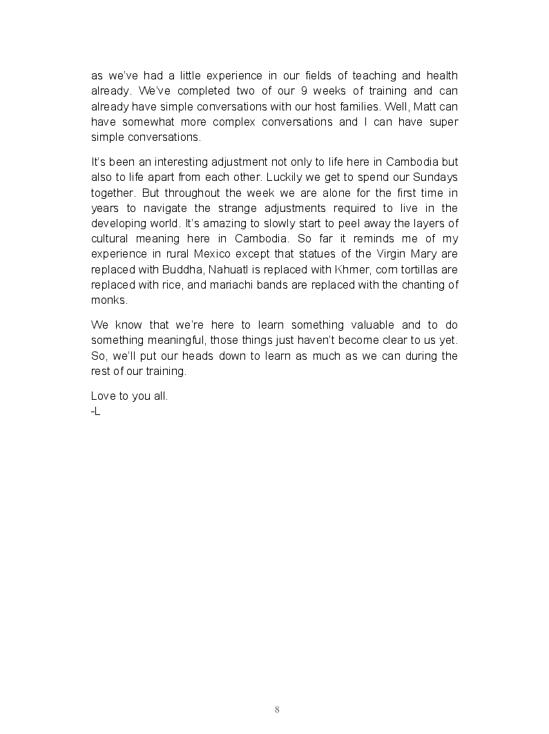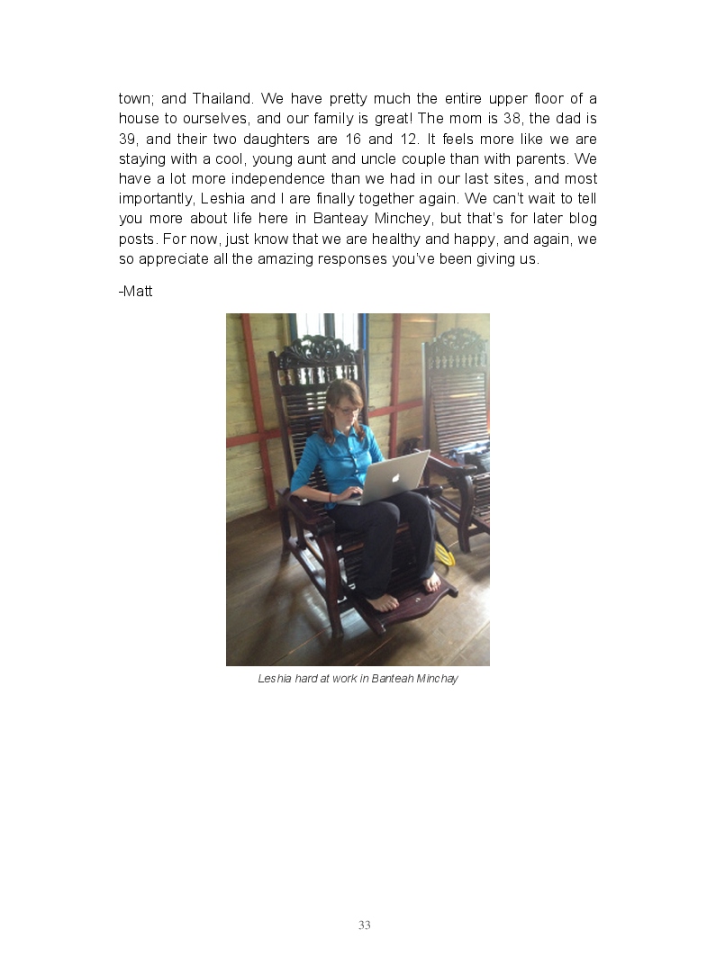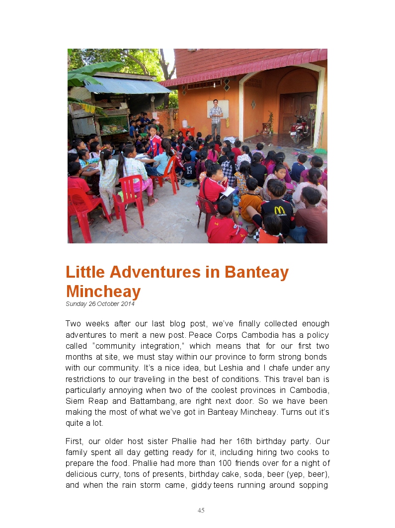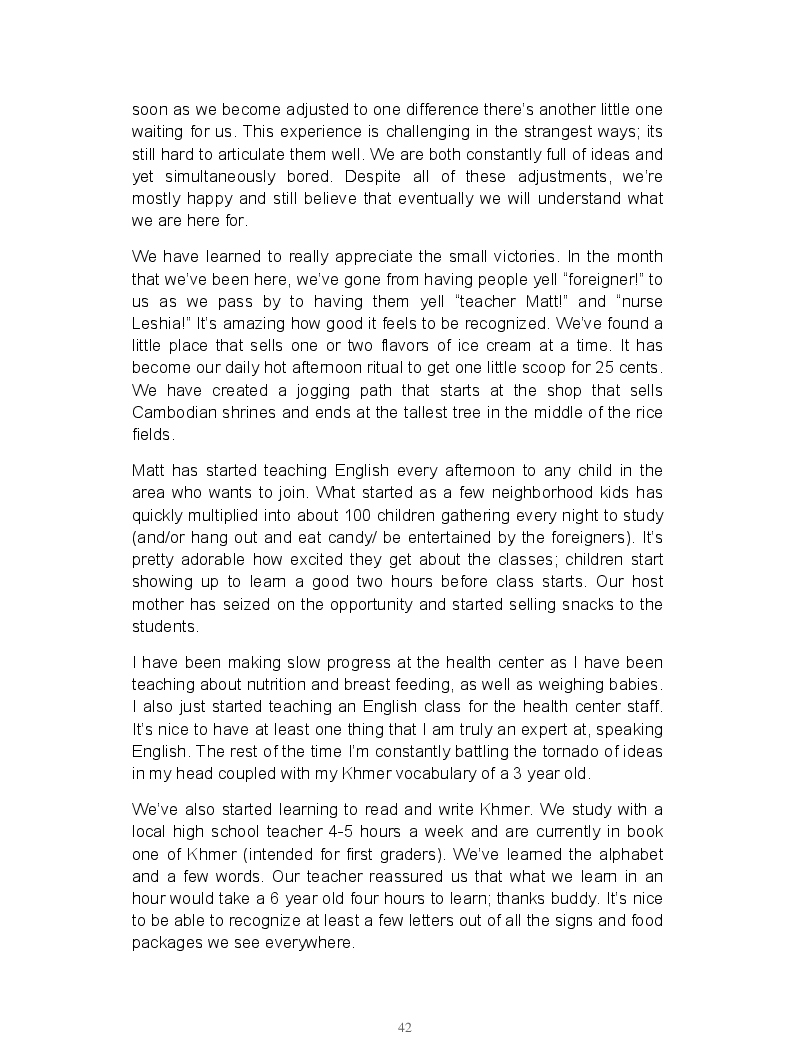 We are a married couple who joined the Peace Corps in our late 20s because if not now, when? Matt is an English education volunteer and Leshia is a community health education volunteer. We are serving in Banteay Meanchey province, Cambodia.