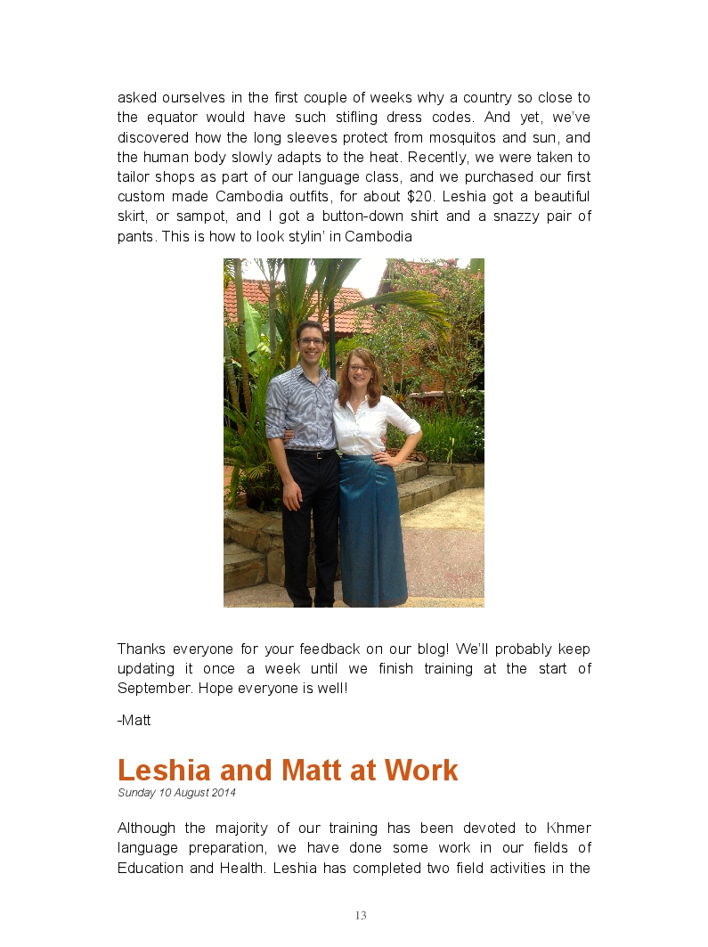We are a married couple who joined the Peace Corps in our late 20s because if not now, when? Matt is an English education volunteer and Leshia is a community health education volunteer. We are serving in Banteay Meanchey province, Cambodia.
