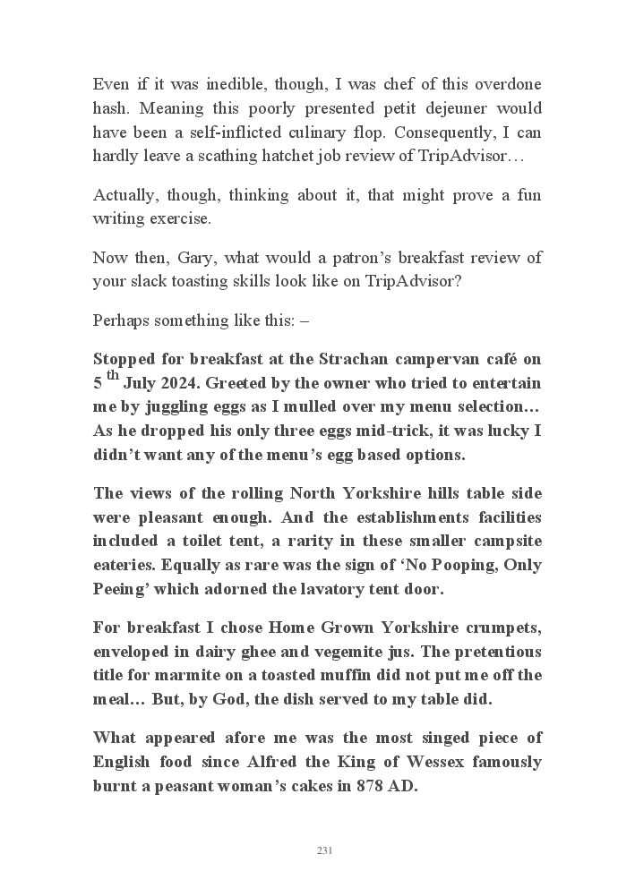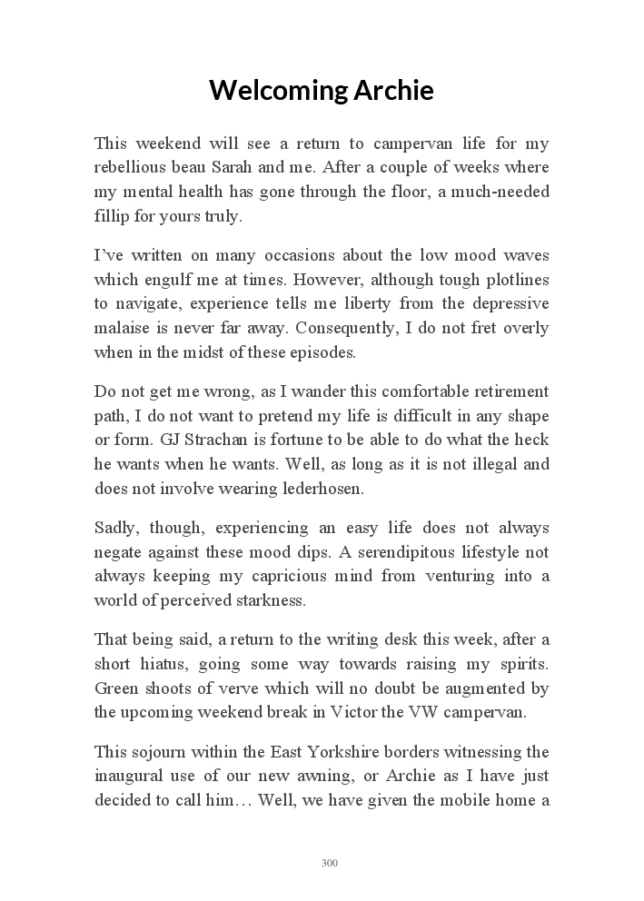 The Year That Was is a collection of Gary Strachan’s blogs throughout 2023. These journals an amalgam of whimsical tales relating to becoming a grandfather for the first time, various camper van trips, job searches, along with offbeat observations on a variety of topics. The author also reveals why he declined opportunities to apply for the job of Santa Claus and the Head of Colonic Irrigation for a pizza franchise.