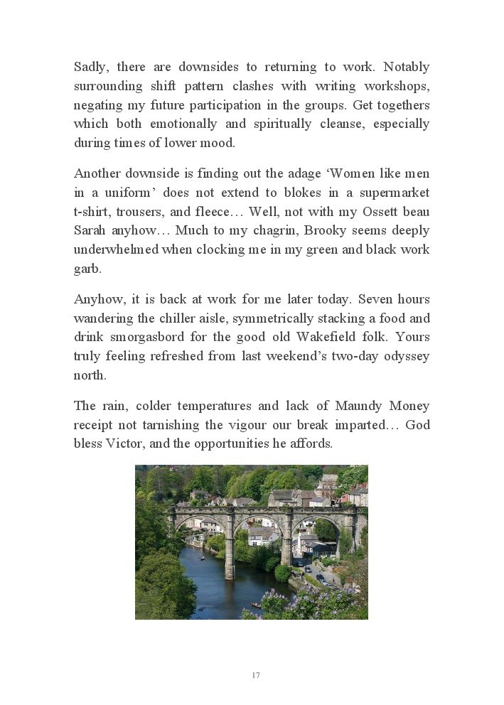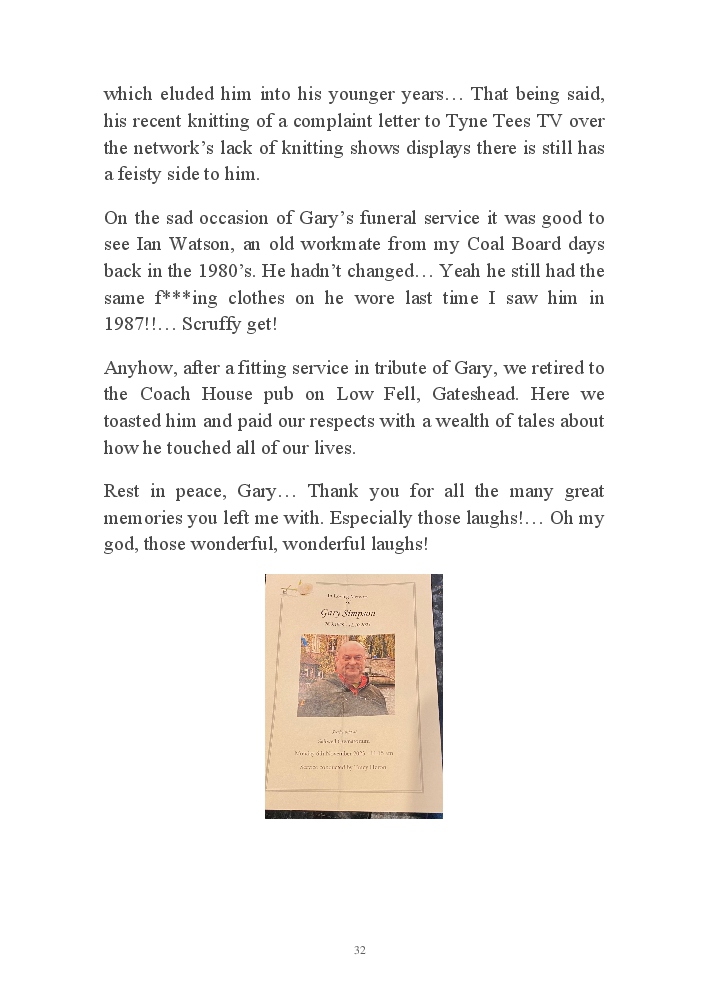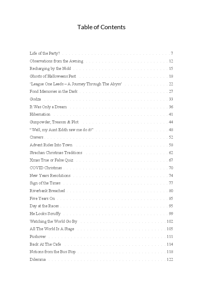 ‘Out of Retirement & Back’ is a collection of Gary Strachan’s blogs and essays written during Autumn and winter of 2023. Among these literary vignettes include whimsical campervan tales, the darkness of attending a good friends funeral, parody tales of visiting the horse races and gig reviews. Narratives from writing workshops and prose from an open mic night appear courtesy of the East Lancs Milk marketing Board.