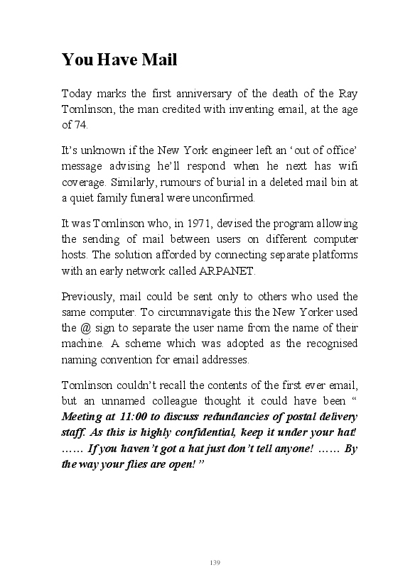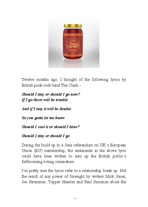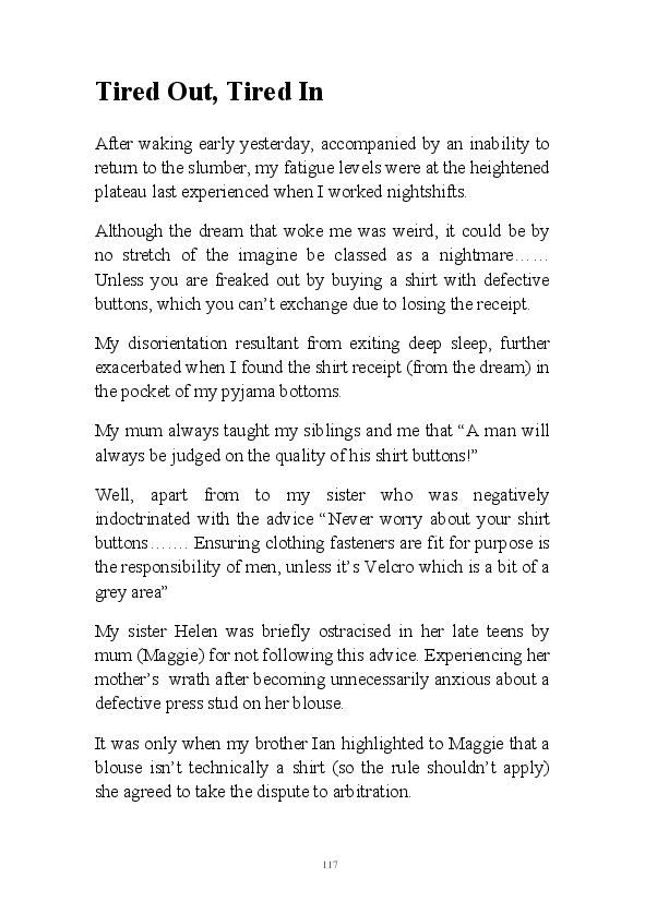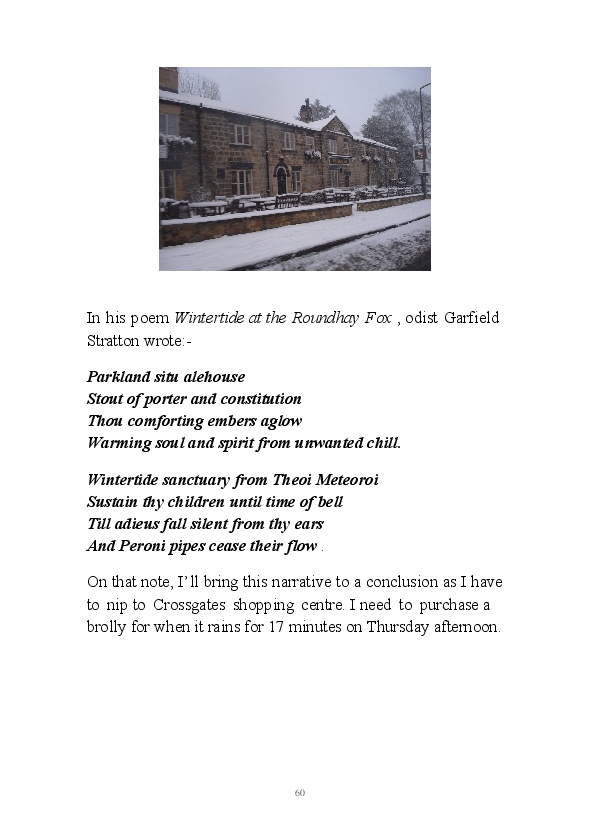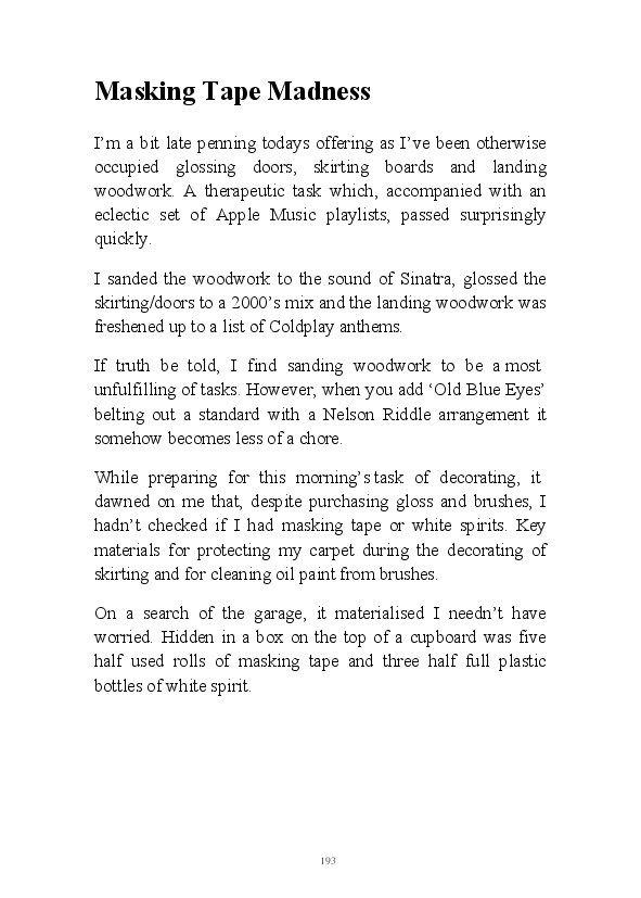 It's late winter 2017. Somewhere in northern England a middle aged man spends hours penning narratives on topics such as poetry, kitchen sink dramas and the viewing of three stage musicals. He also expresses concerns about being kidnapped, hospital visits with his incurably ill wife and father, in addition too how his daughter nearly got named Creosote! Light hearted of nature and erratic of grammar, the blogs are the author's daily diary of living under enduring personal circumstances. He advises that writing with his loyal typewriter Rover has proved to be a highly therapeutic experience.