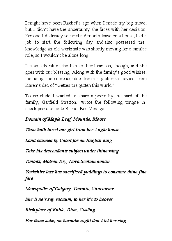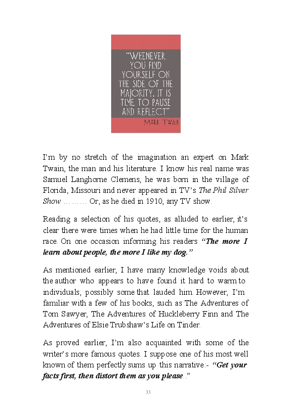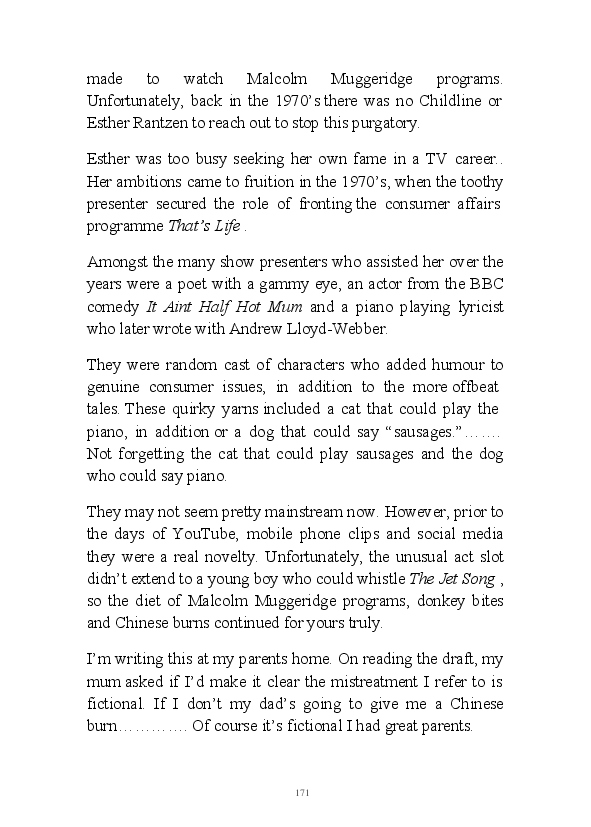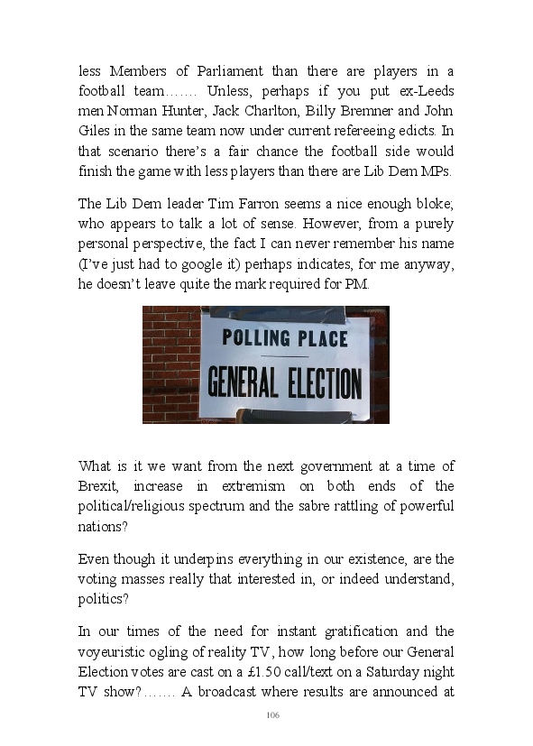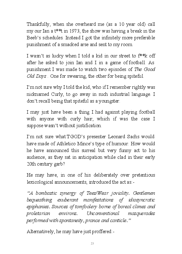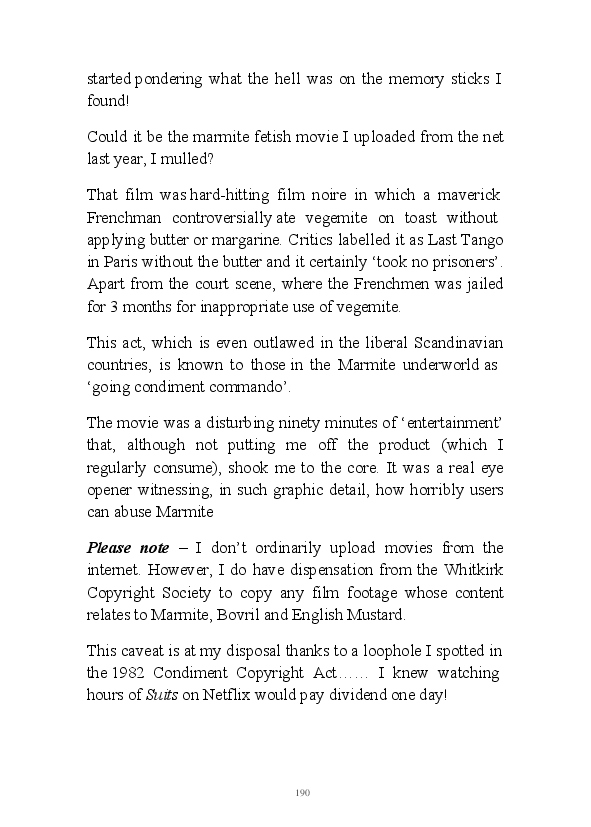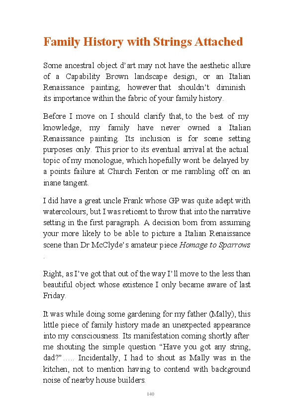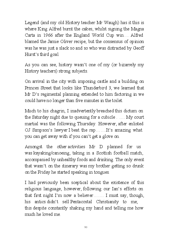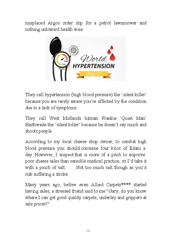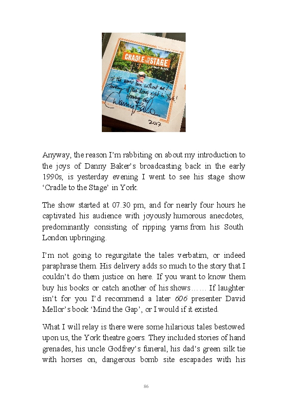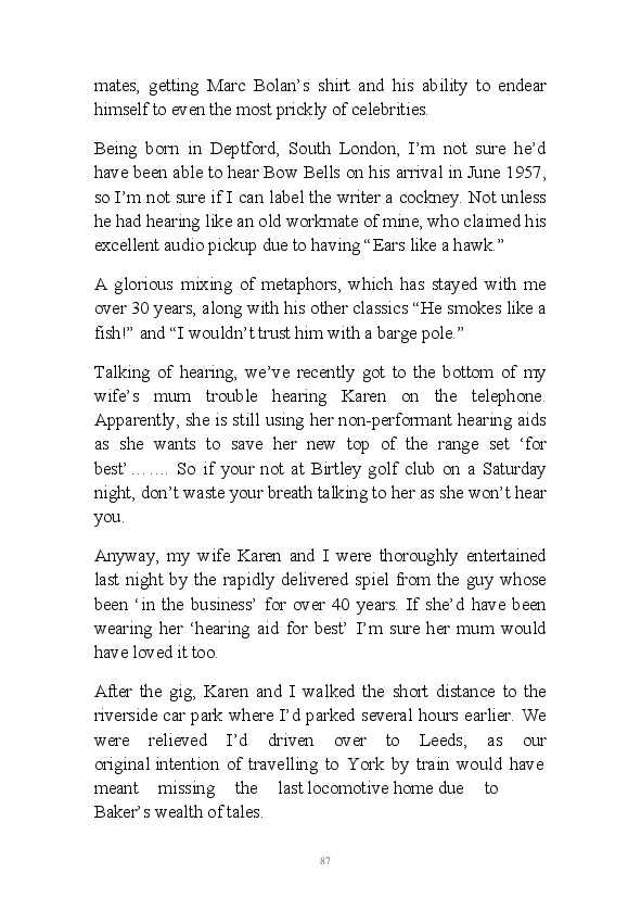 '15 Minutes of Fame' contains excerpts from the author's daily diary in April & May 2017. He has no idea why he titled this work by that name as he hasn't even had 1 minute of fame. The light hearted yarns within the book include visiting a posh place in Whitby, family get togethers and the unlikely tale of his brother inventing infra-red peanuts. Despite his depressive nature and inherent silliness, his wife loves him dearly.... Oh, hold on she's just said she thinks he's an arse!
