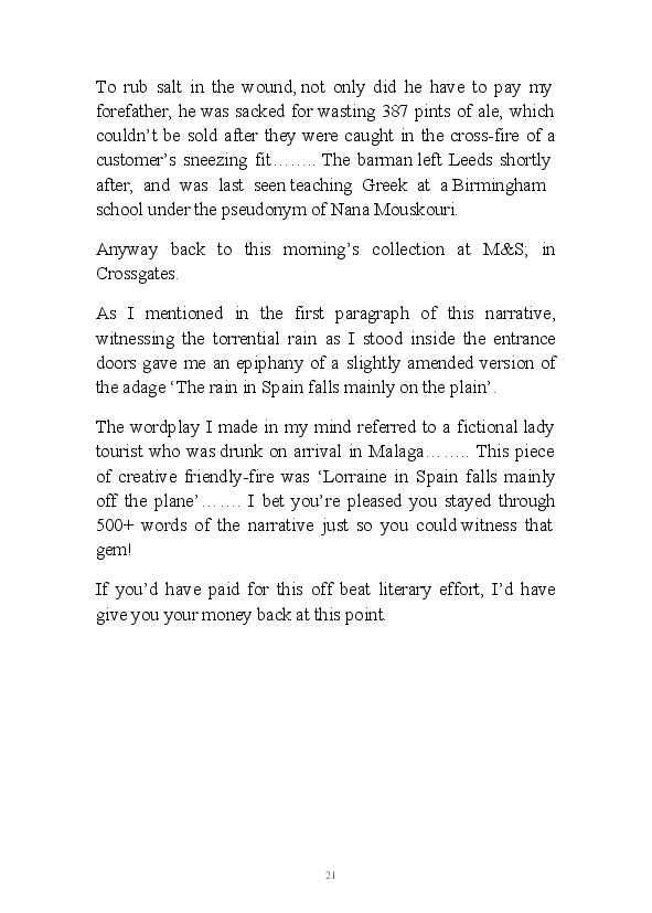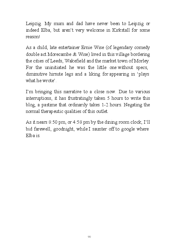 A challenging month for the author and his family, this soupcon of partly fictional monologues regularly touches on his father and his wife's terminal illnesses. This morning his erratic mind randomly picked up the fact that the word hospice sounds like hoss piss.