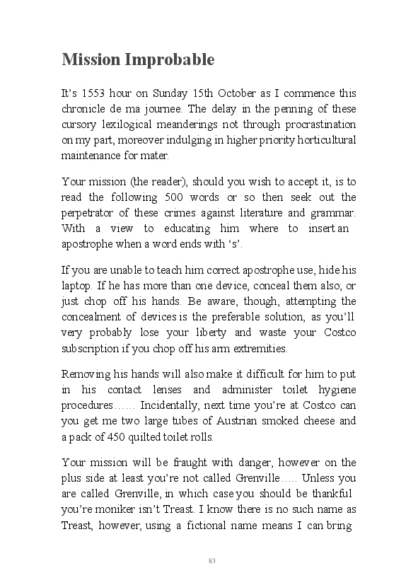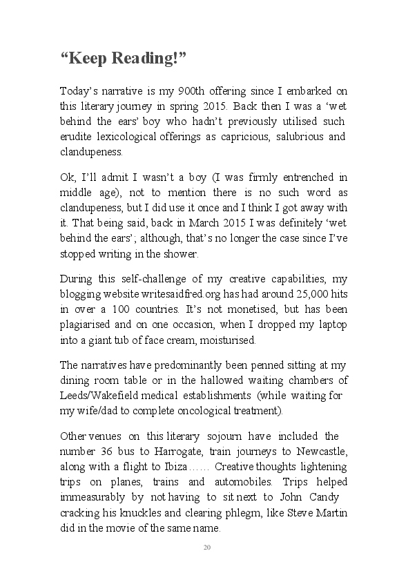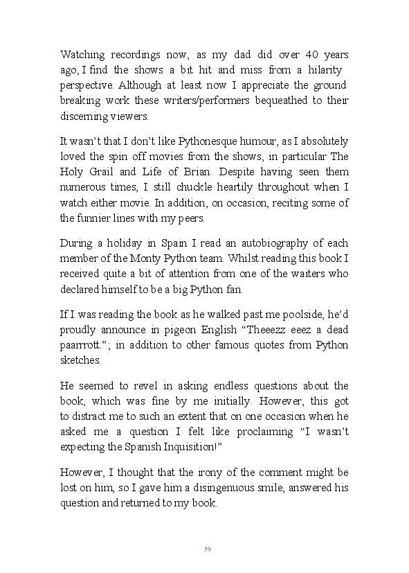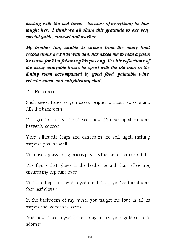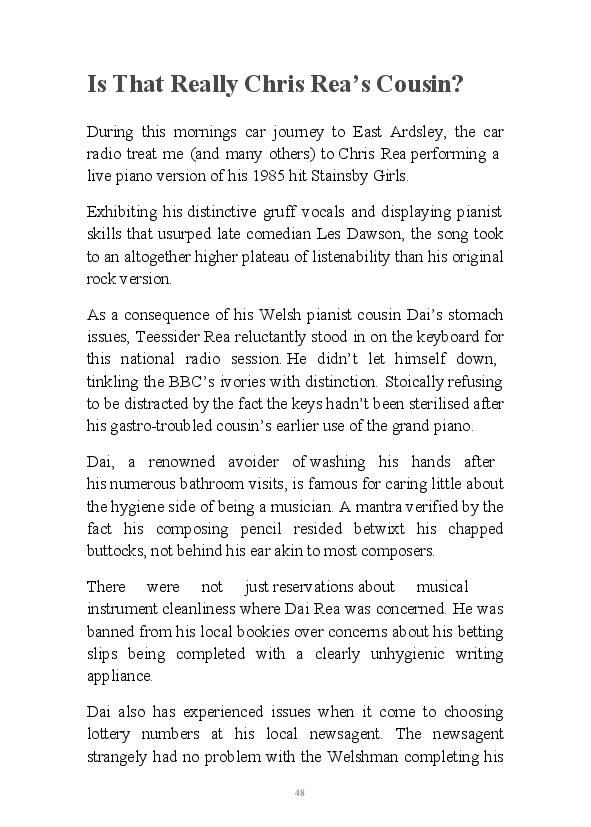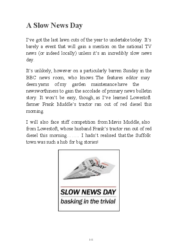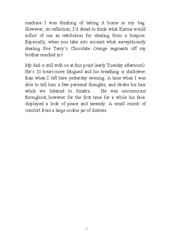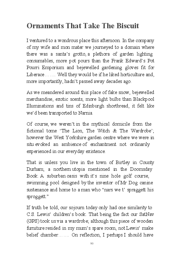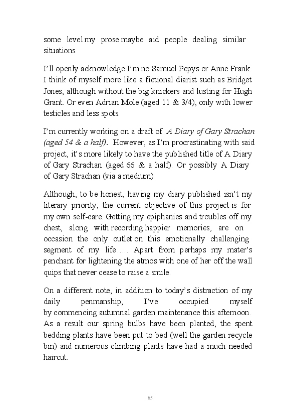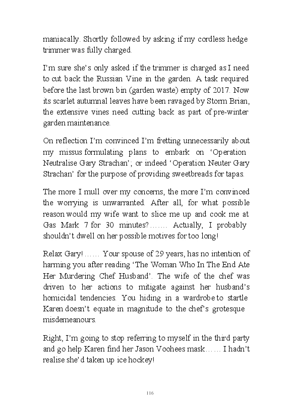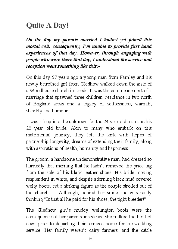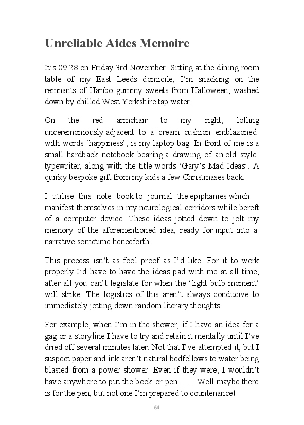 'A Right Small Glass' is a selection of the writer's narratives and blogs in a deeply challenging few weeks when his father passed away after a 12 month fight with terminal illness. As well as the more melancholic tales of the final days at the hospice with his father, along with a copy of his eulogy, the author includes the more light hearted compositions that he utilises to distract himself during this time of sorrow. As her reading glasses mysteriously disappear when he passes his laptop, Mr Strachan's mother has never read his work