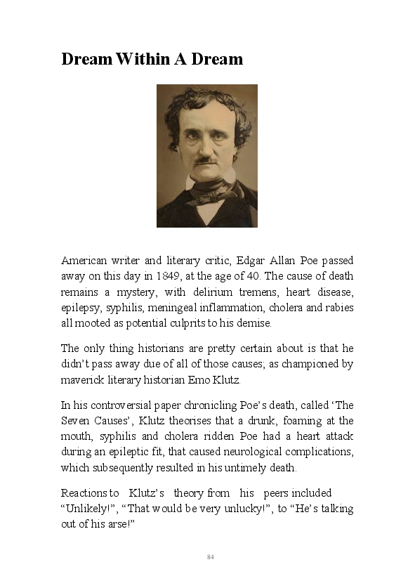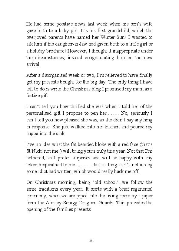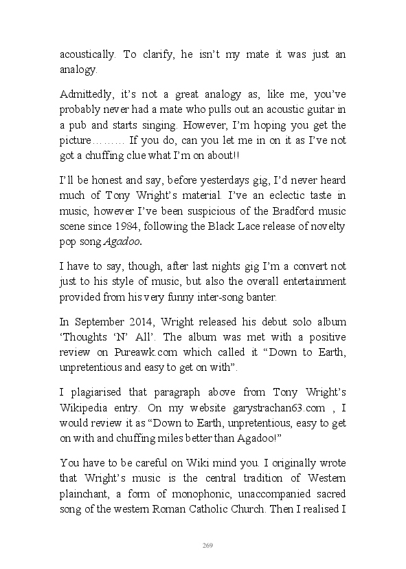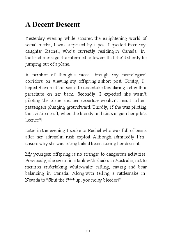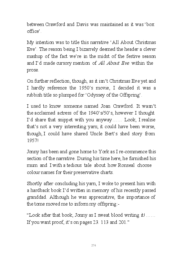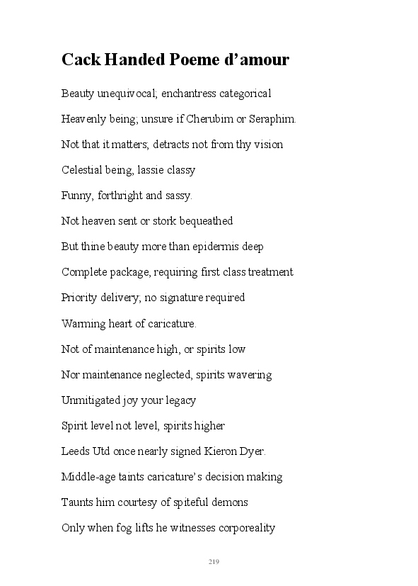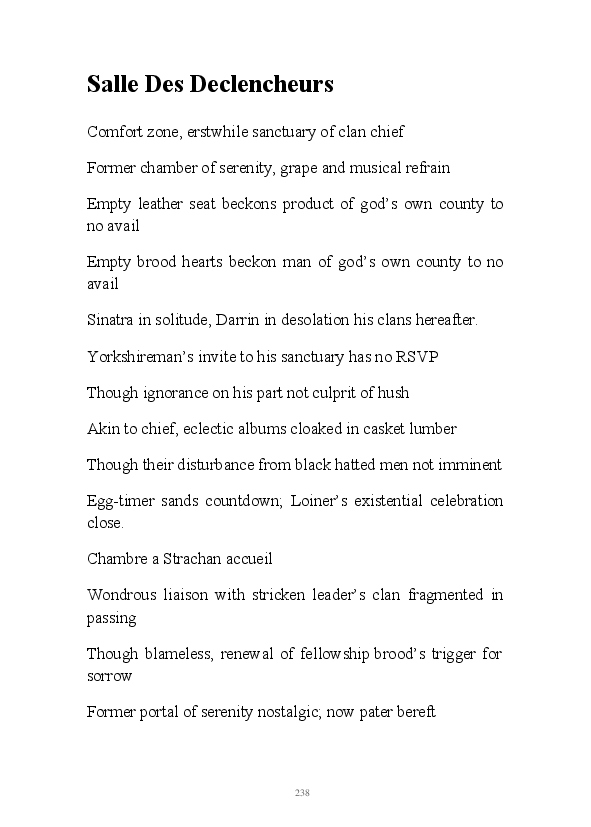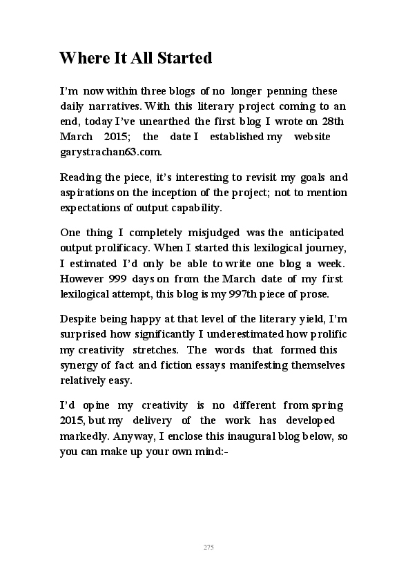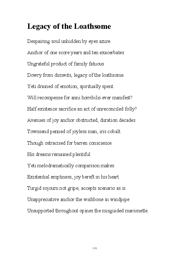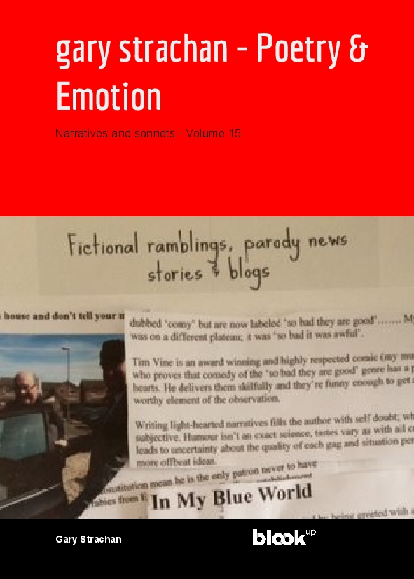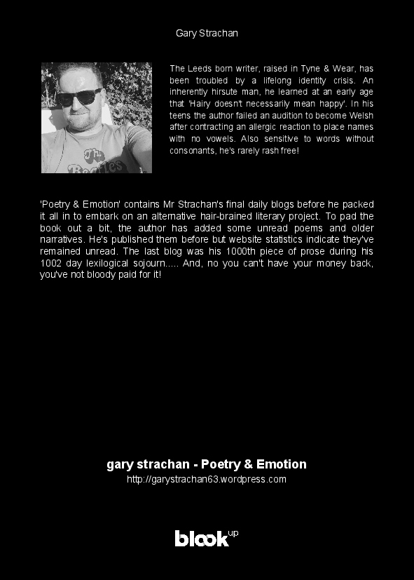 'Poetry & Emotion' contains Mr Strachan's final daily blogs before he packed it all in to embark on an alternative hair-brained literary project. To pad the book out a bit, the author has added some unread poems and older narratives. He's published them before but website statistics indicate they've remained unread. The last blog was his 1000th piece of prose during his 1002 day lexilogical sojourn..... And, no you can't have your money back, you've not bloody paid for it!